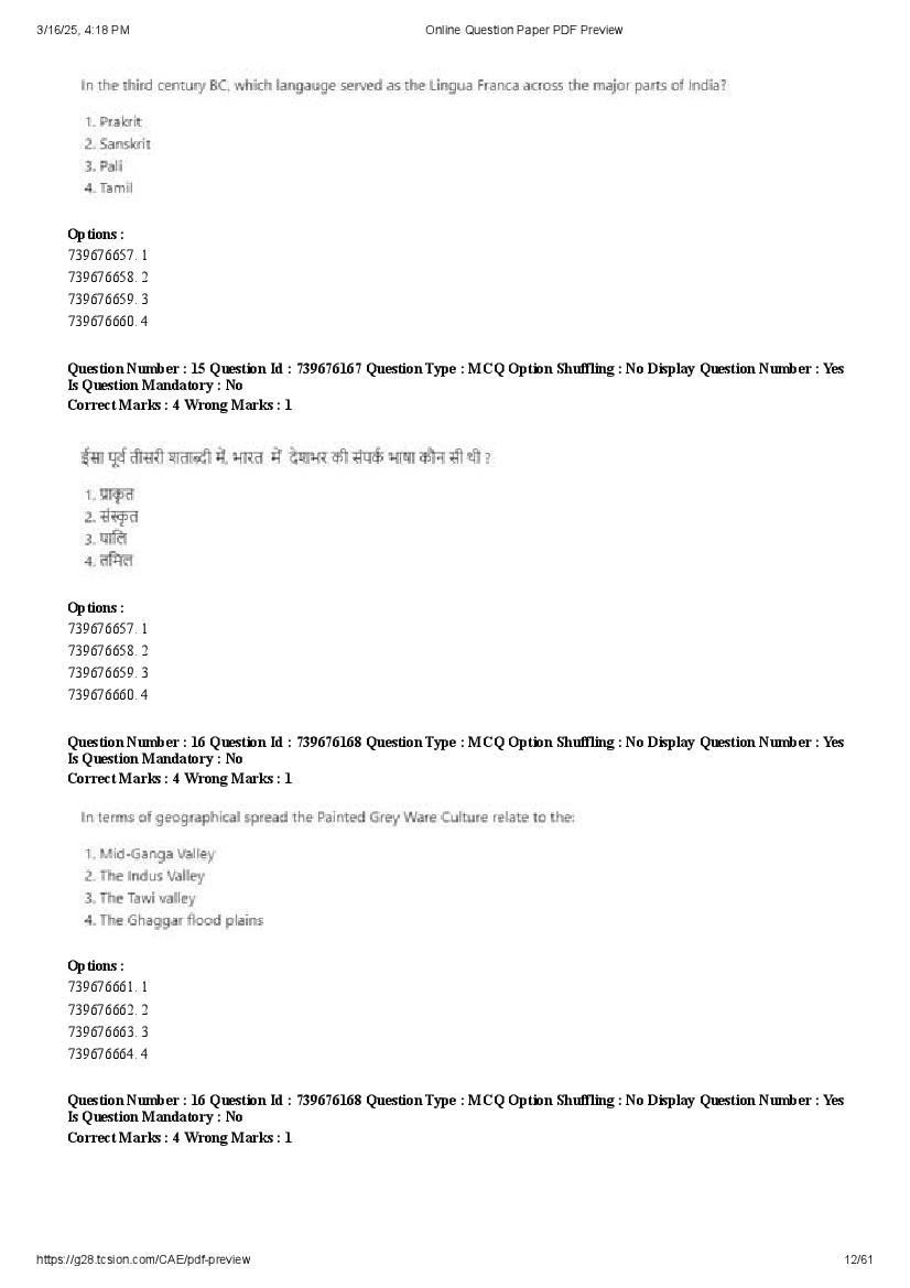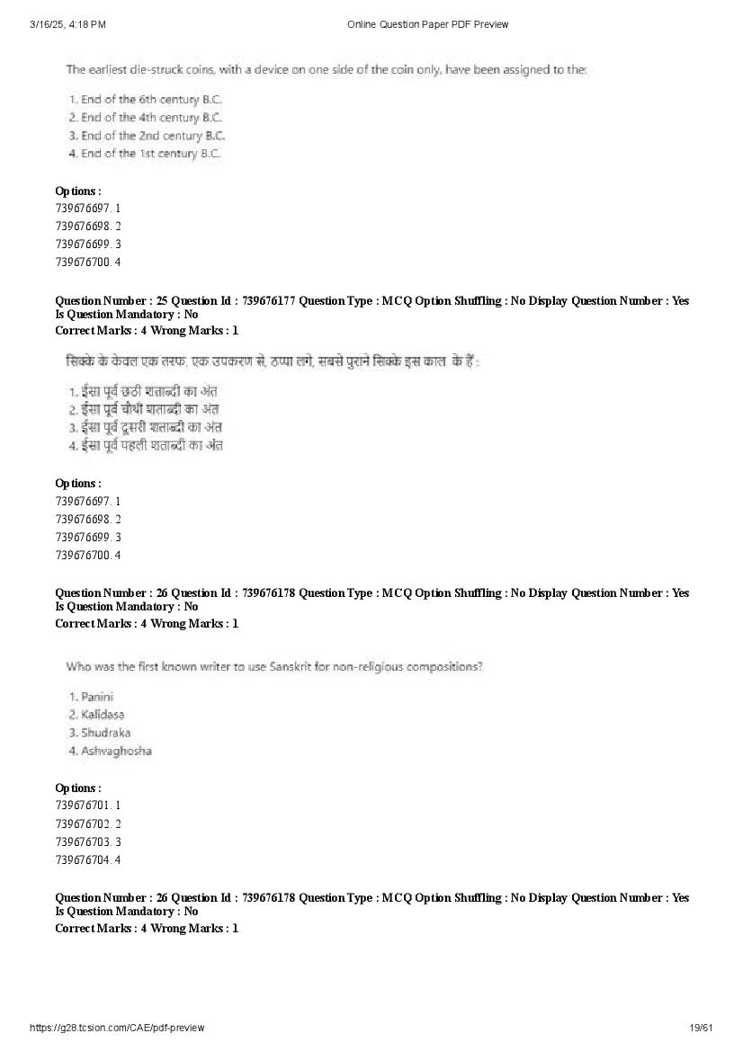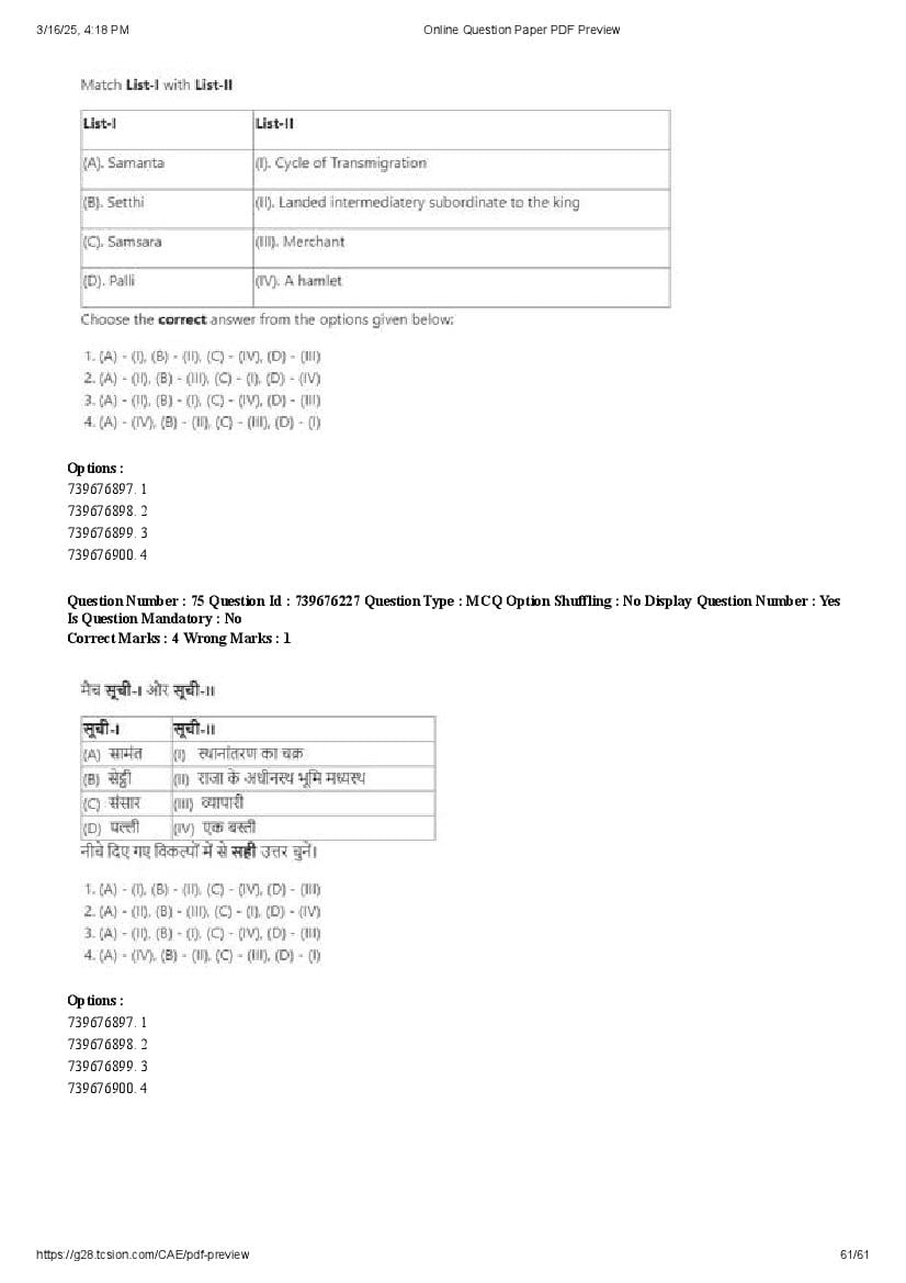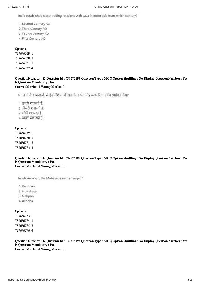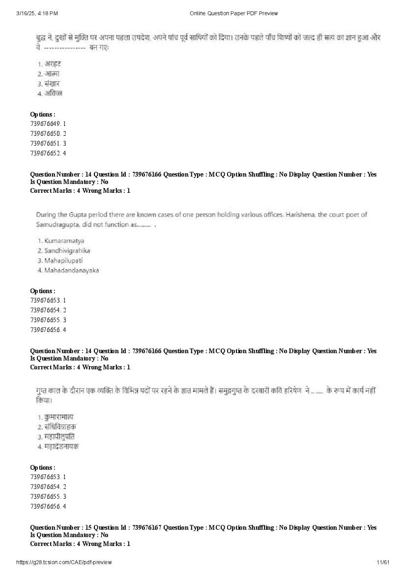 2026 Question papers will be updated soon. The latest available complete cuet pg question paper for Ancient Indian History is given below.