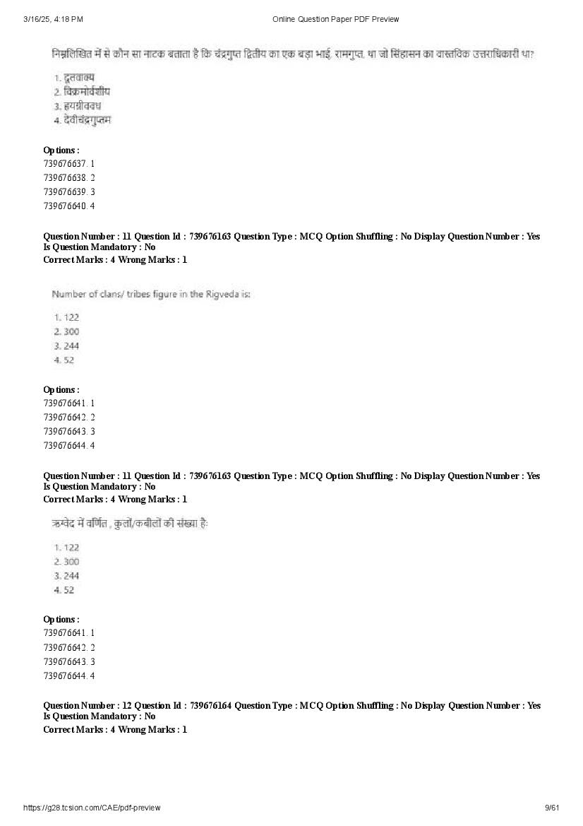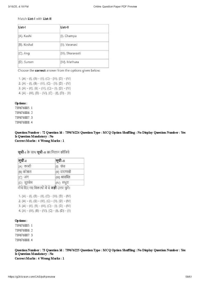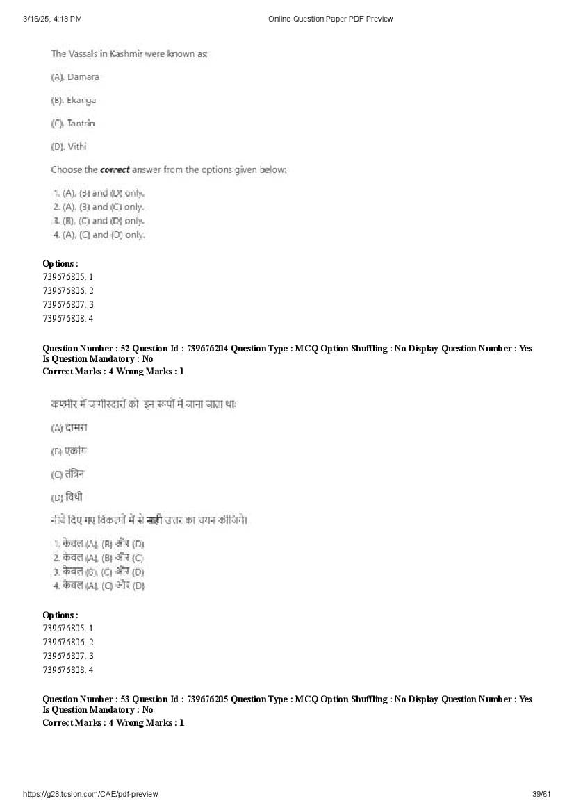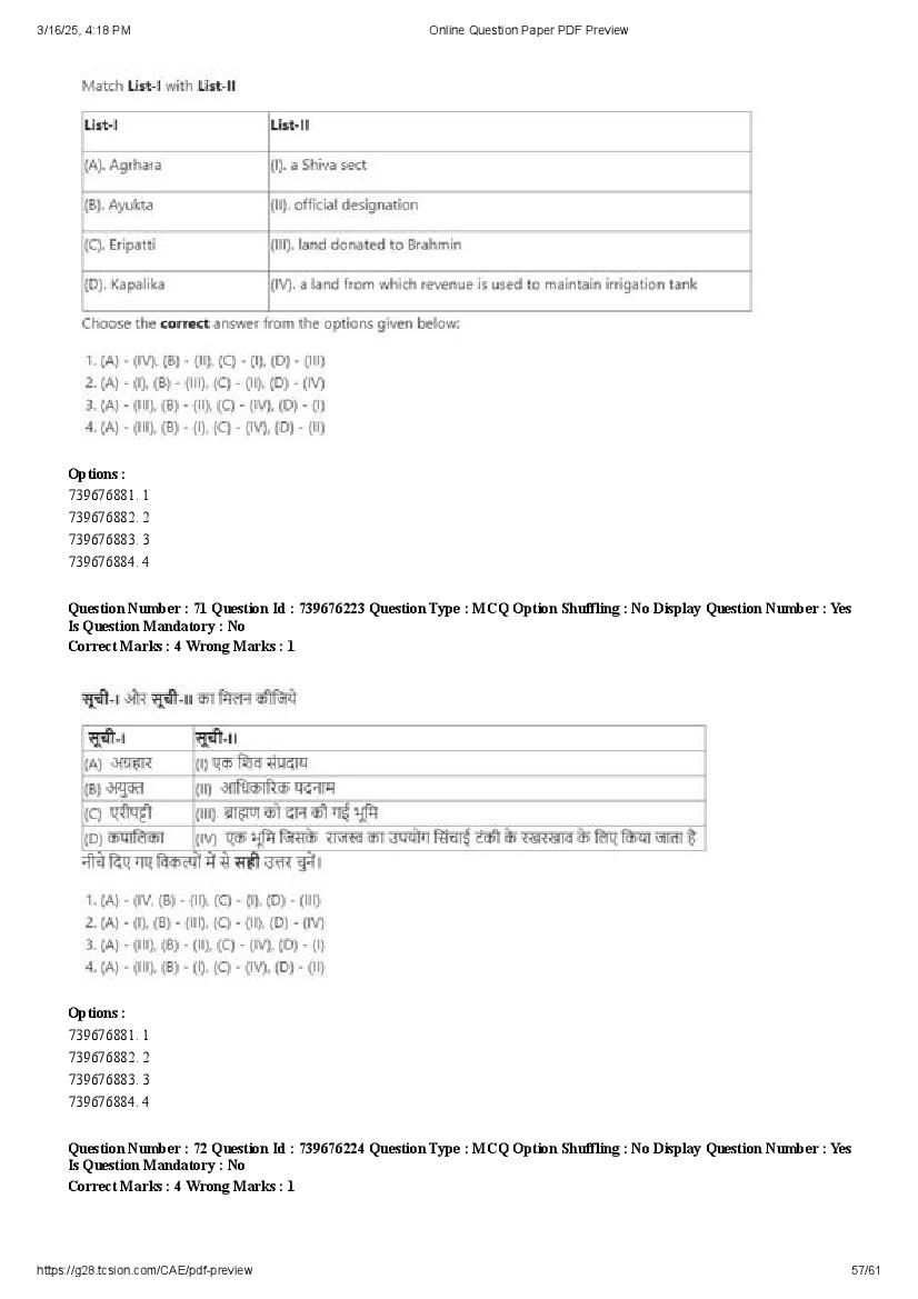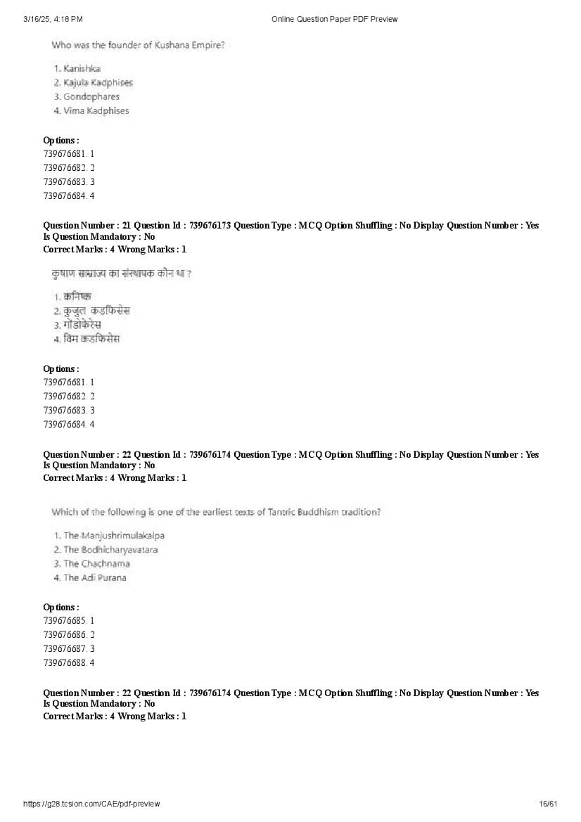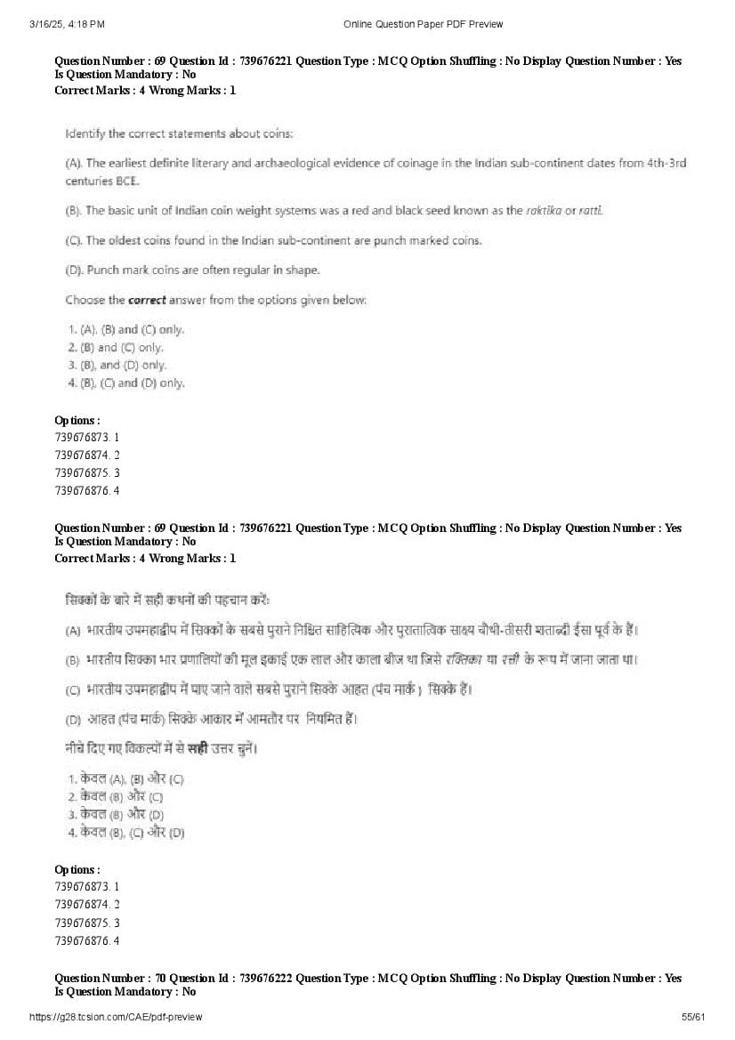 2026 Question papers will be updated soon. The latest available complete cuet pg question paper for Ancient Indian History is given below.