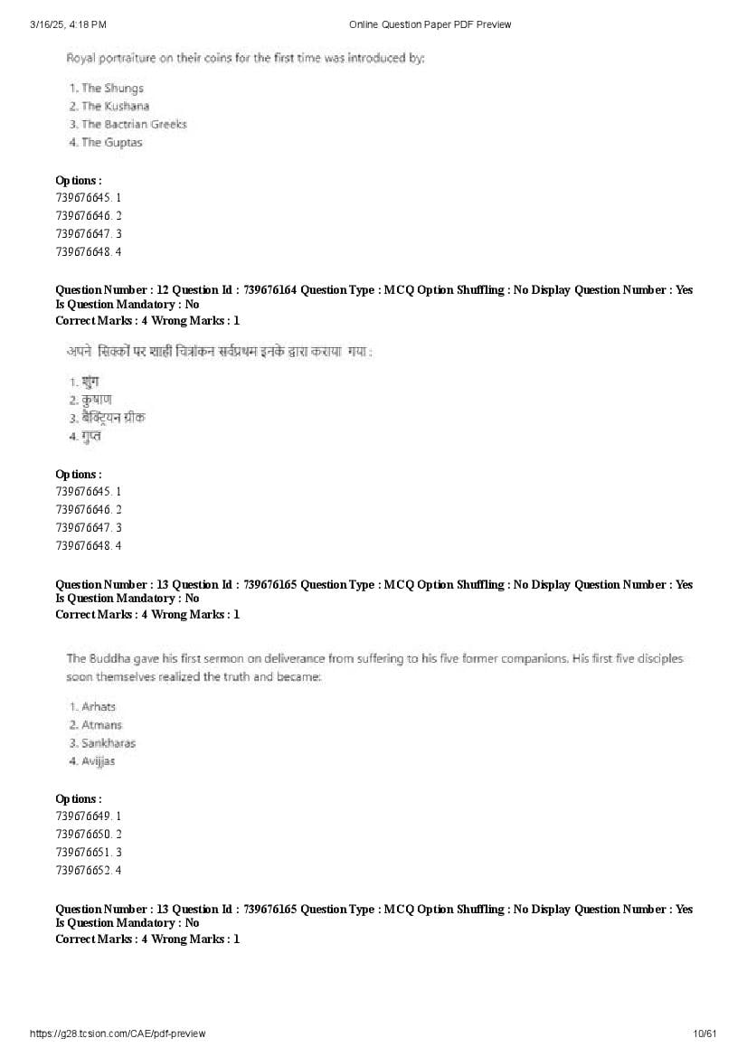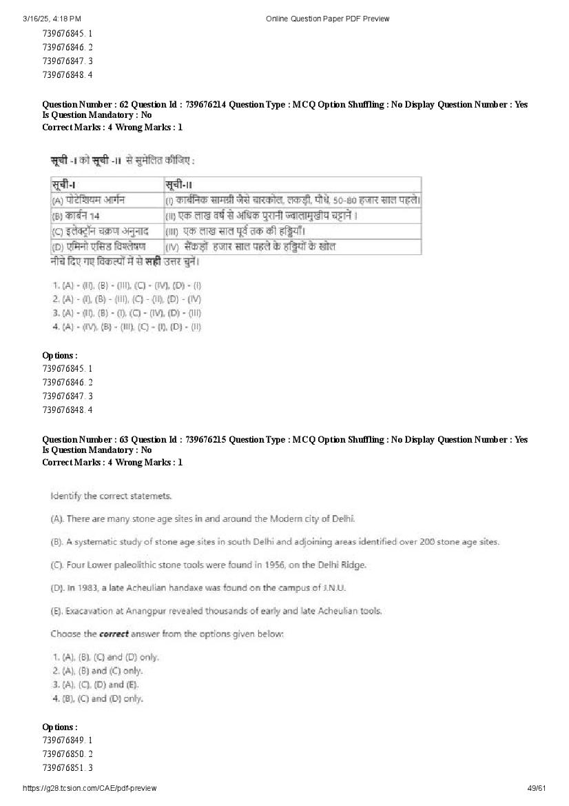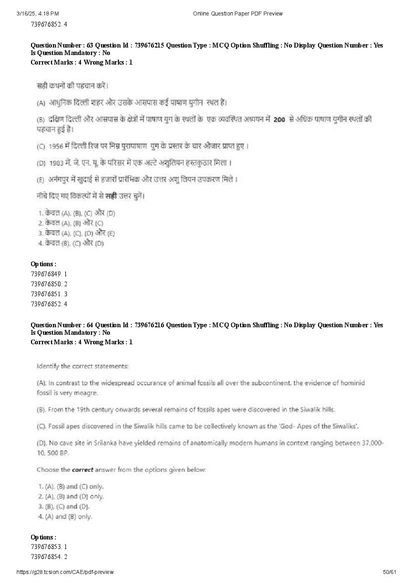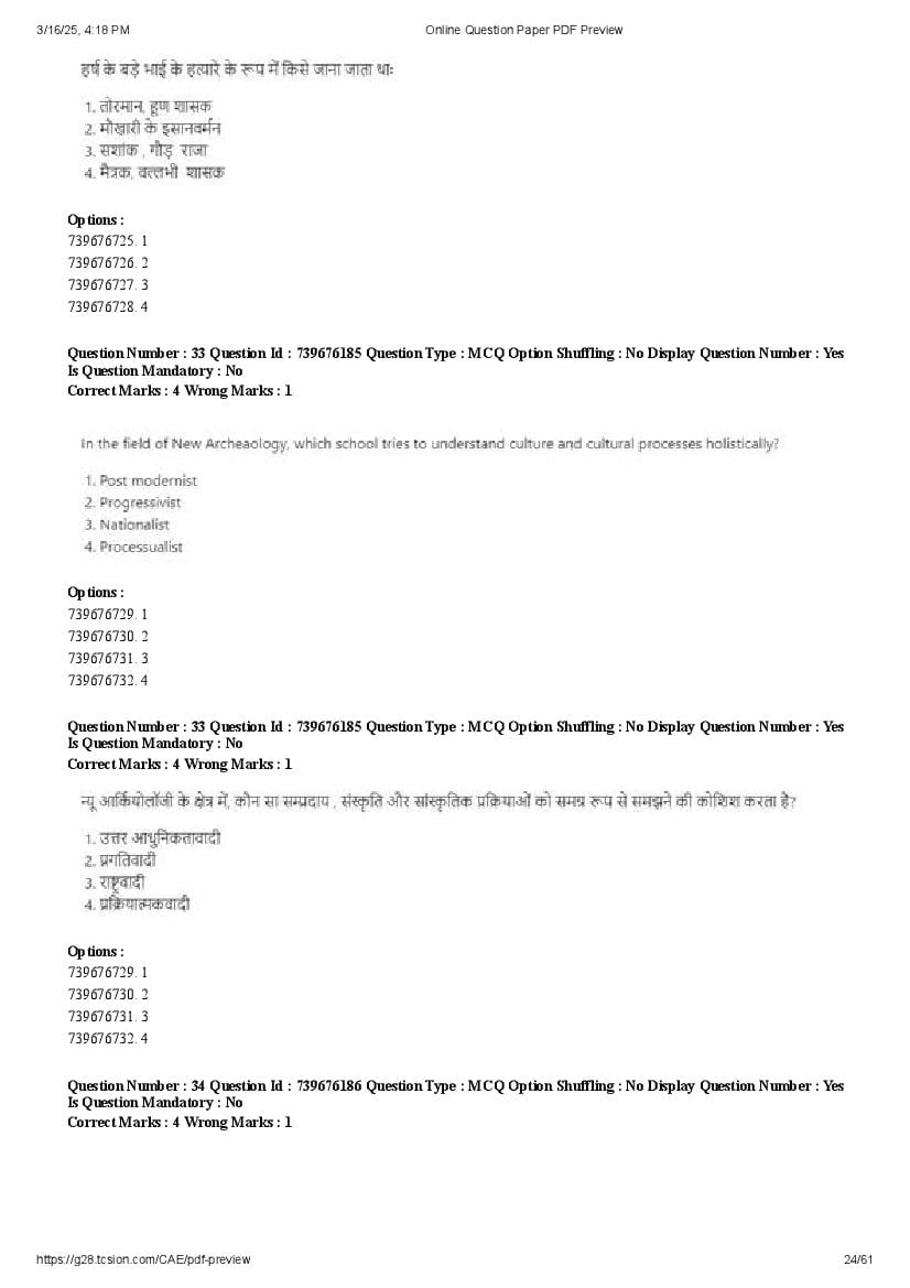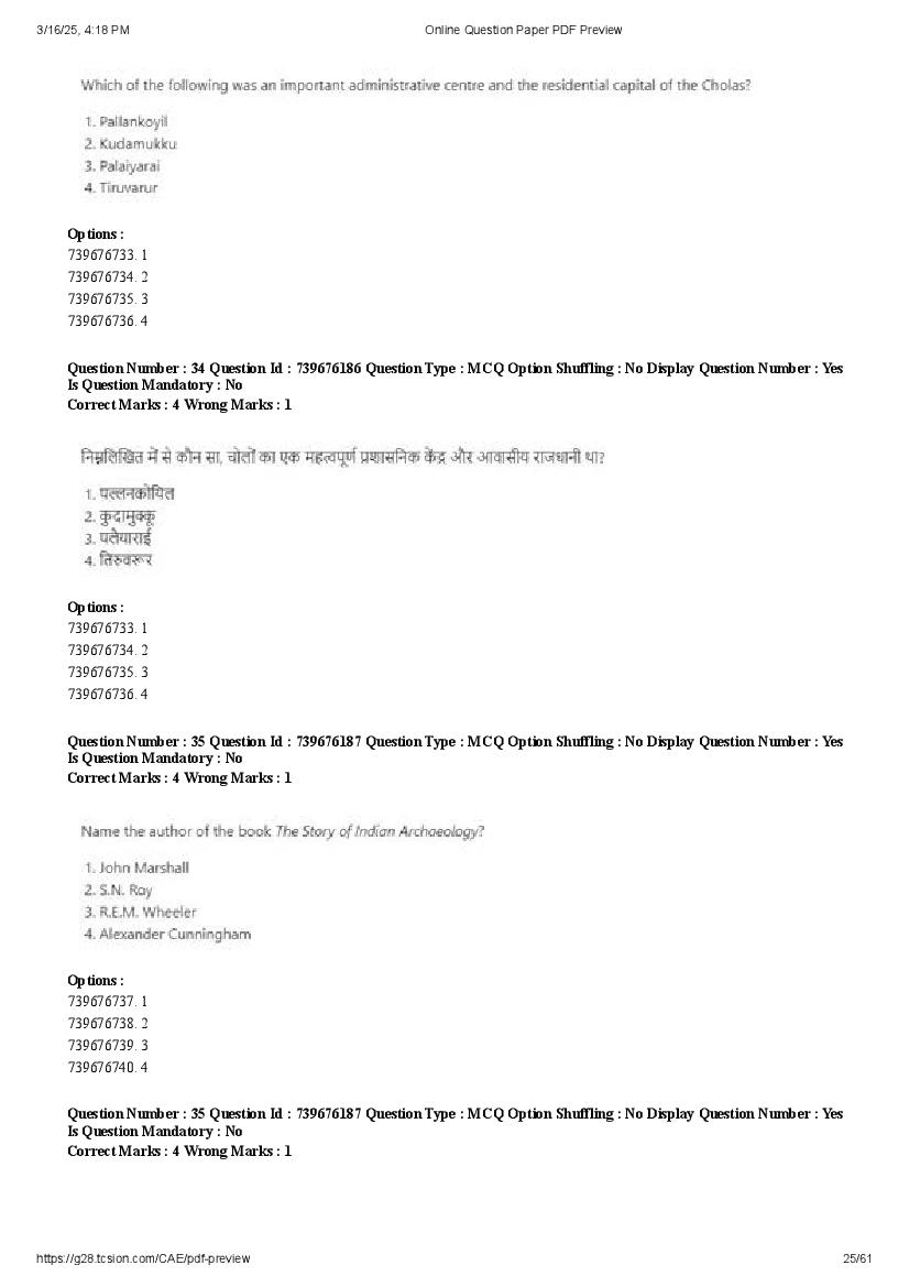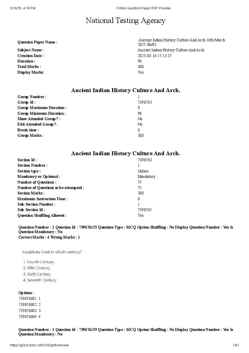 CUET PG 2025 Question Paper Ancient Indian History Culture and Arch. View Download