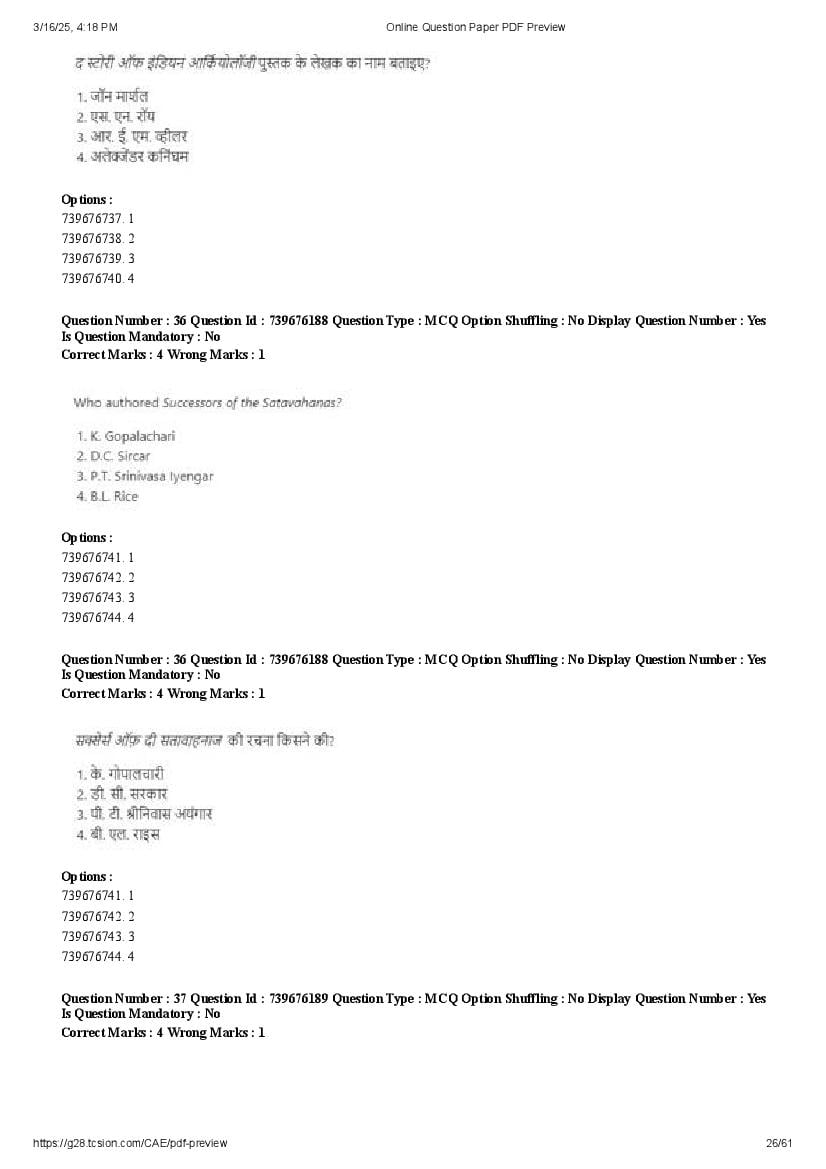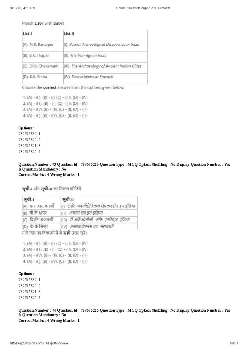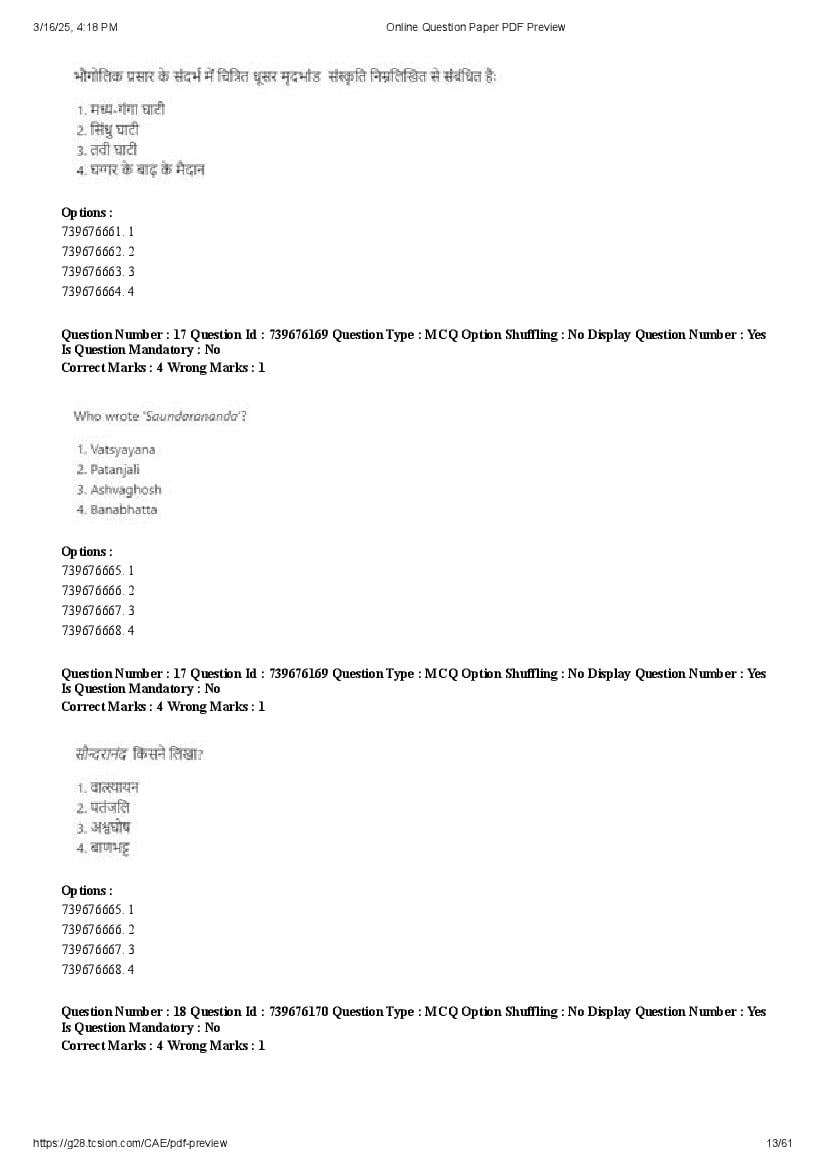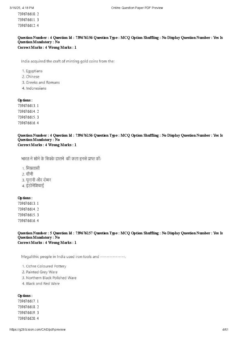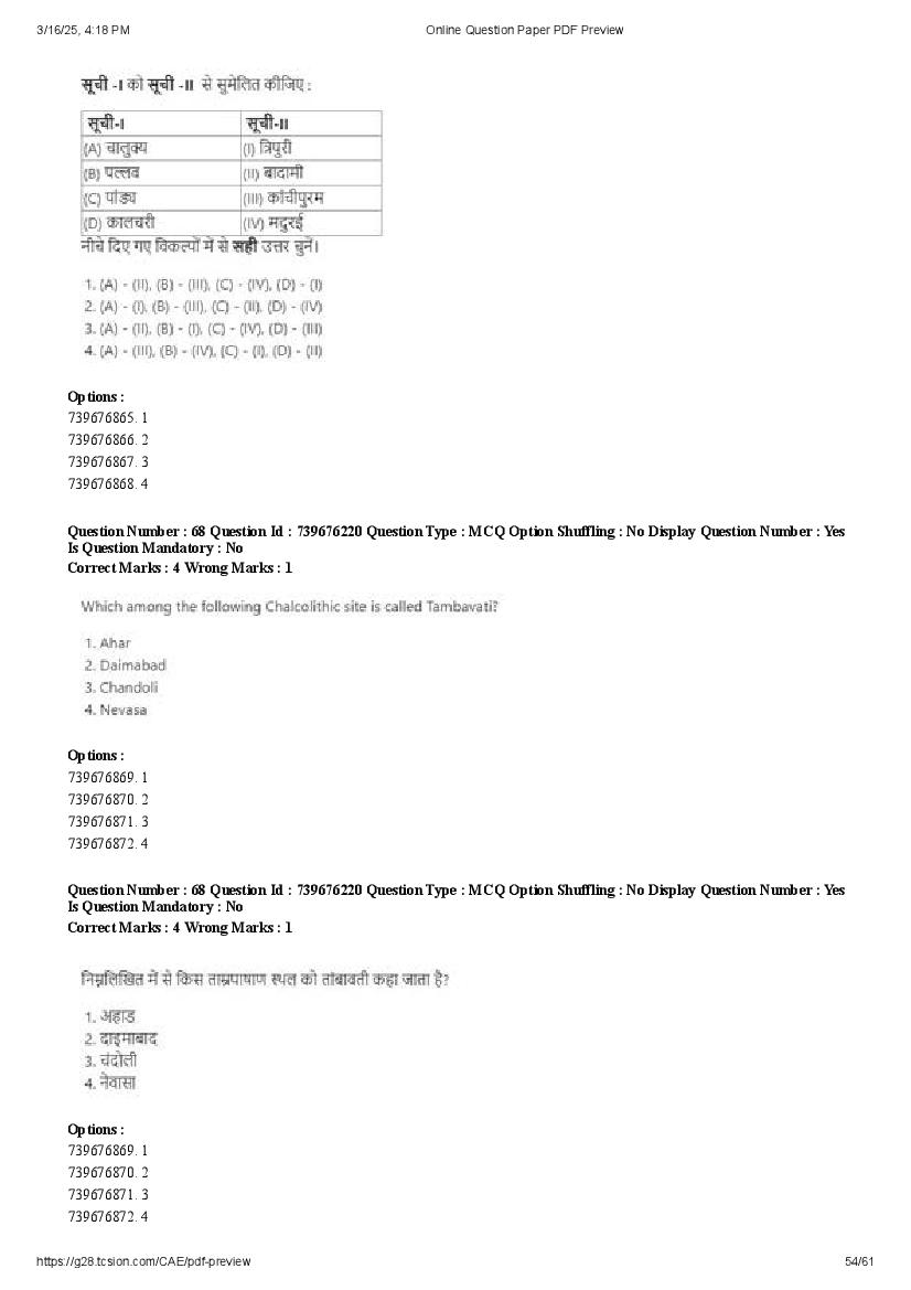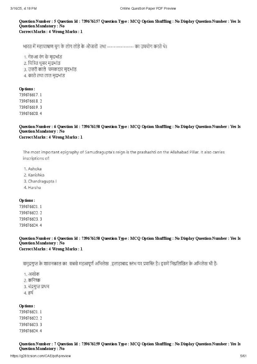 CUET PG 2025 Question Paper Ancient Indian History Culture and Arch. View Download