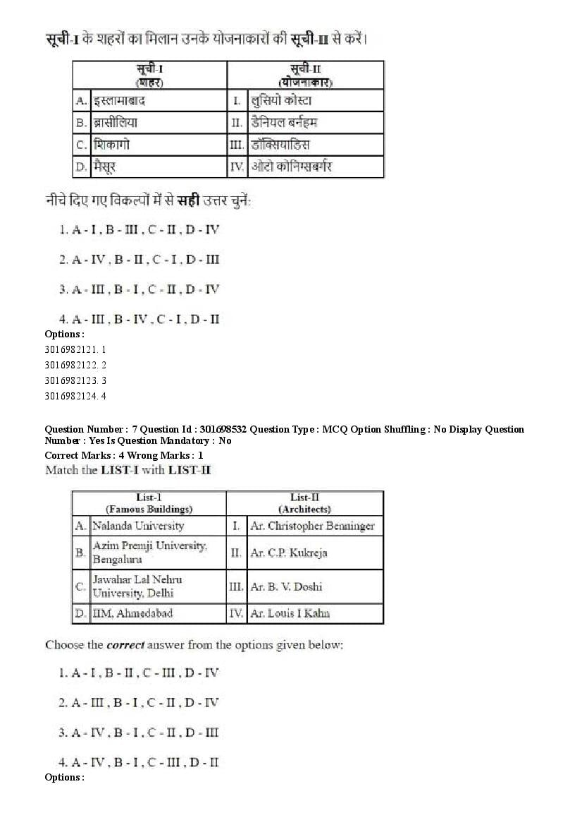 2026 Question papers will be updated soon. The latest available complete cuet pg question paper for Architecture is given below.