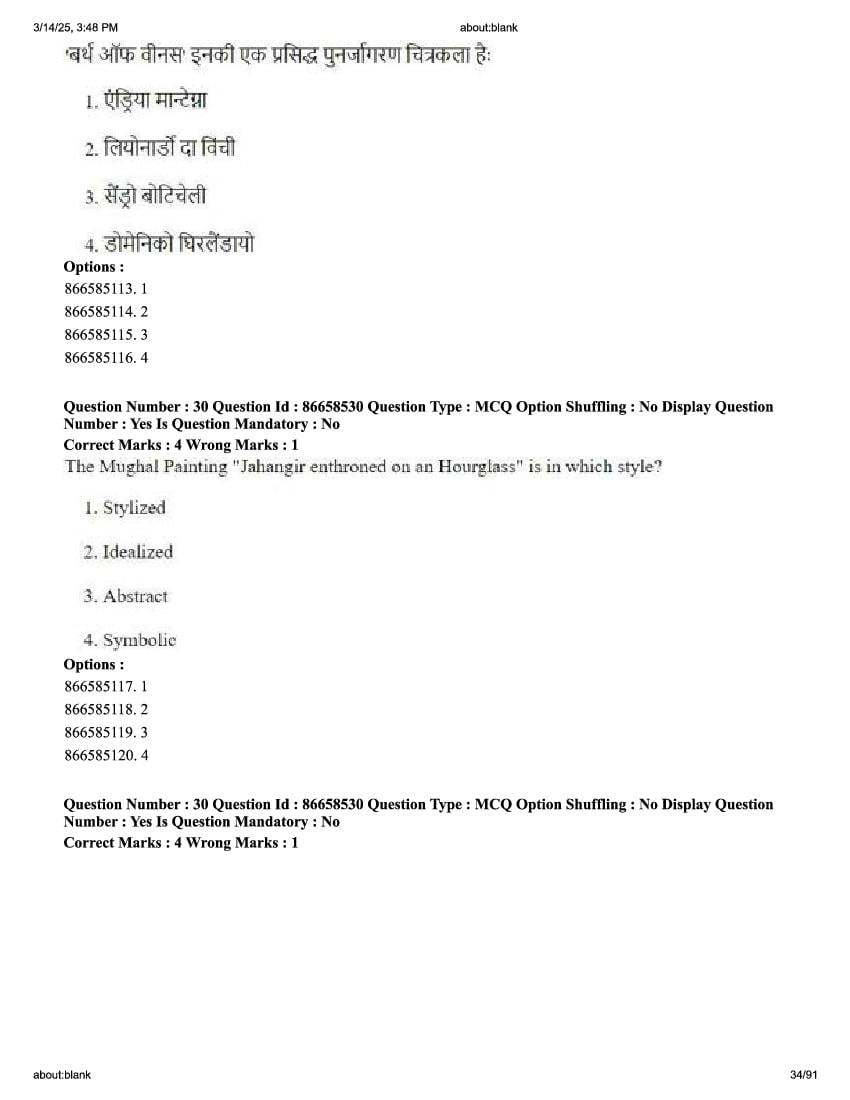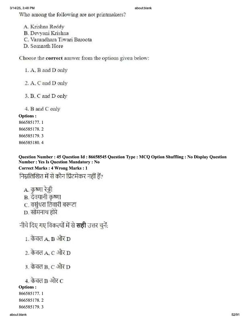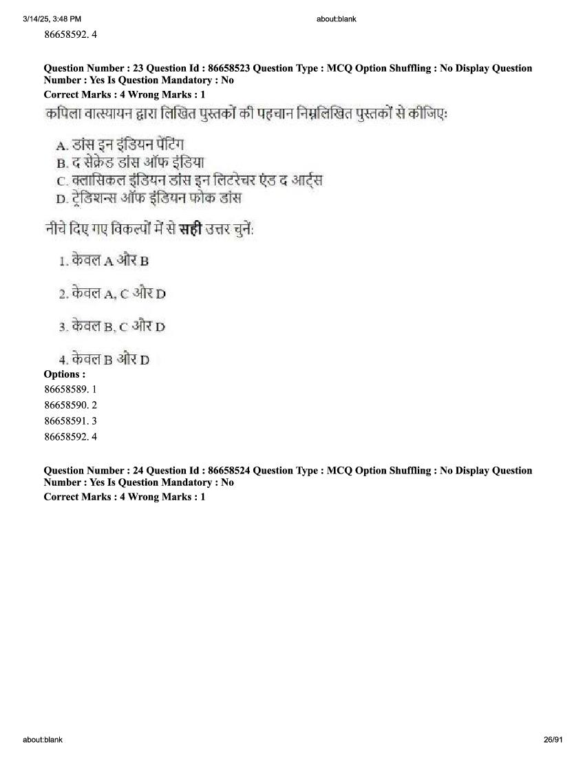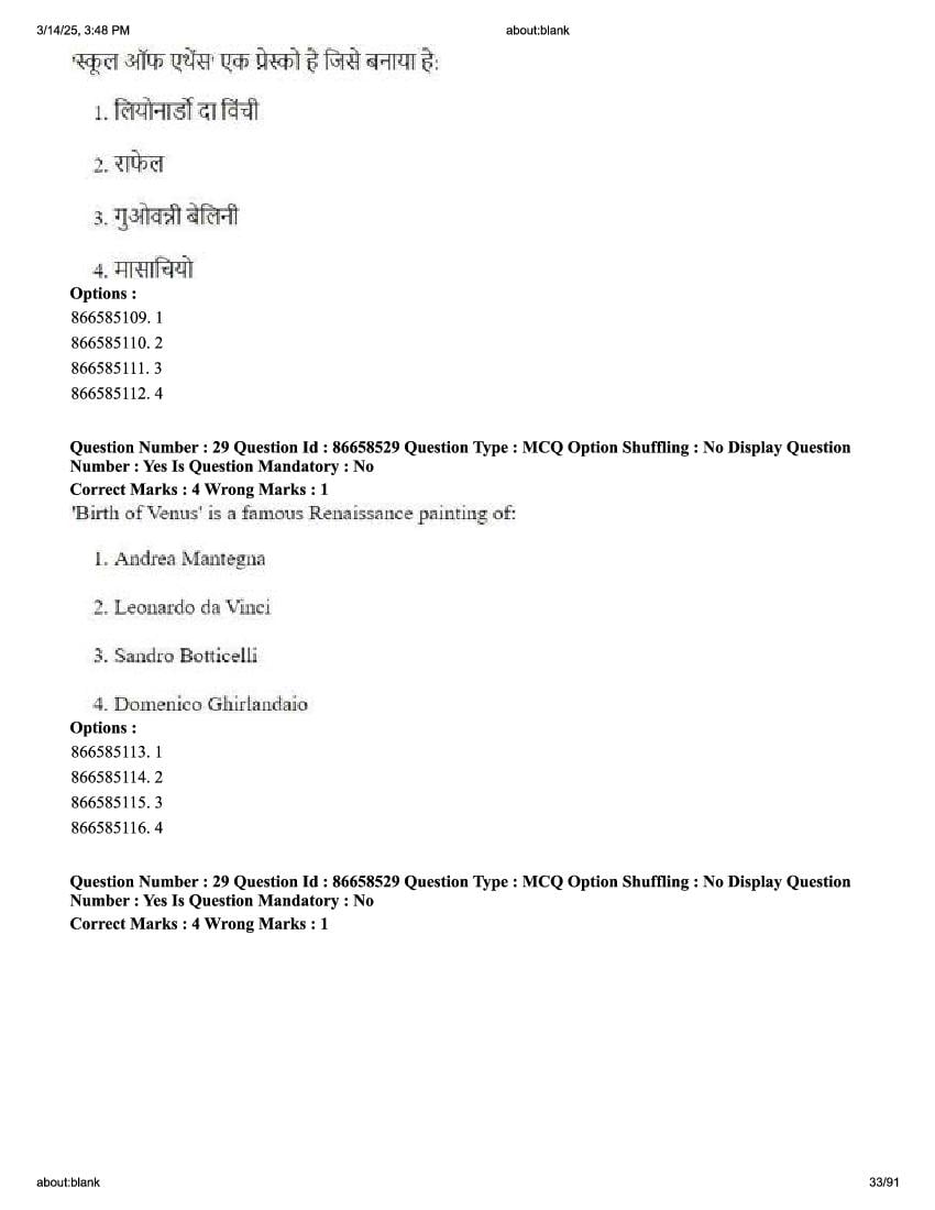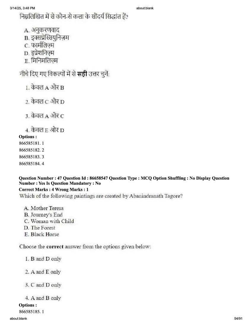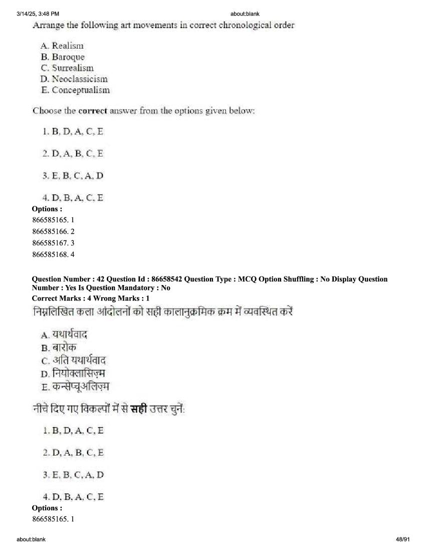 The previous year question paper of CUET PG for Art and Aesthetics held in the year 2026 is as follows.