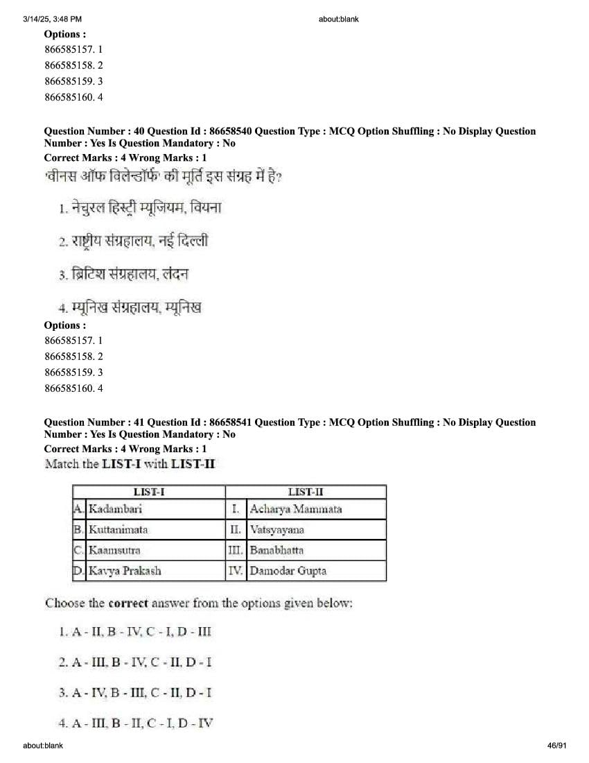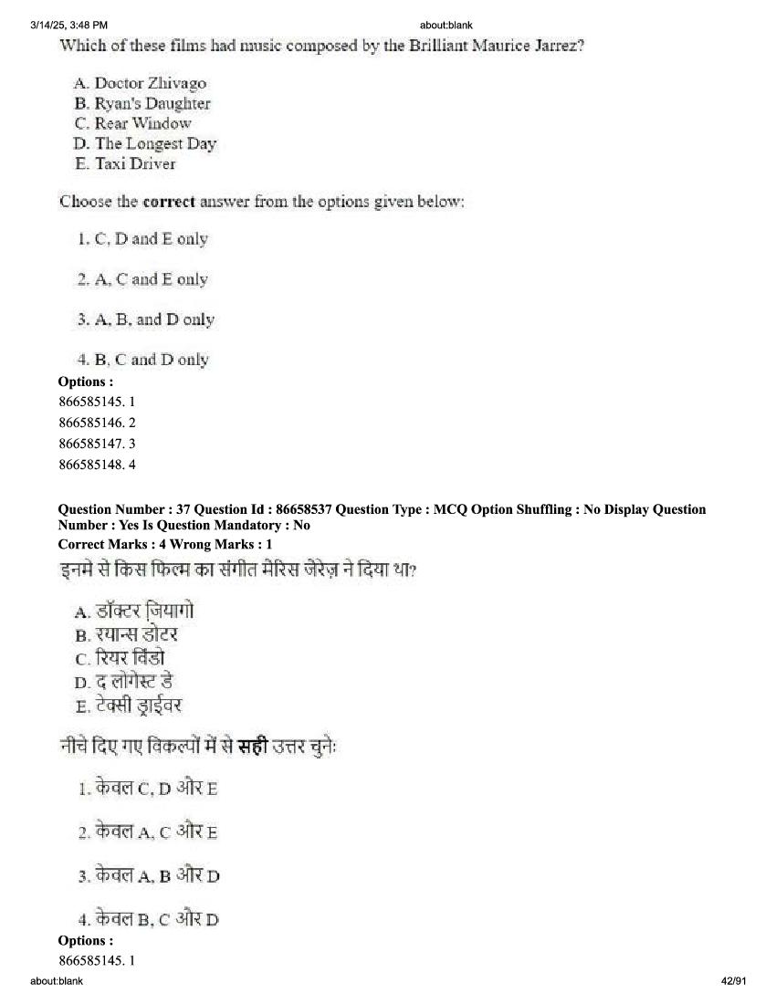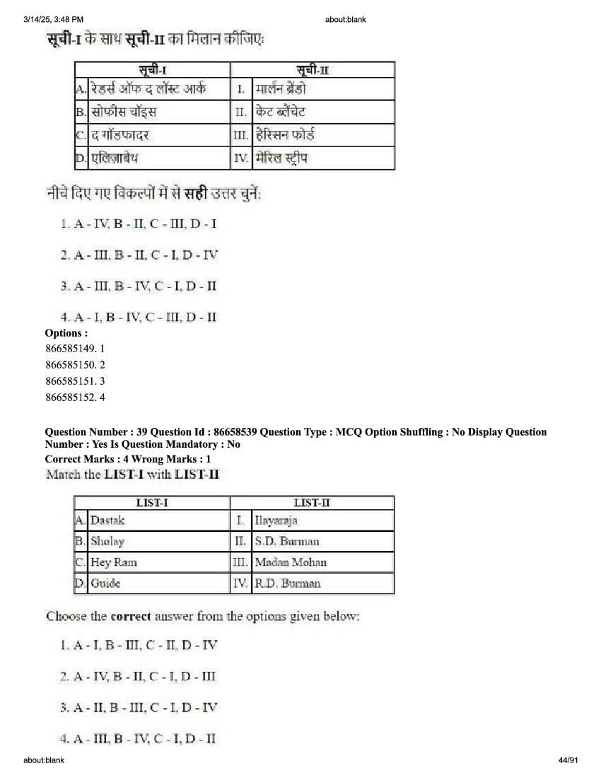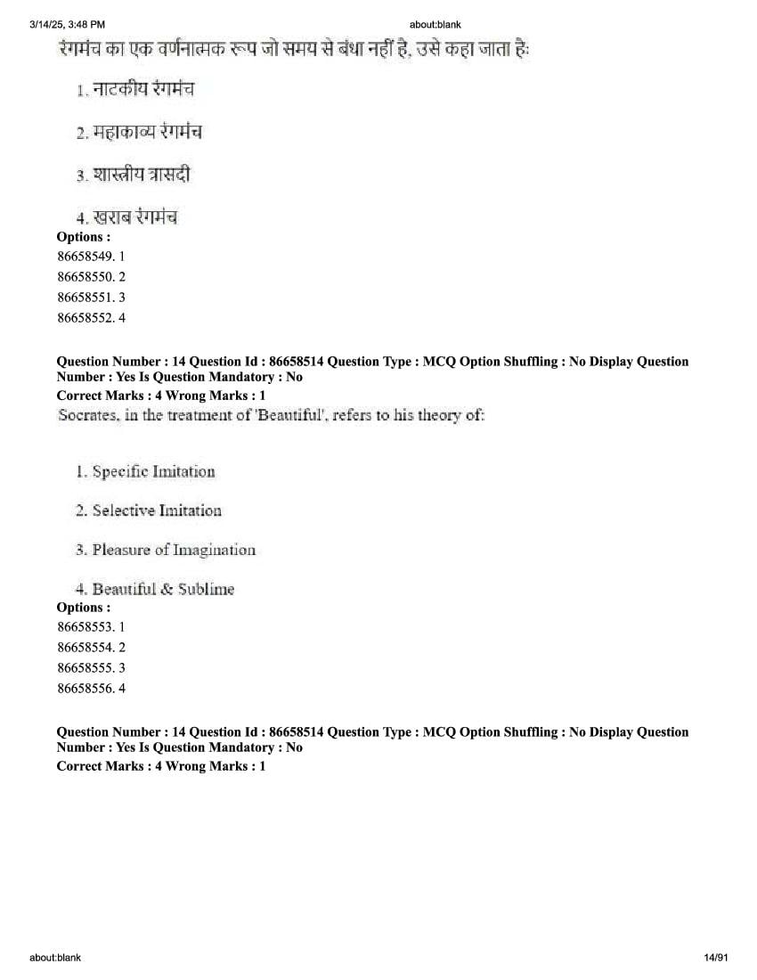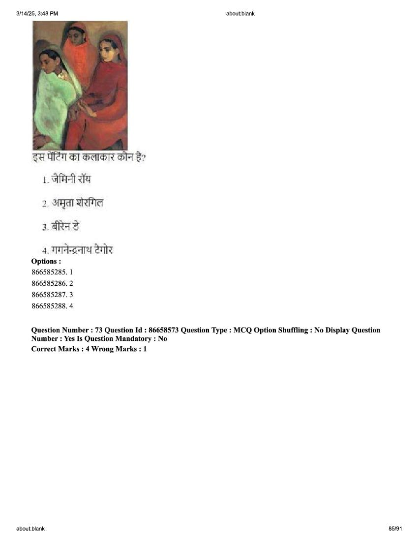 The previous year question paper of CUET PG for Art and Aesthetics held in the year 2026 is as follows.