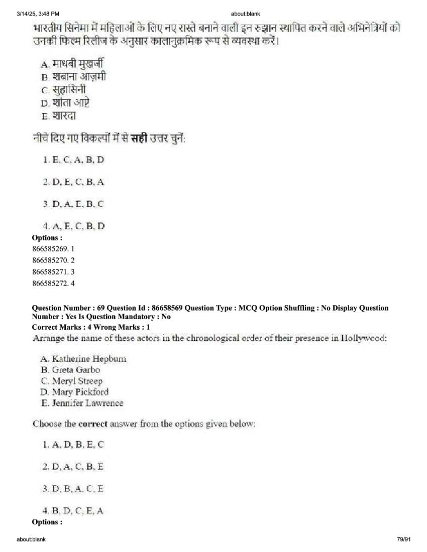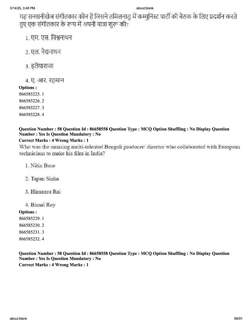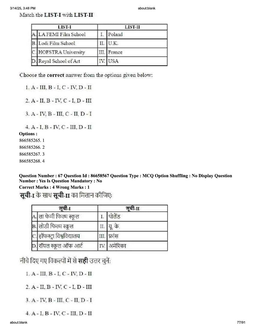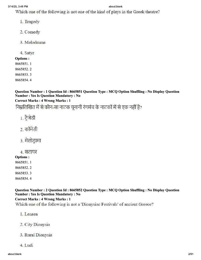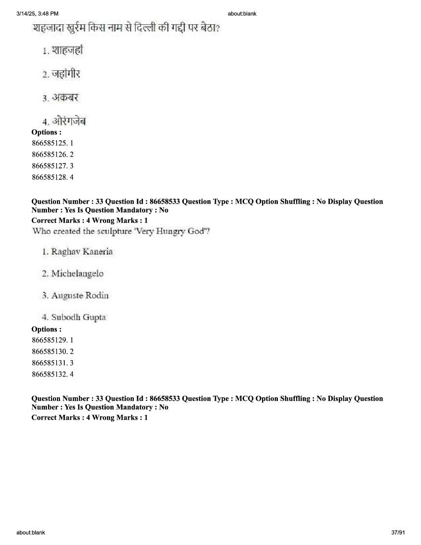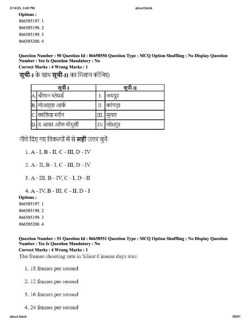 The previous year question paper of CUET PG for Art and Aesthetics held in the year 2026 is as follows.