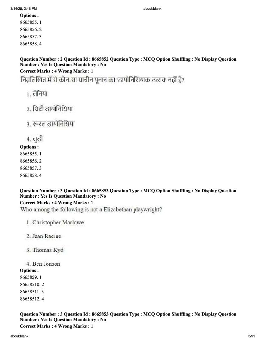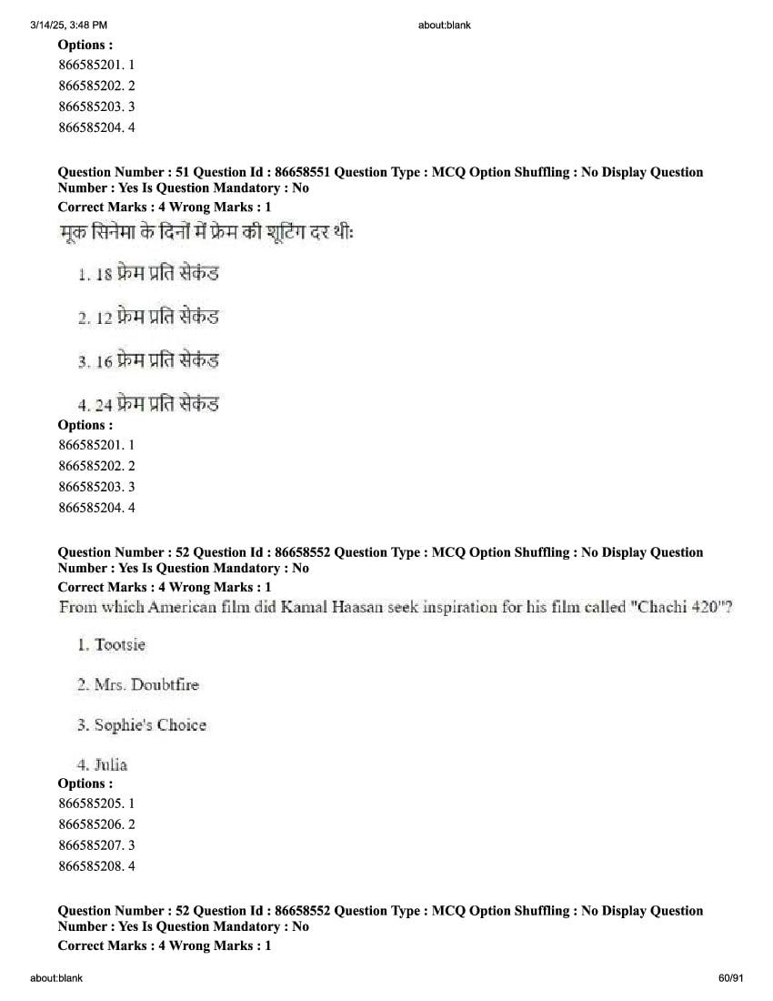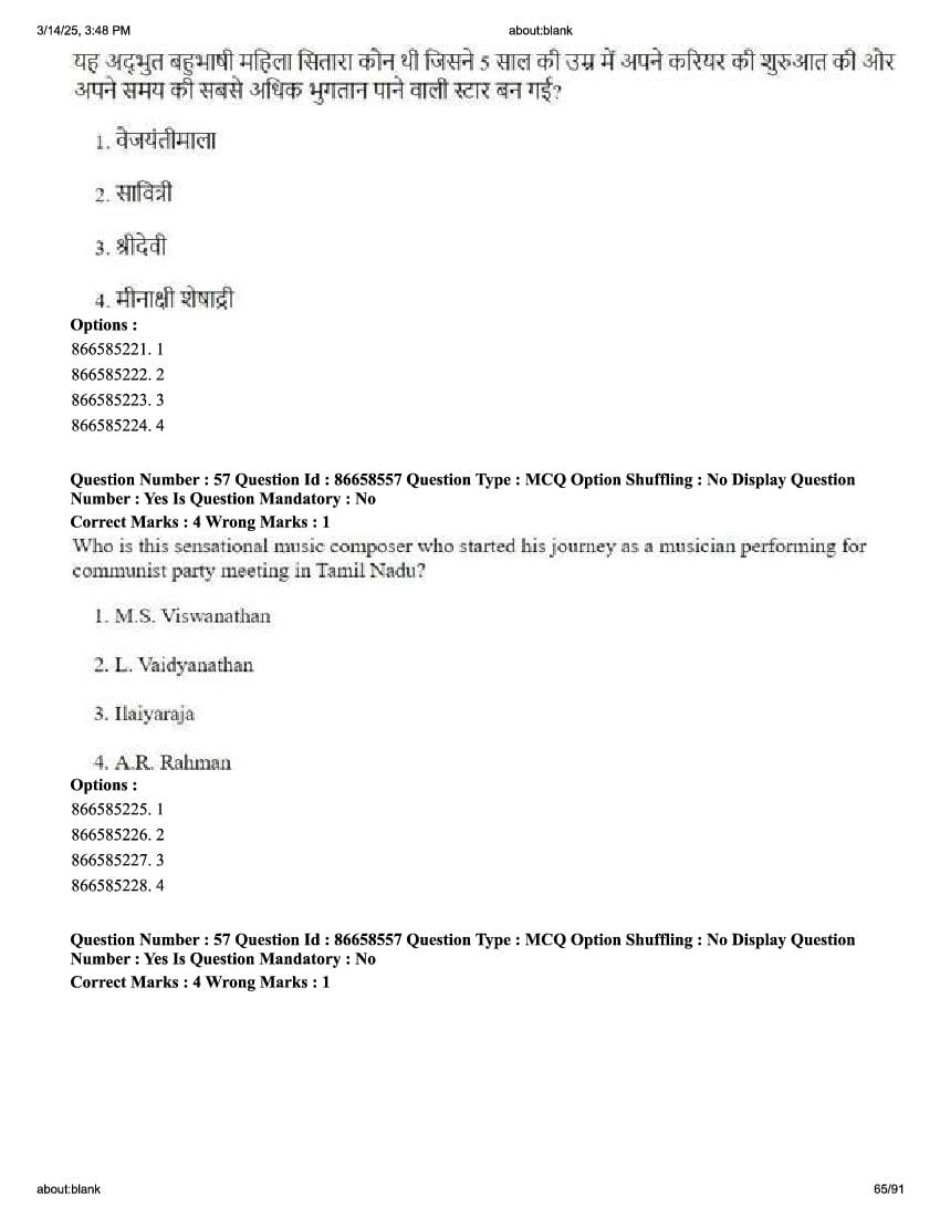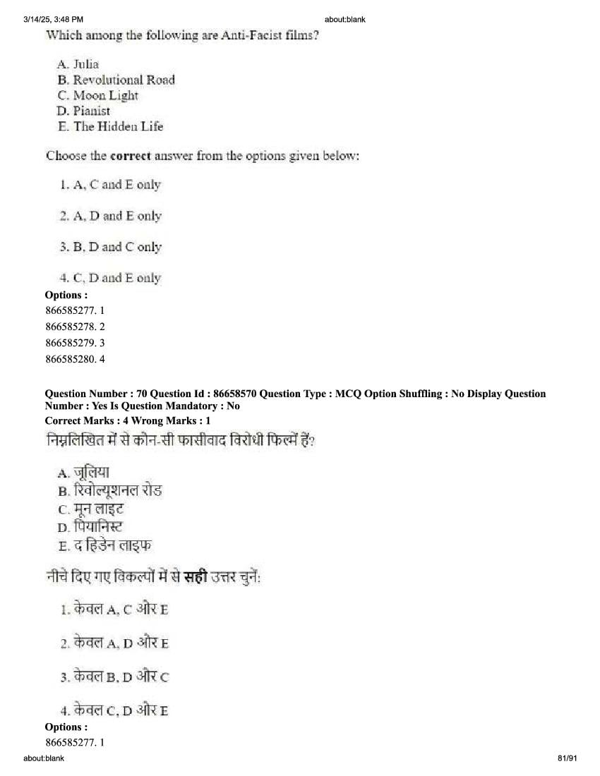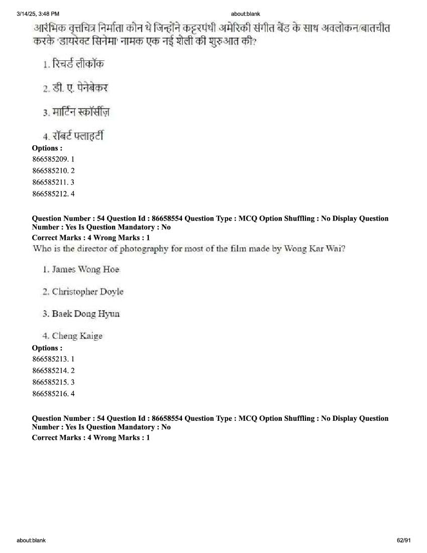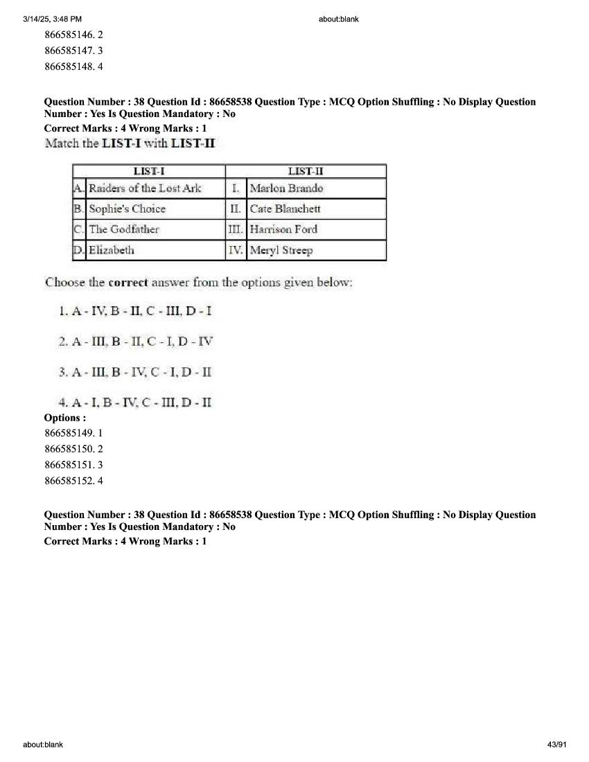The previous year question paper of CUET PG for Art and Aesthetics held in the year 2026 is as follows.