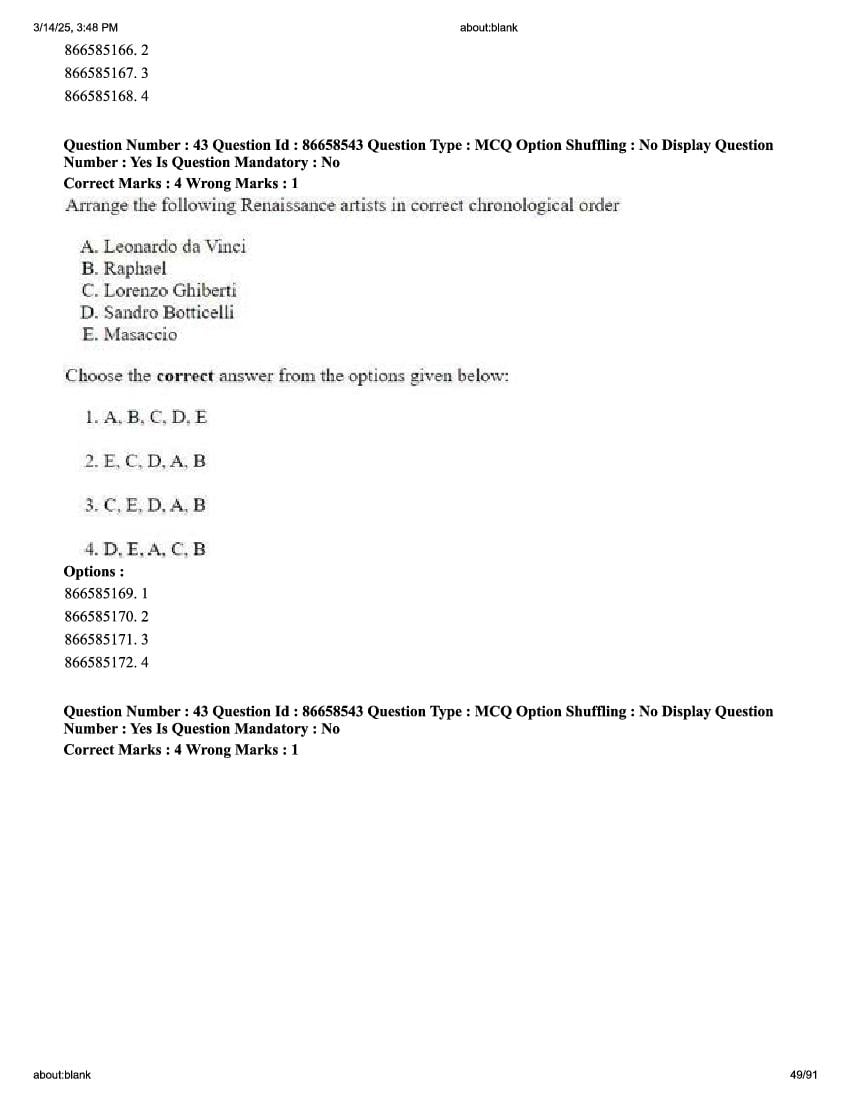 2026 Question papers will be updated soon. The latest available complete cuet pg question paper for Art and Aesthetics is given below.
