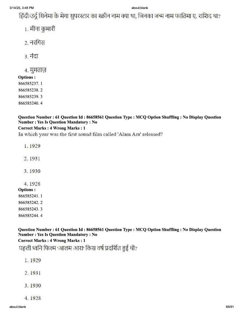 CUET PG 2025 Question Paper Art and Aesthetics View Download