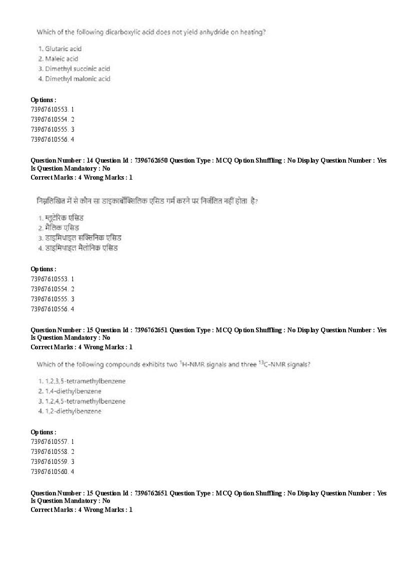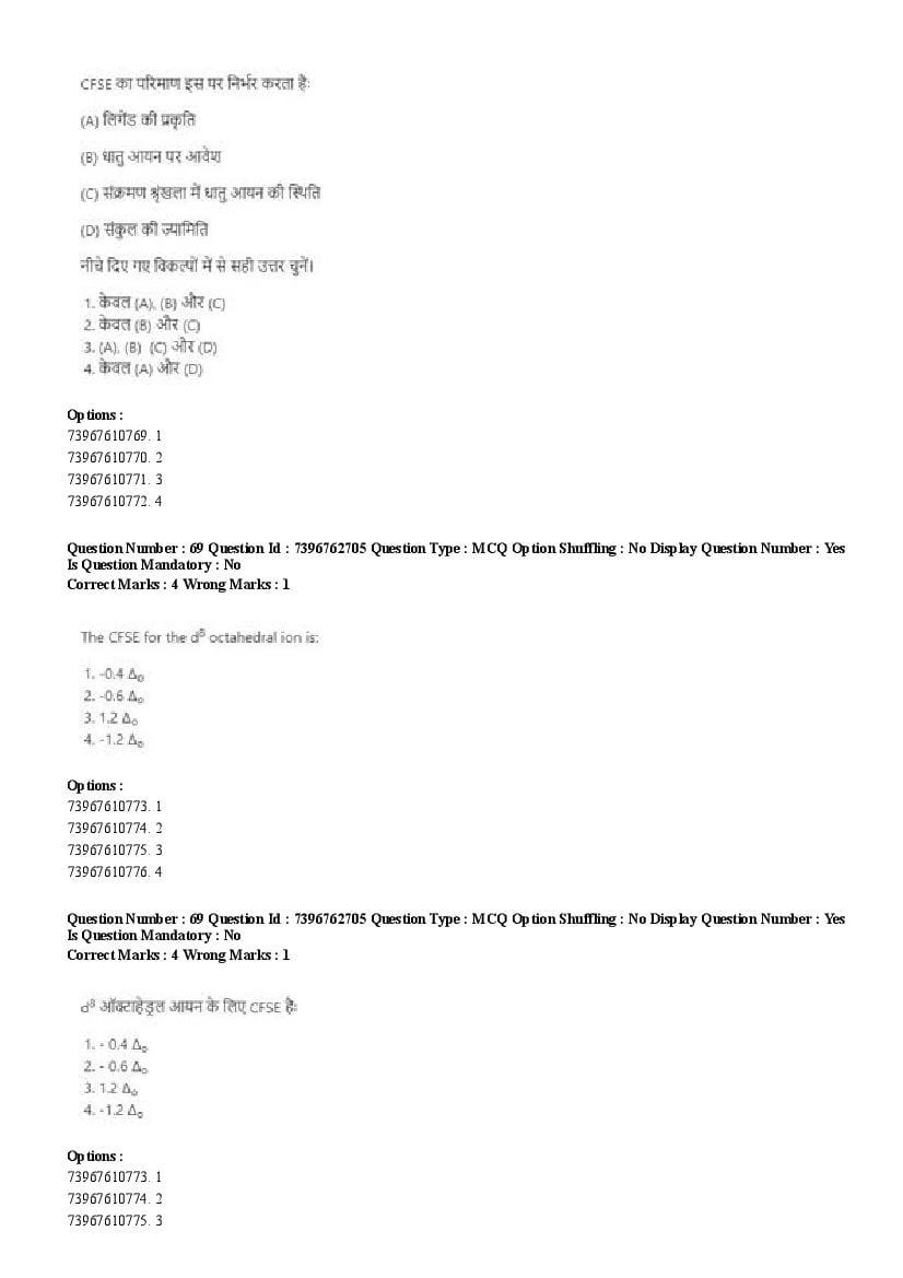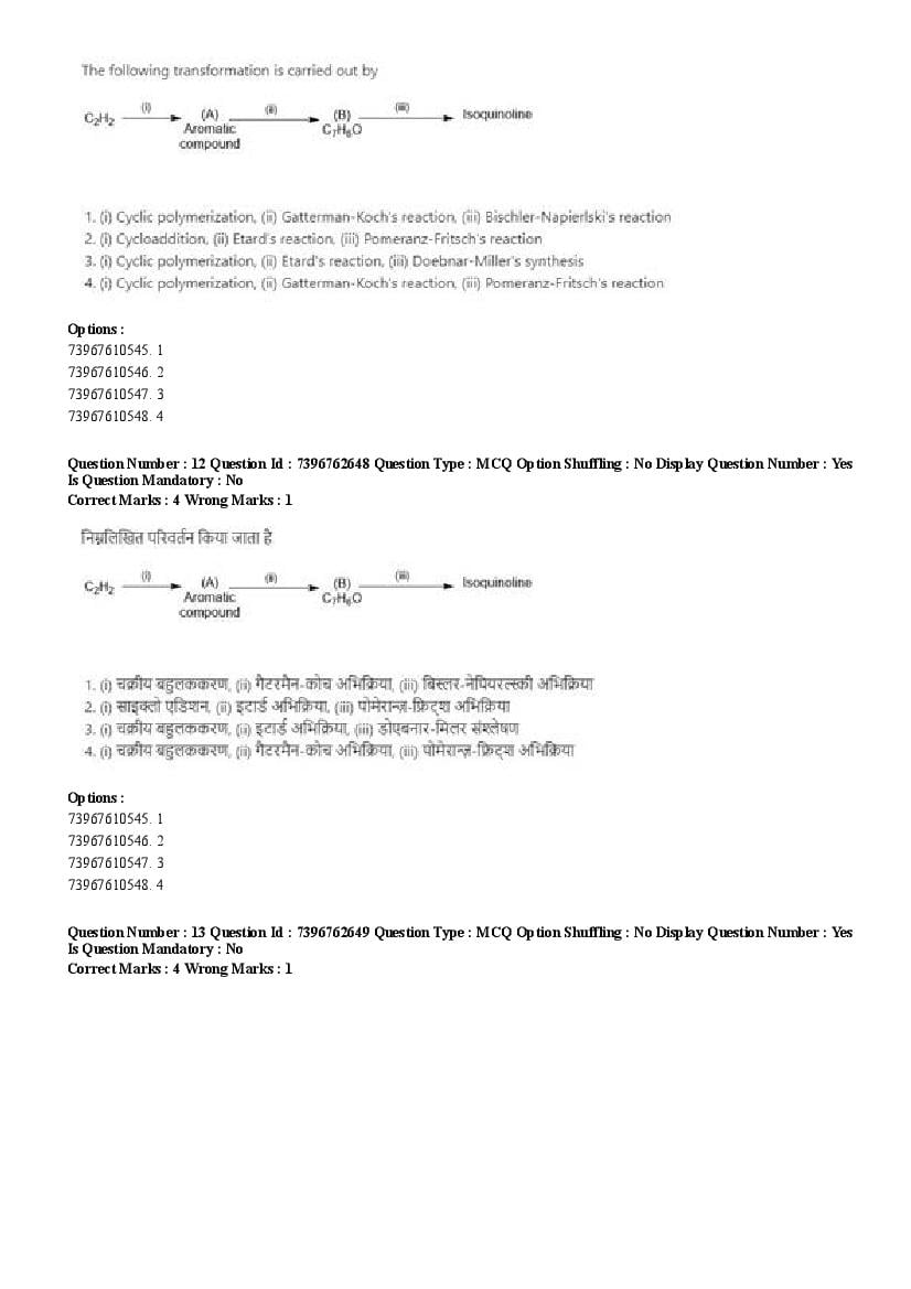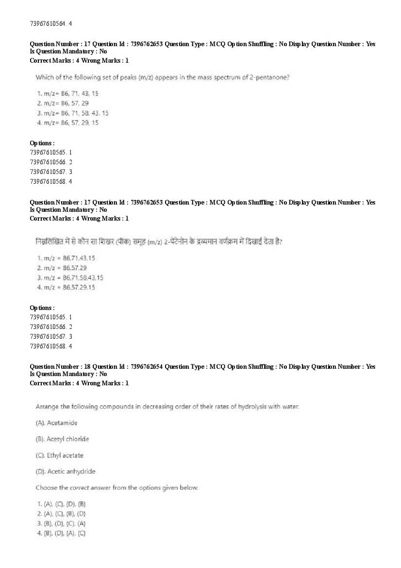 2026 Question papers will be updated soon. The latest available complete cuet pg question paper for Chemistry is given below.