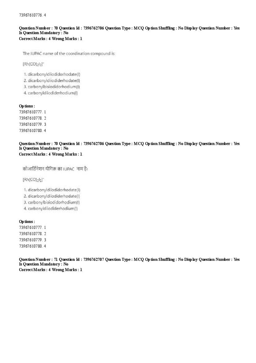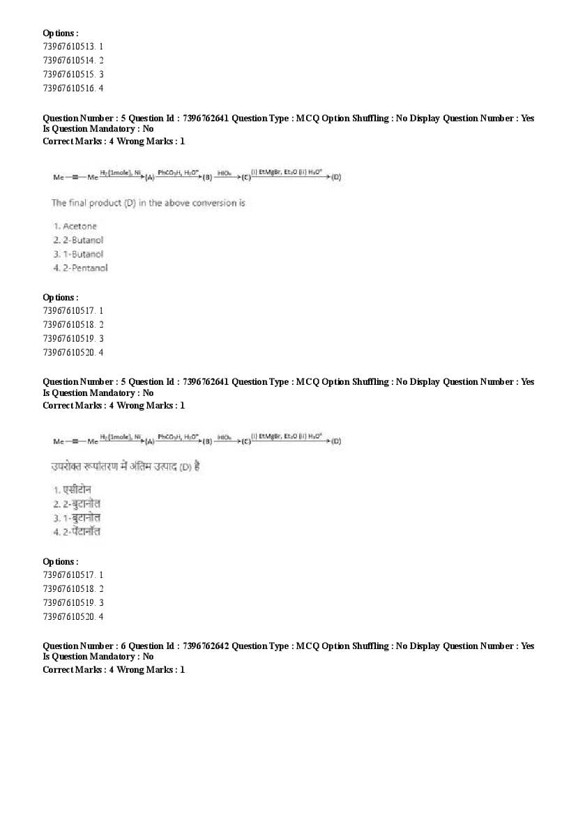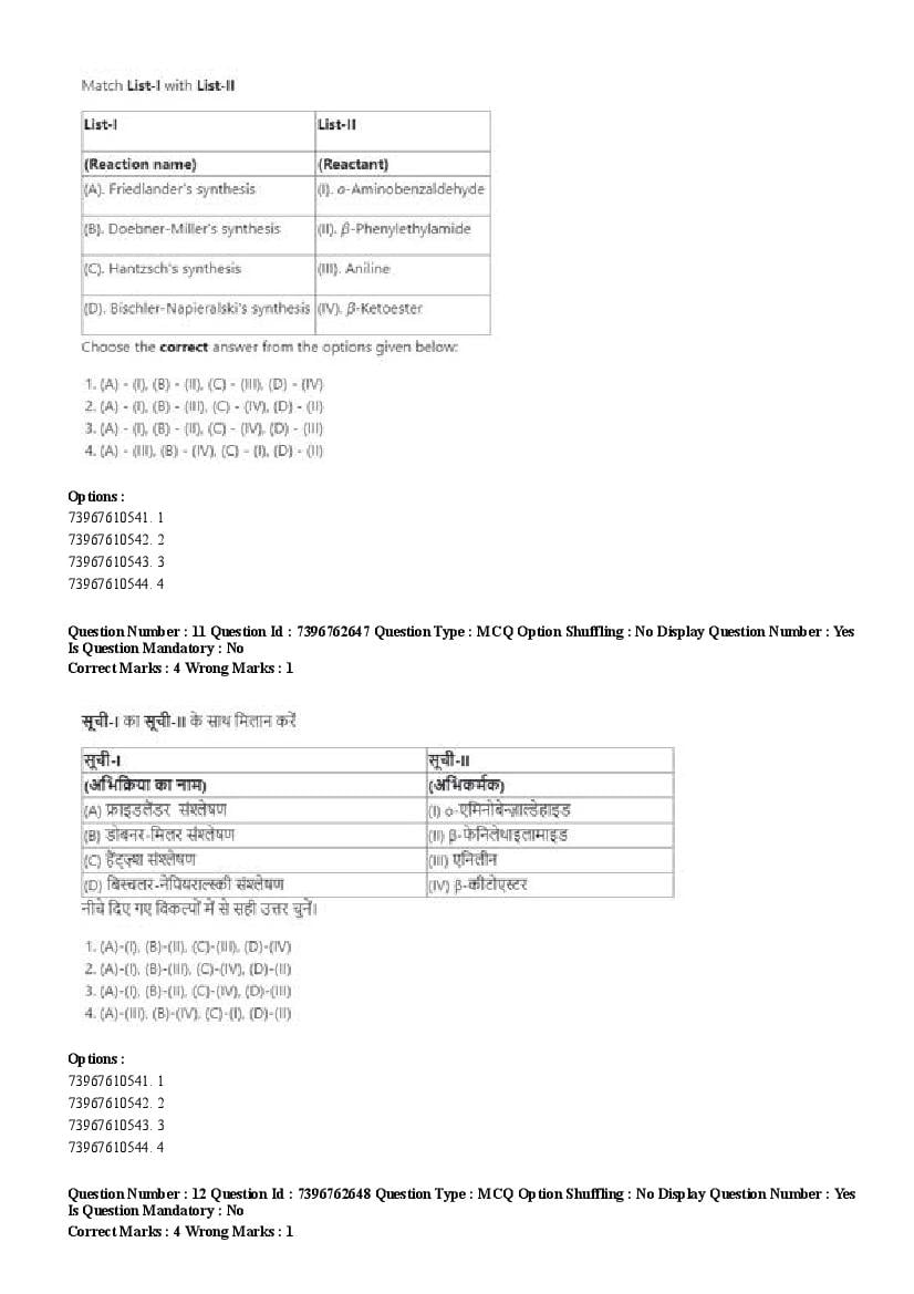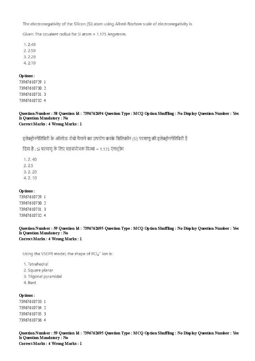 2026 Question papers will be updated soon. The latest available complete cuet pg question paper for Chemistry is given below.