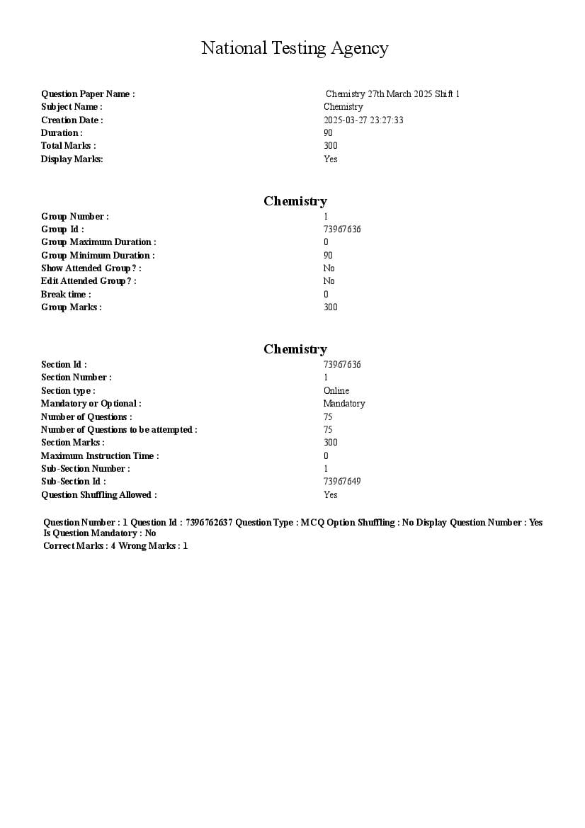 CUET PG Question Paper 2026 PDF for Chemistry Download Link – Link to Download Question Paper PDF and Answer Key will be updated here soon…