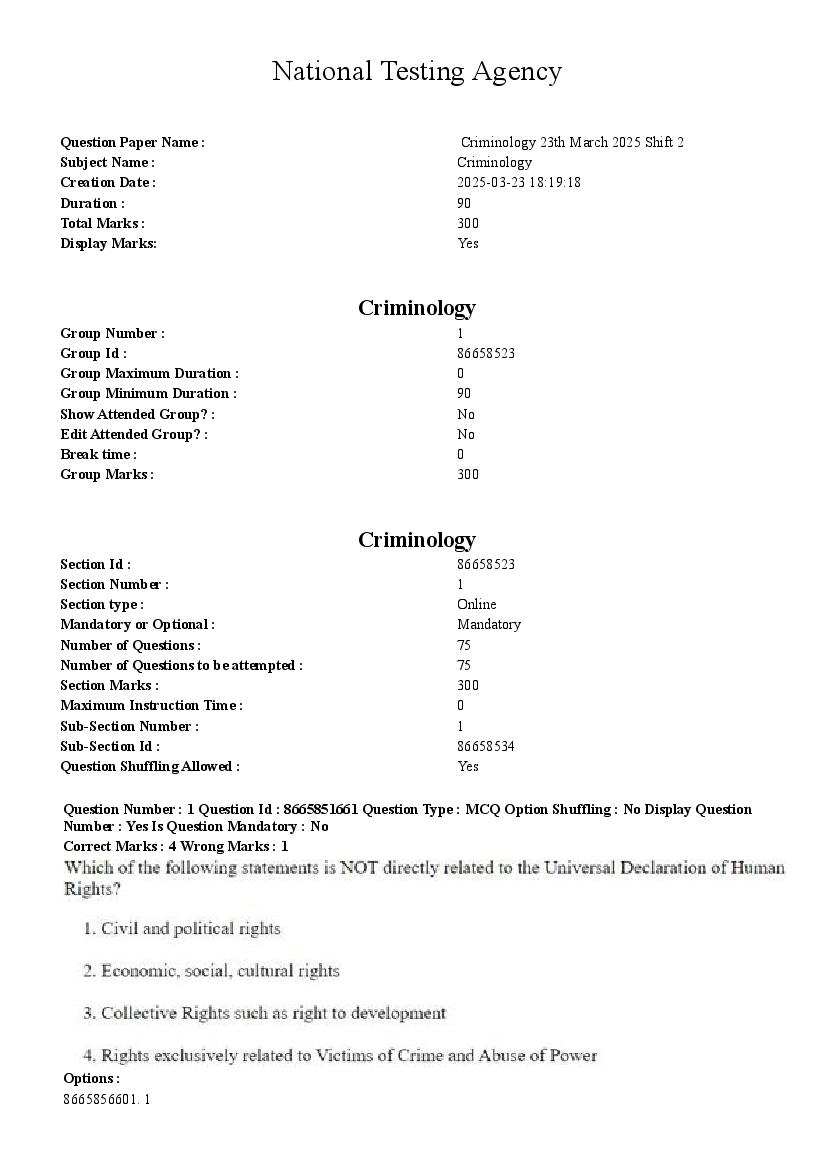 2026 Question papers will be updated soon. The latest available complete cuet pg question paper for Criminology is given below.