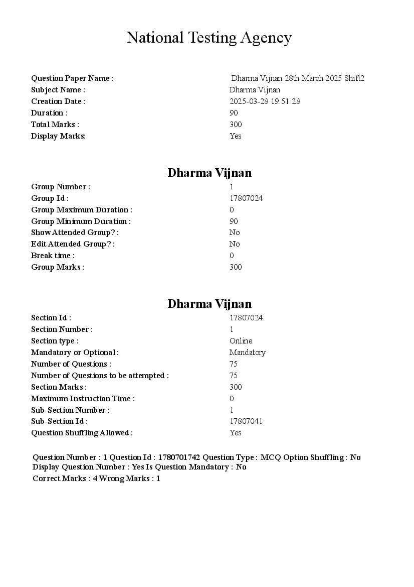CUET PG 2025 Question Paper Dharma Vijnan View Download
