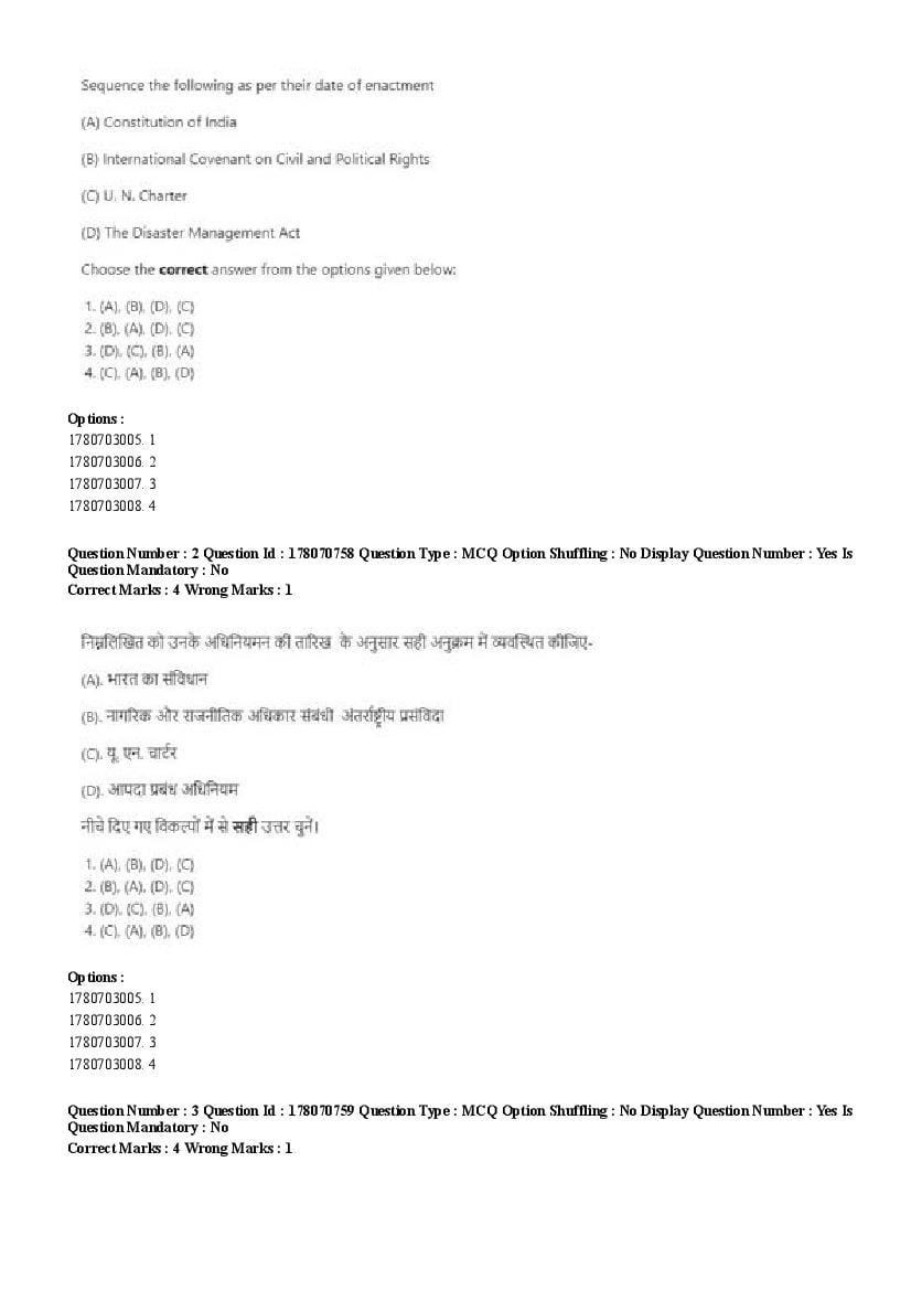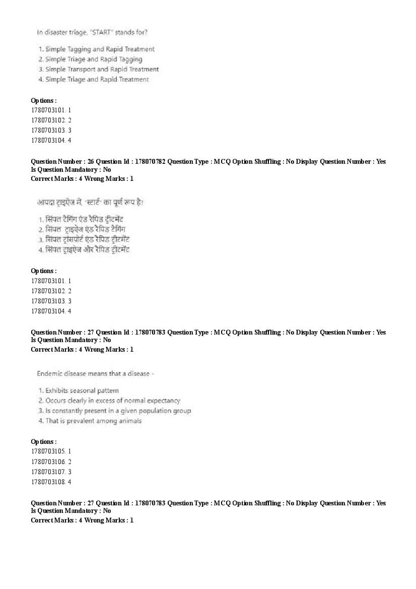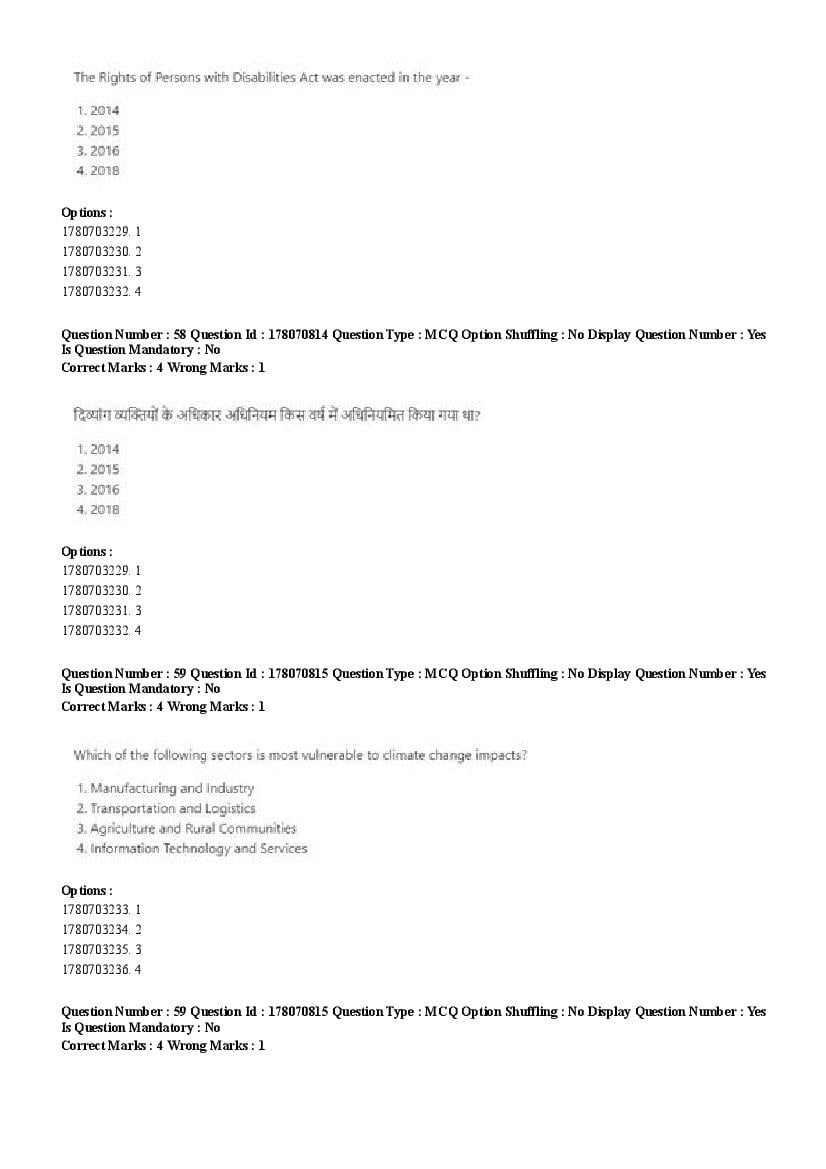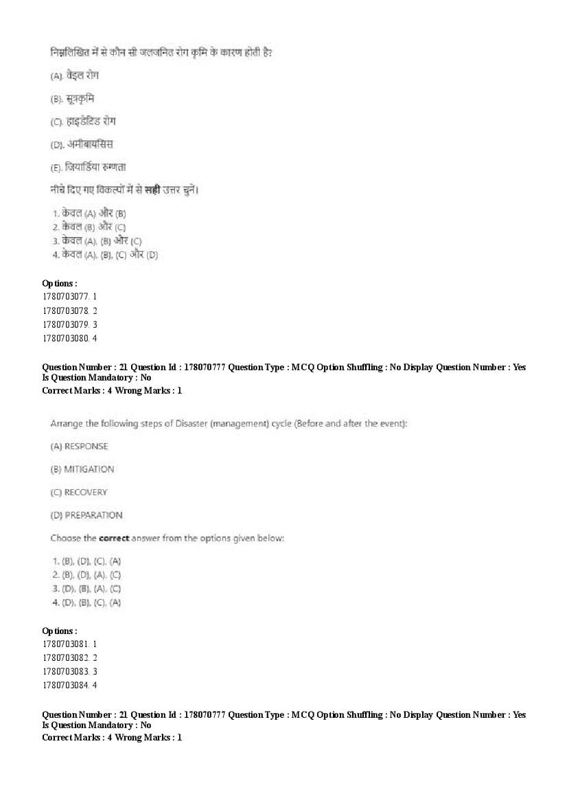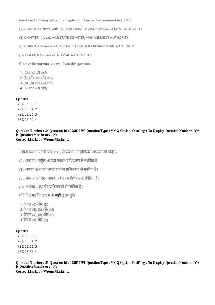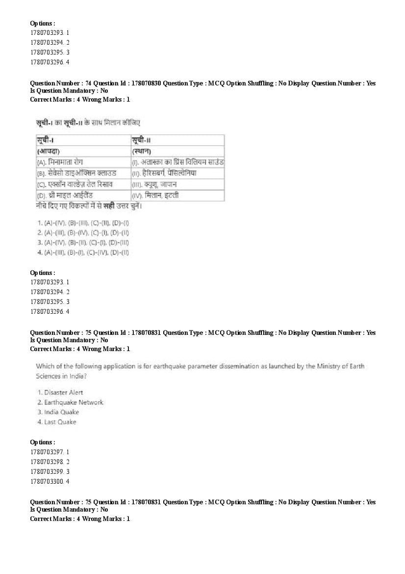 2026 Question papers will be updated soon. The latest available complete cuet pg question paper for Disaster Studies is given below.