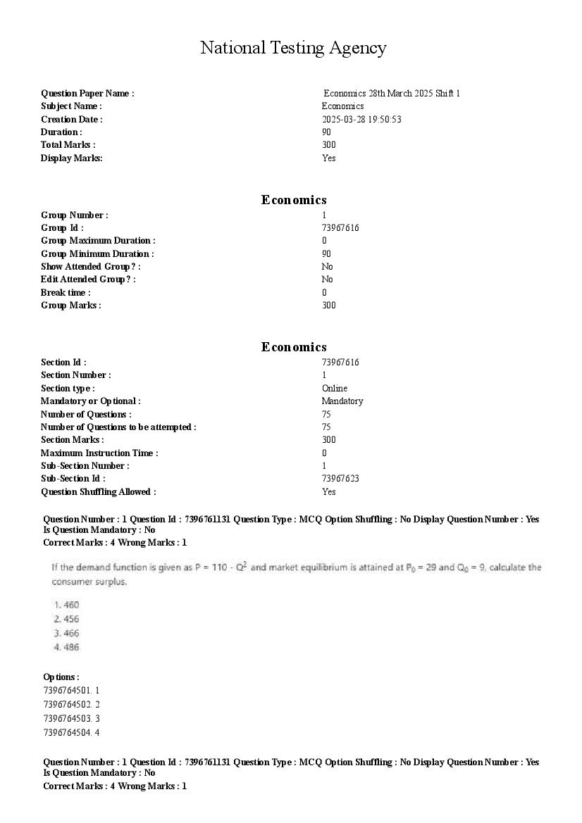 2026 Question papers will be updated soon. The latest available complete cuet pg question paper for Economics is given below.