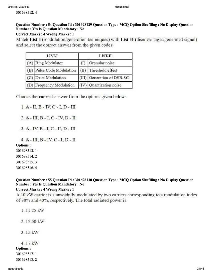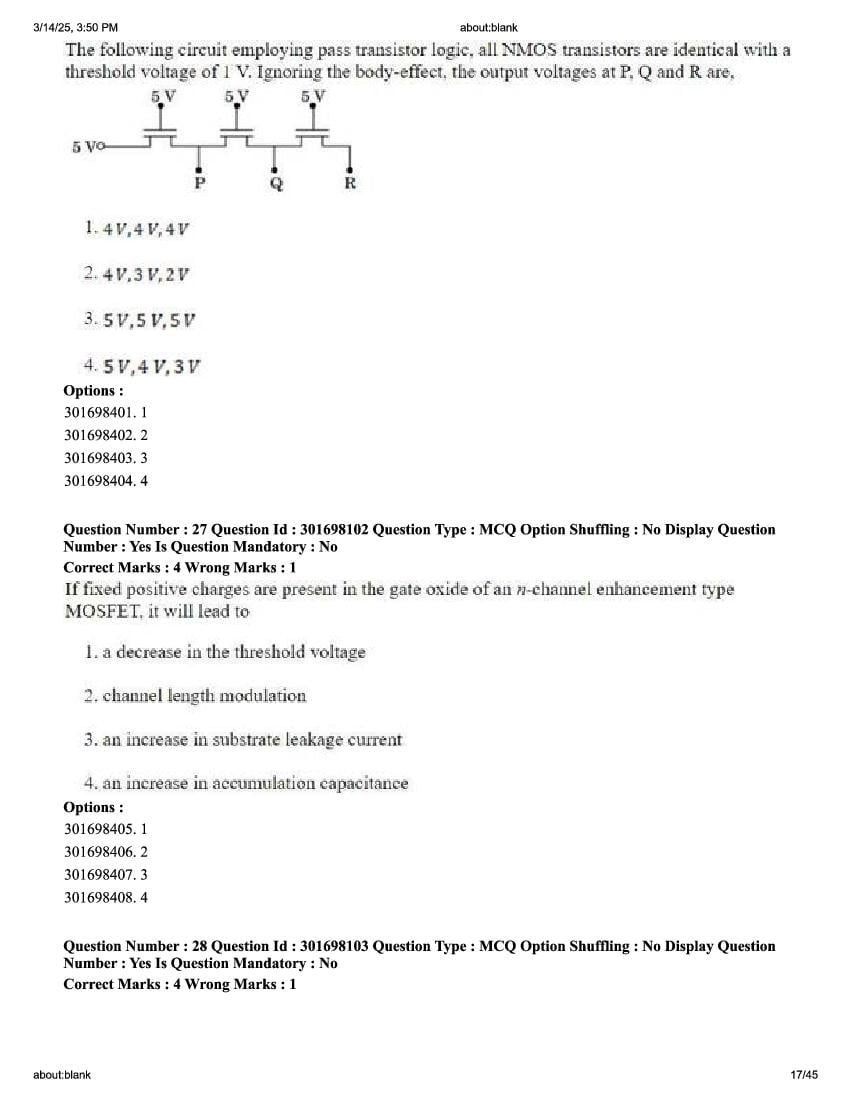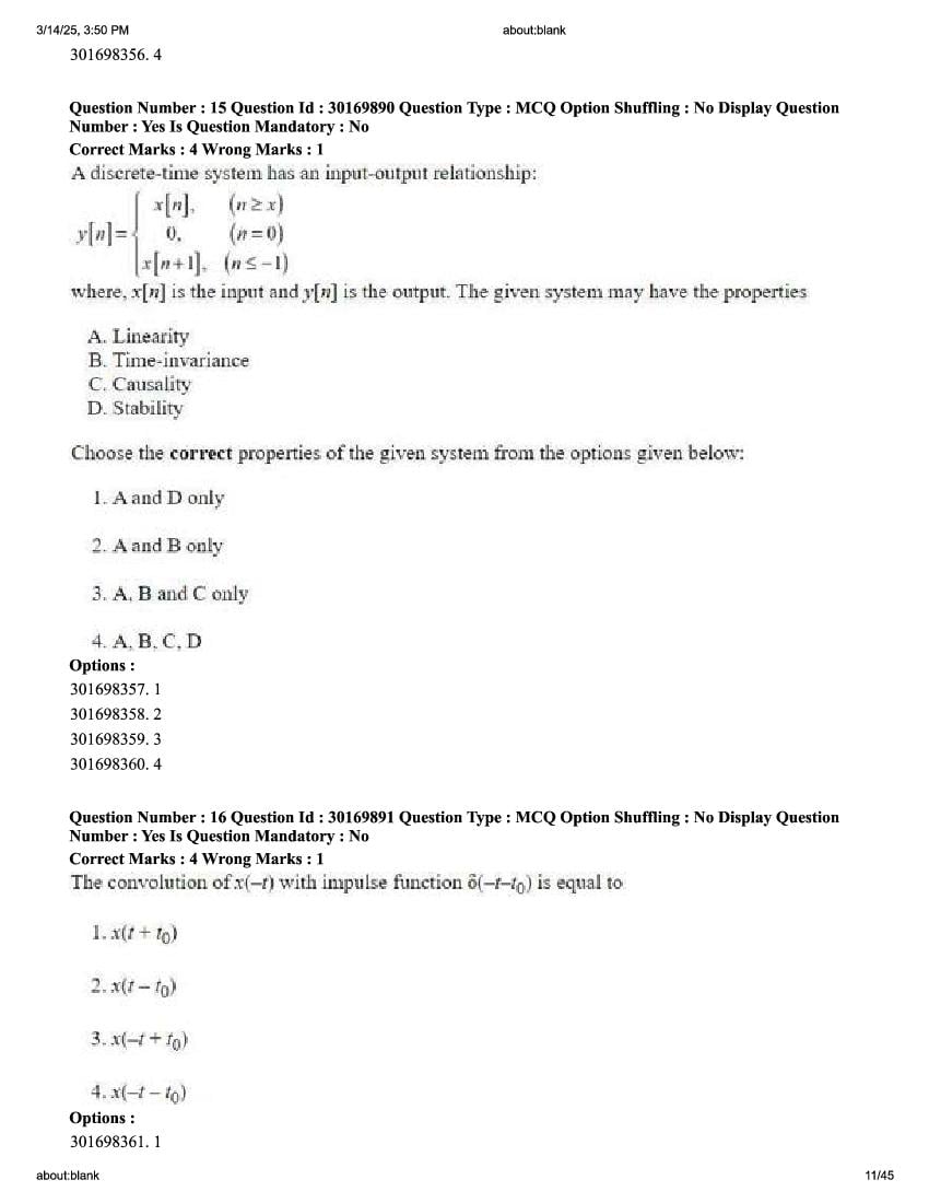 The previous year question paper of CUET PG for Electronics Communication and Information held in the year 2026 is as follows.