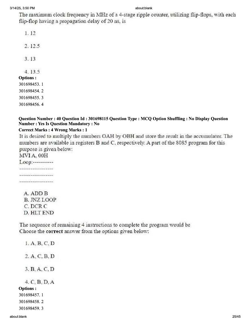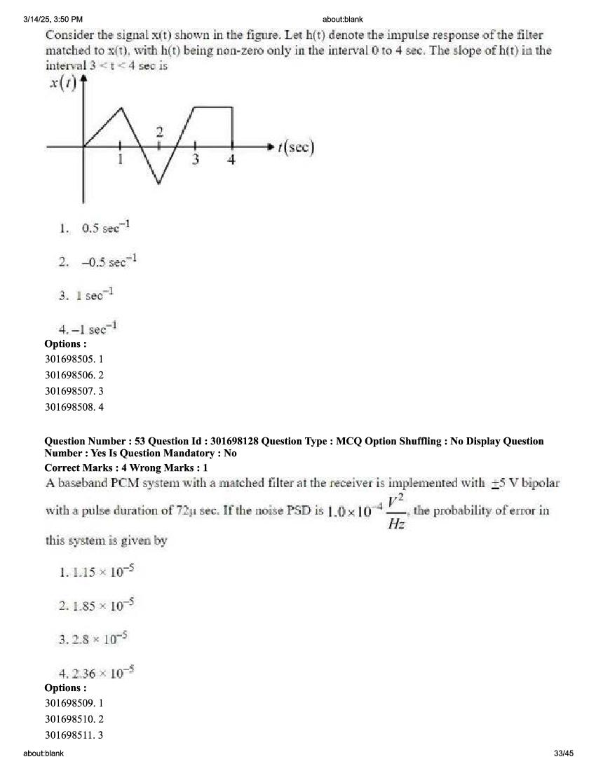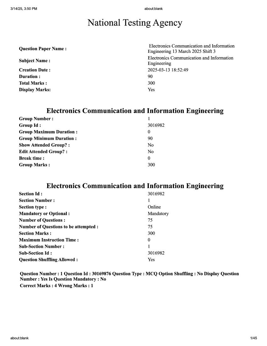 CUET PG 2025 Question Paper Electronics Communication and Information Engineering View Download
