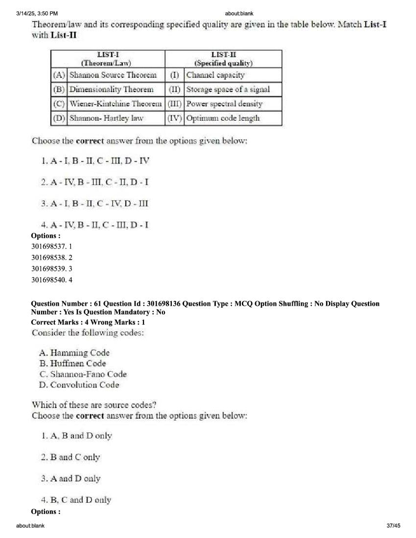 2026 Question papers will be updated soon. The latest available complete cuet pg question paper for Electronics Communication and Information is given below.