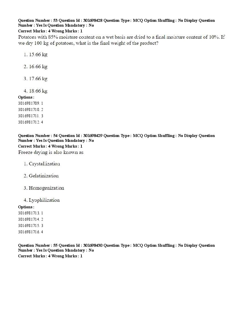 2026 Question papers will be updated soon. The latest available complete cuet pg question paper for Food Engineering and Technology is given below.