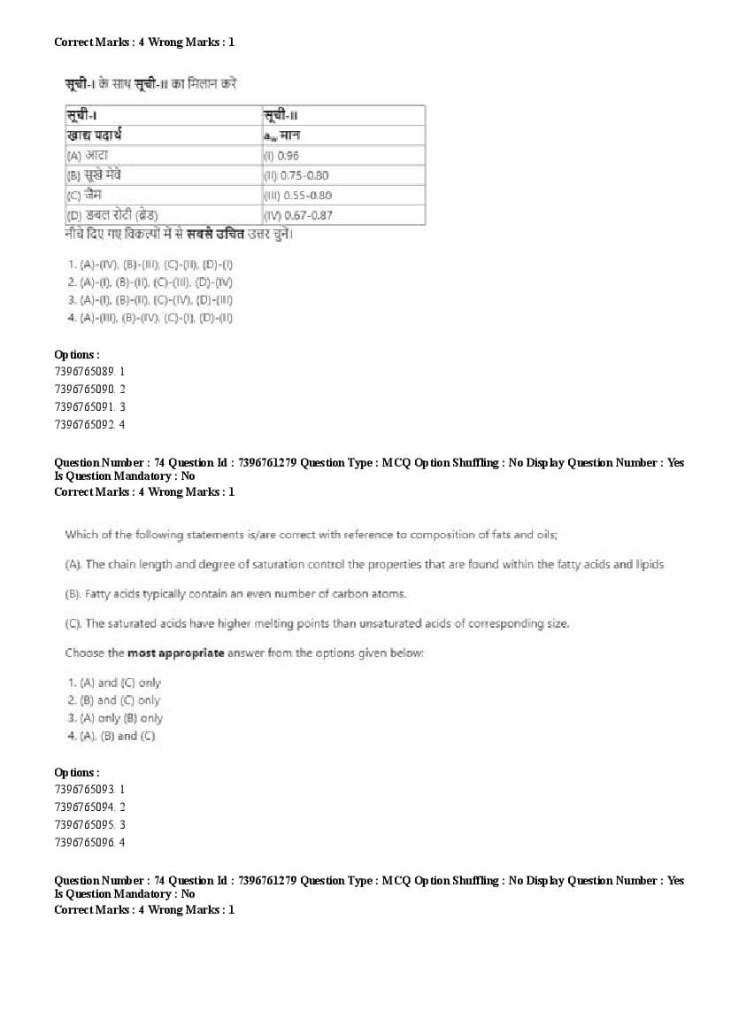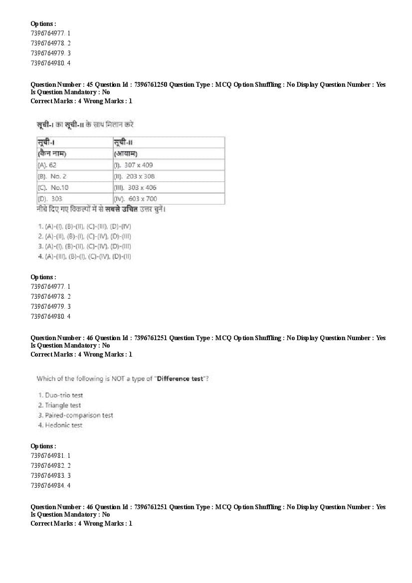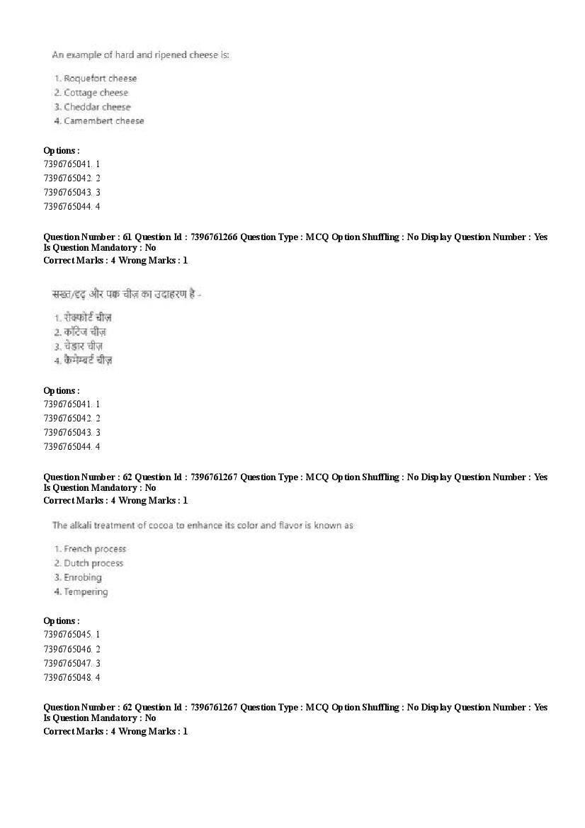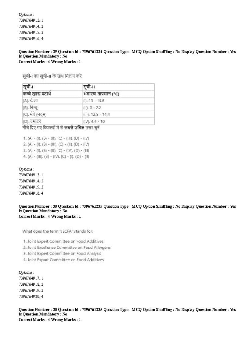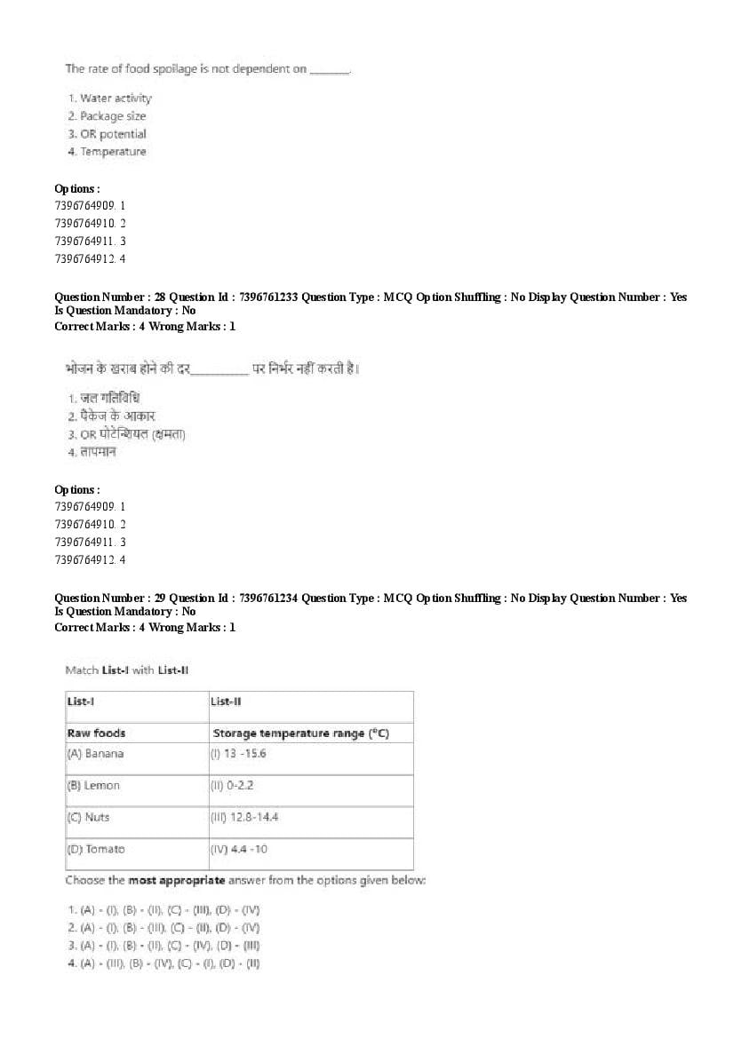 2026 Question papers will be updated soon. The latest available complete cuet pg question paper for Food Science and Technology is given below.