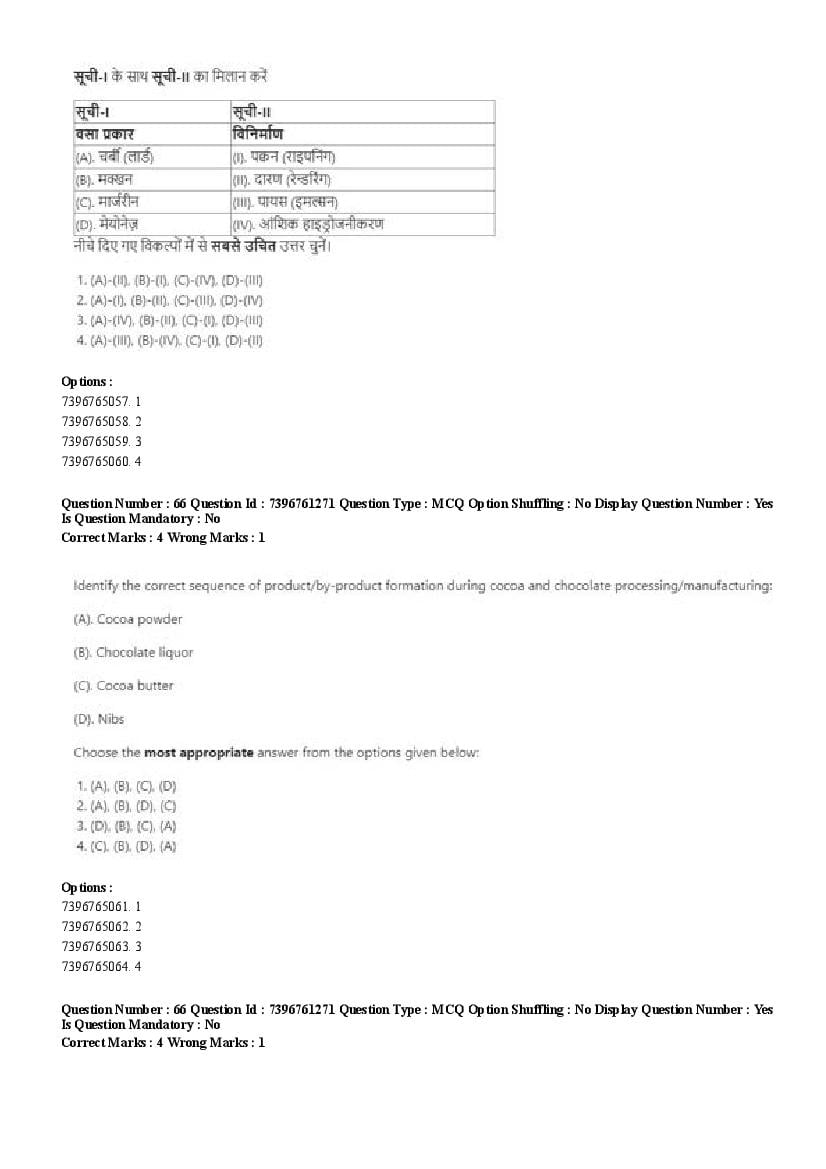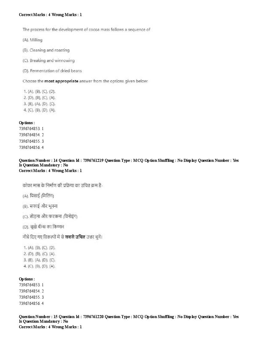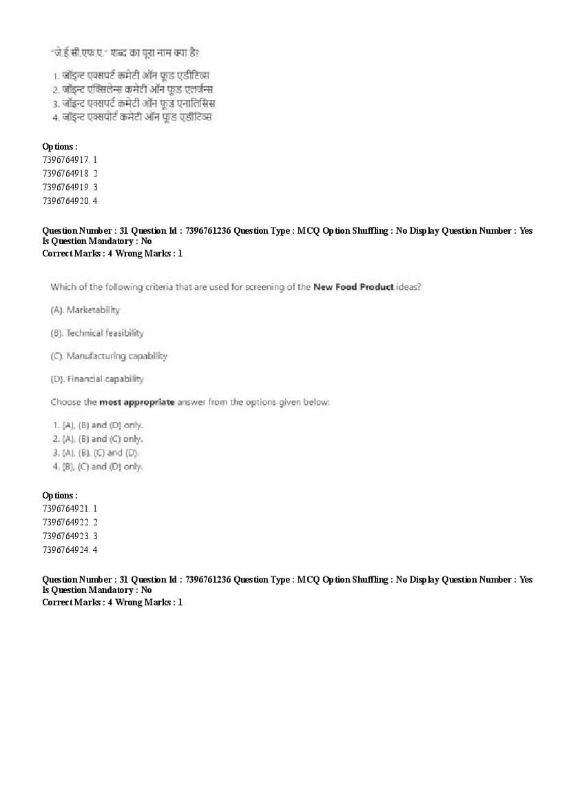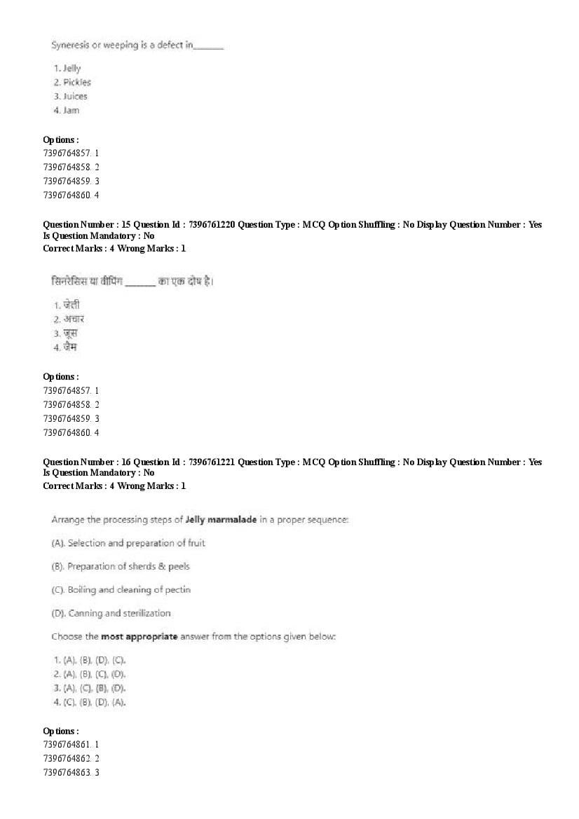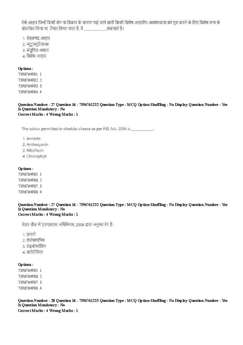 2026 Question papers will be updated soon. The latest available complete cuet pg question paper for Food Science and Technology is given below.