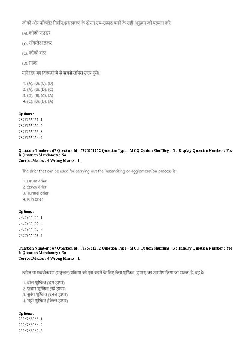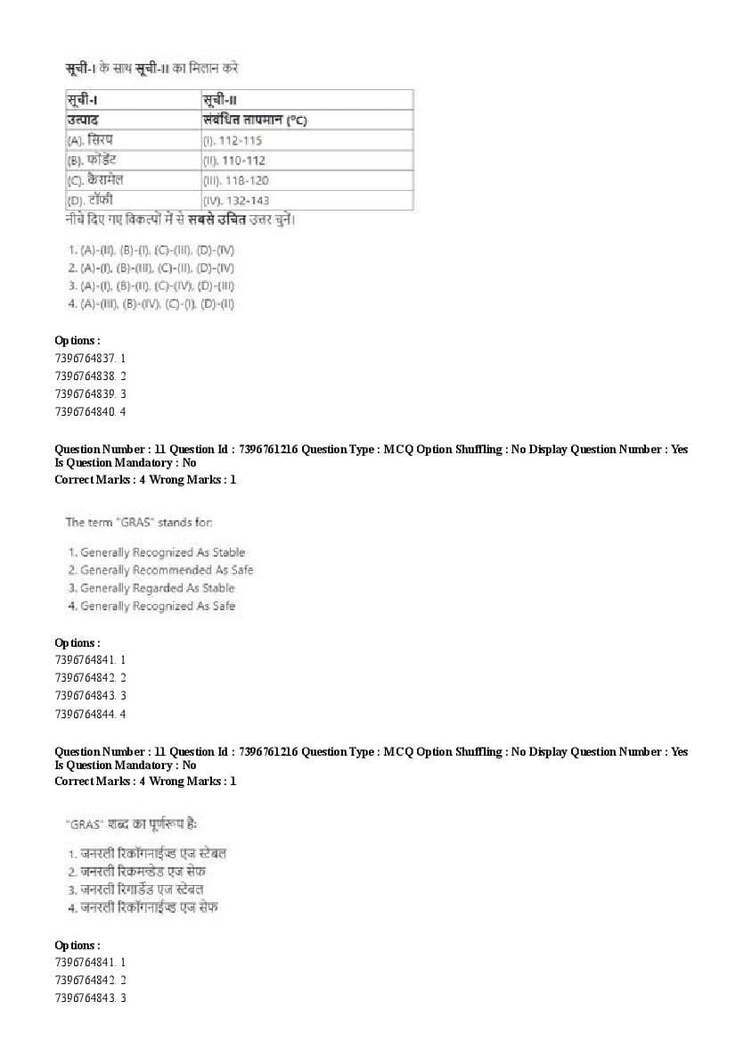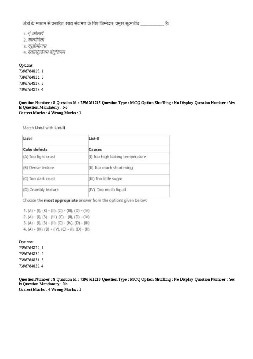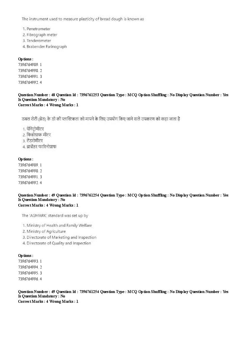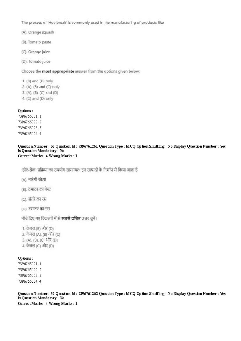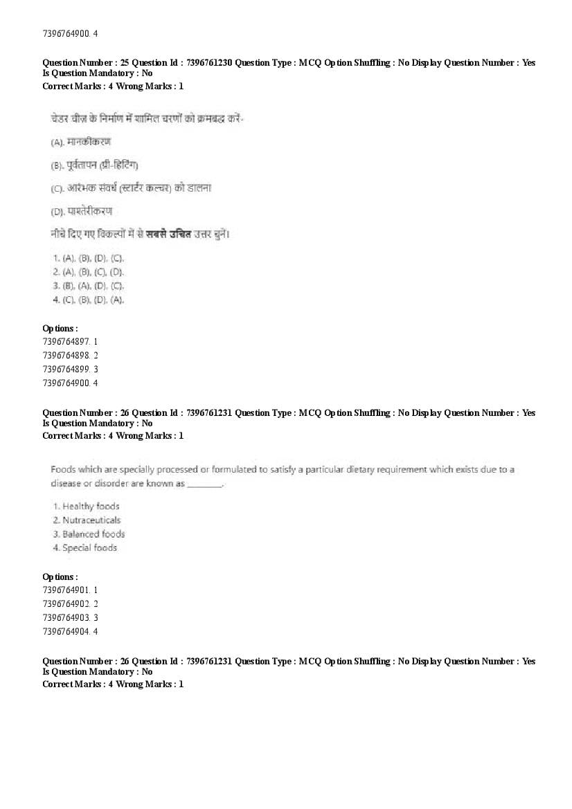 2026 Question papers will be updated soon. The latest available complete cuet pg question paper for Food Science and Technology is given below.
