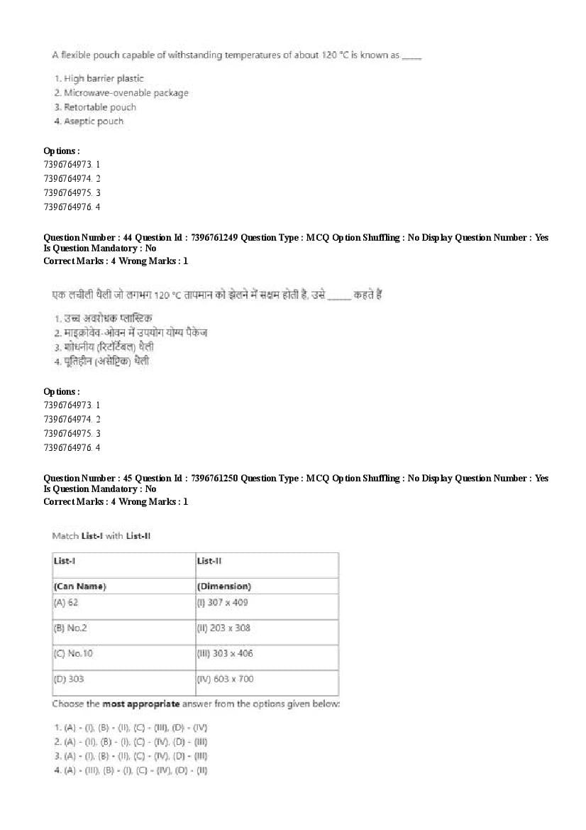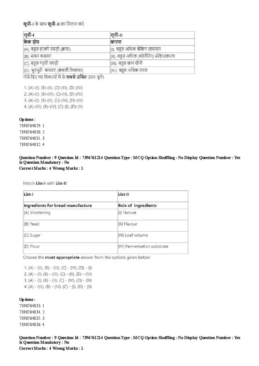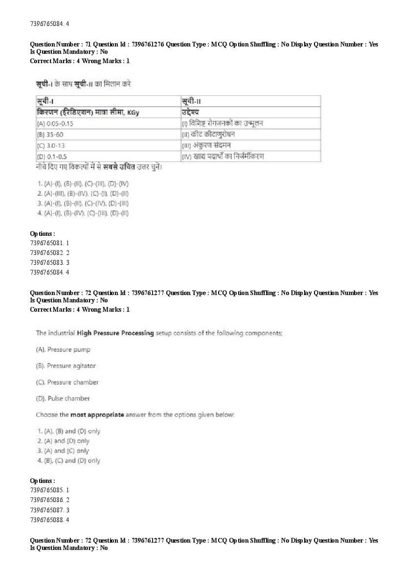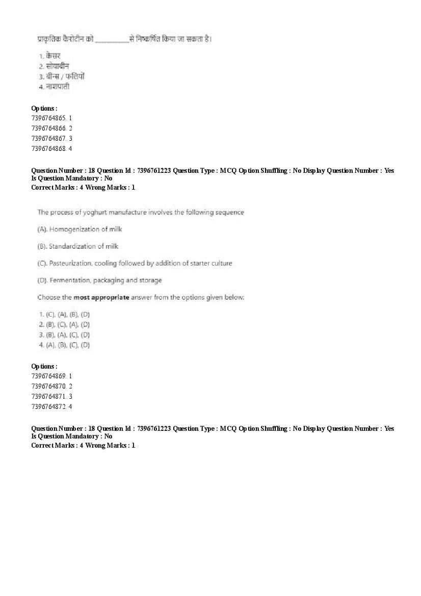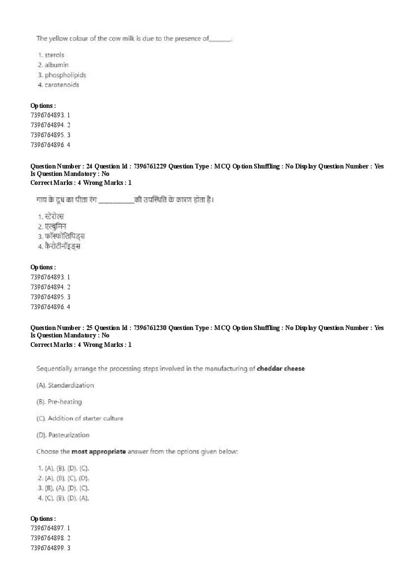 2026 Question papers will be updated soon. The latest available complete cuet pg question paper for Food Science and Technology is given below.
