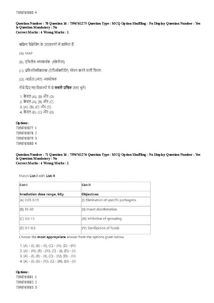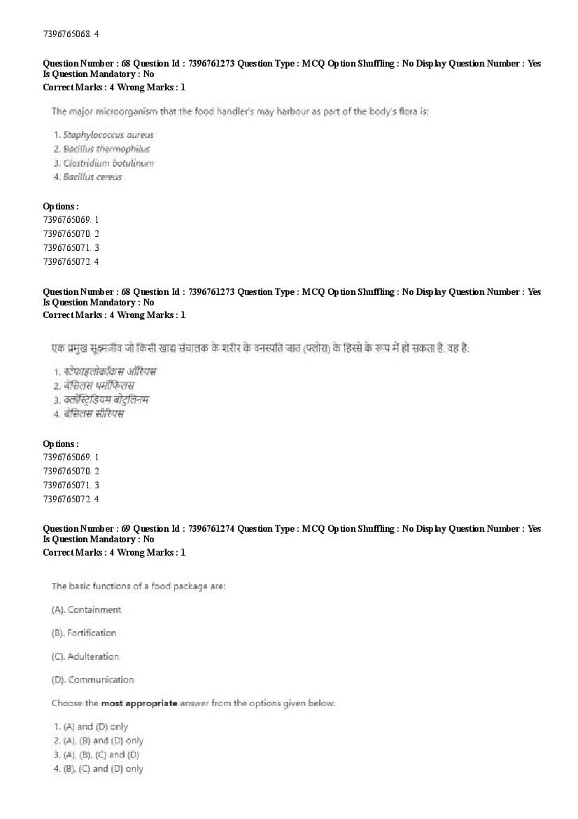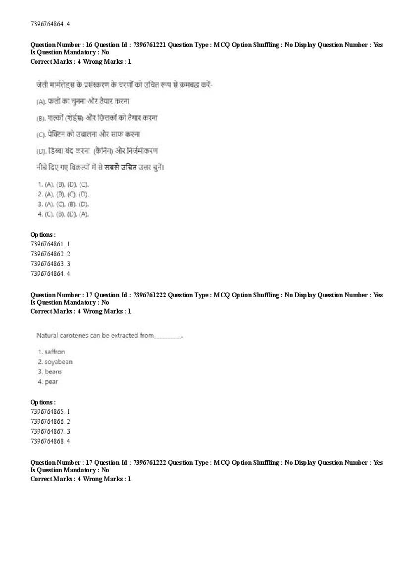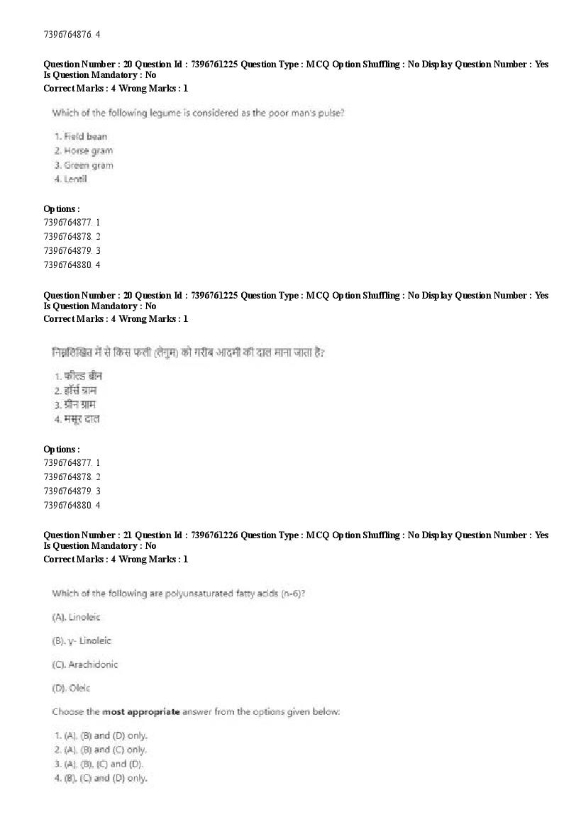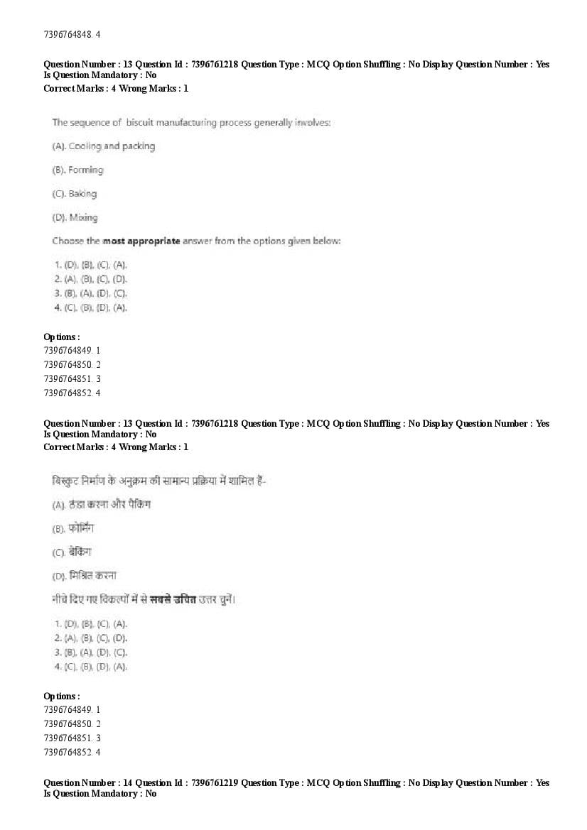 2026 Question papers will be updated soon. The latest available complete cuet pg question paper for Food Science and Technology is given below.