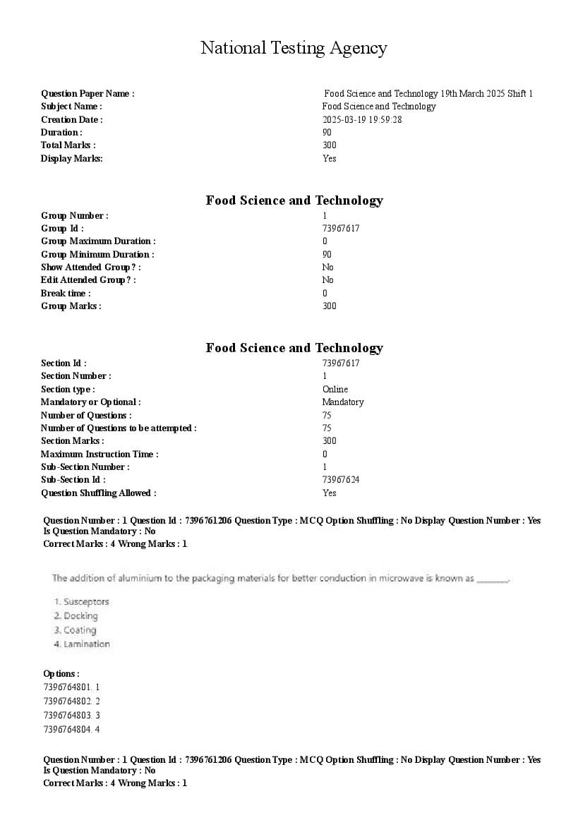 CUET PG Food Science and Technology Question Paper 2026 has been released. You can now download the CUET PG Food Science and Technology Previous Year Question Paper PDF here from aglasem. This CUET PG 2025 question paper is for the subject paper Food Science and Technology and contains the exact questions asked in the test. You can use it to practice for upcoming NTA Common University Entrance Test for Post Graduate for the Food Science and Technology test.