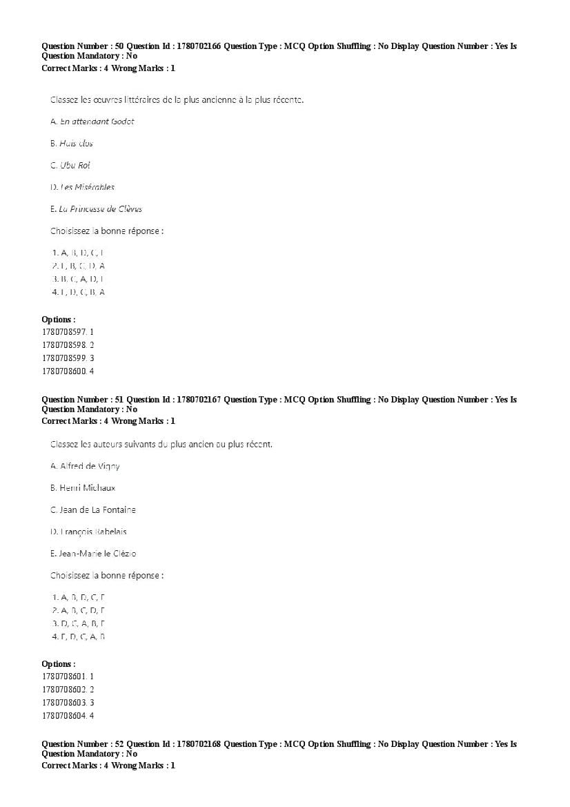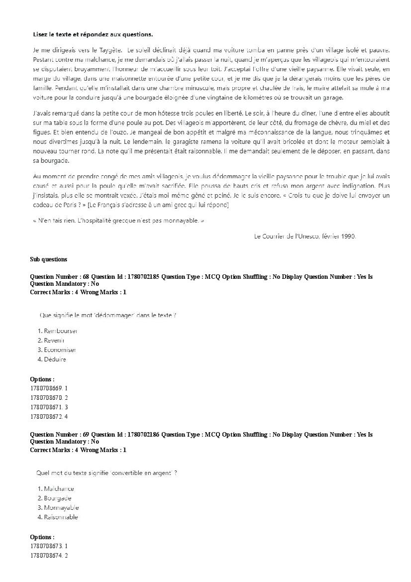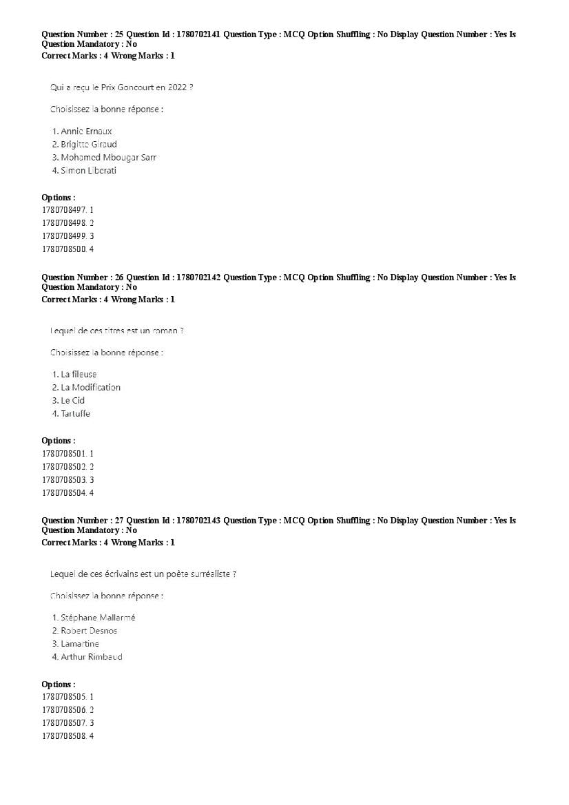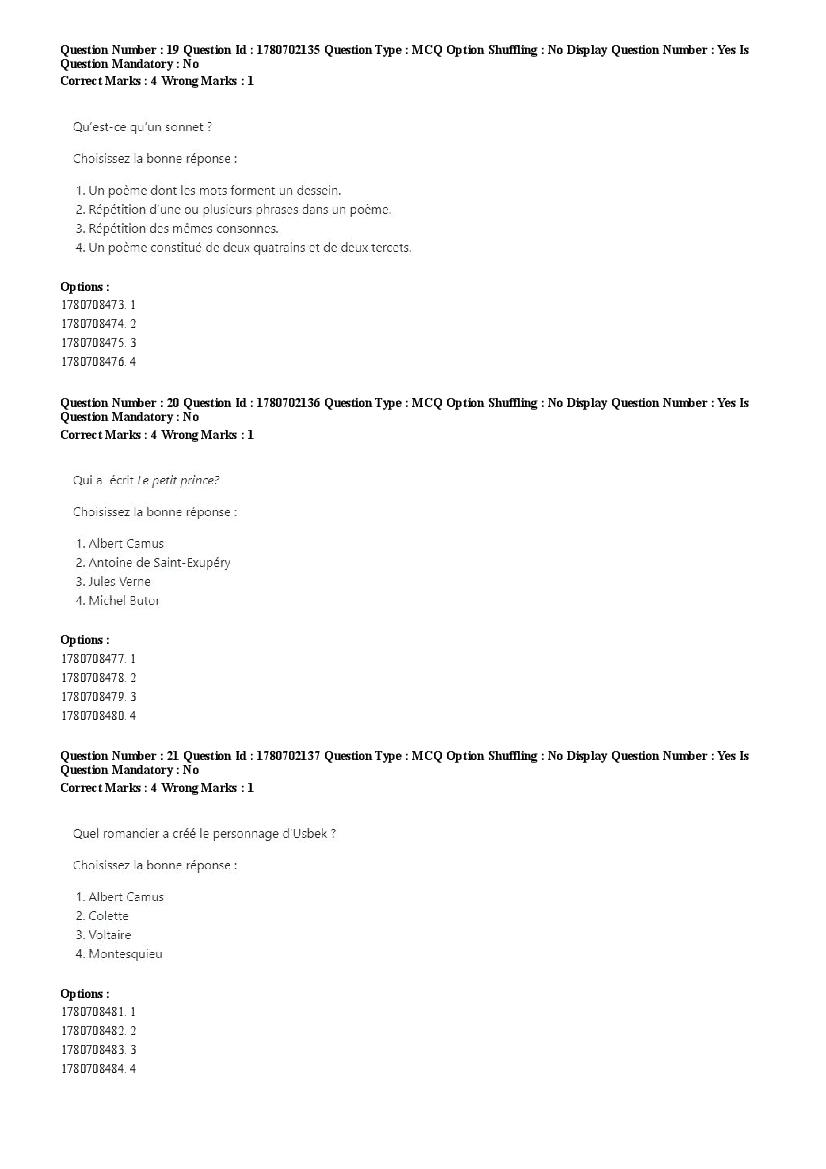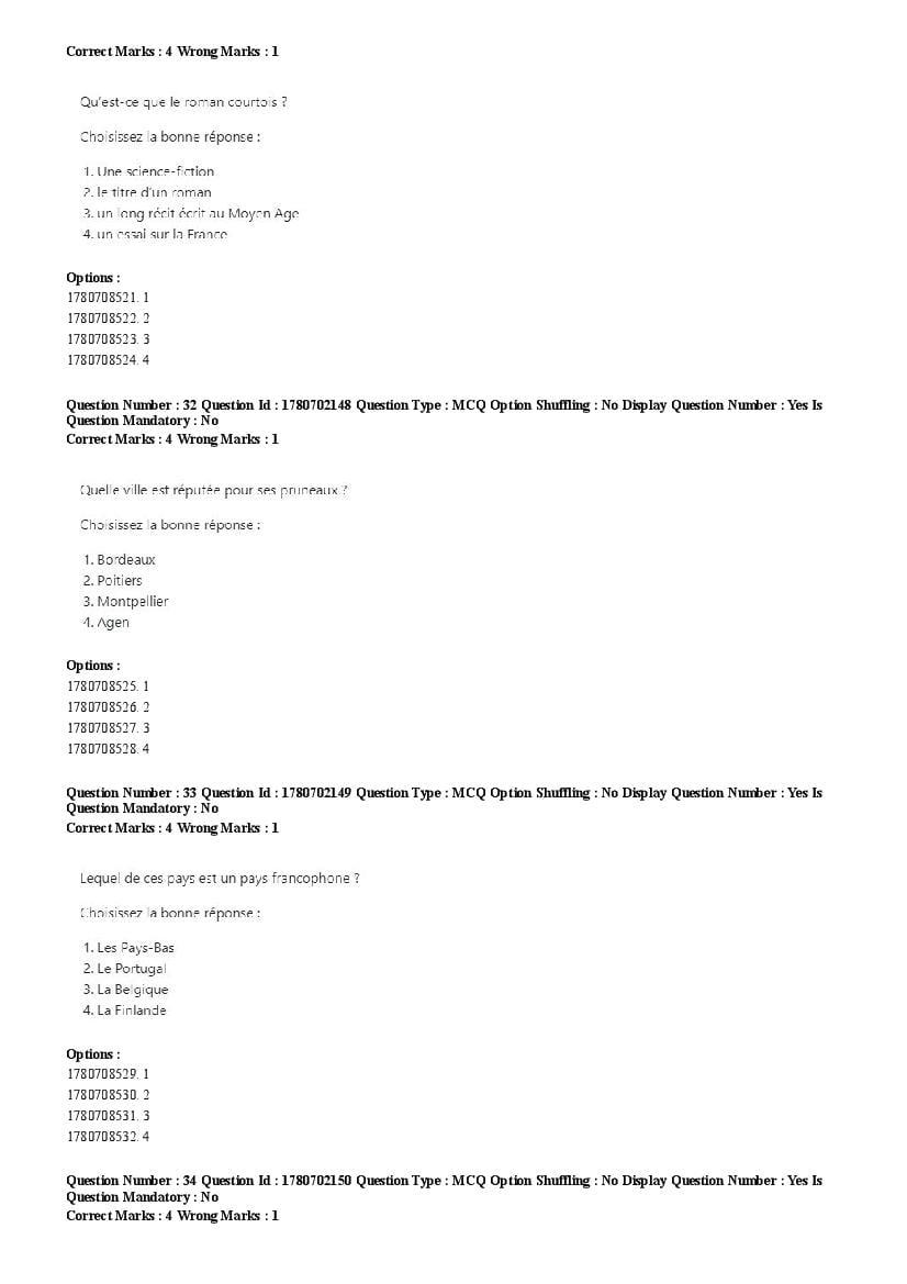 2026 Question papers will be updated soon. The latest available complete cuet pg question paper for French is given below.