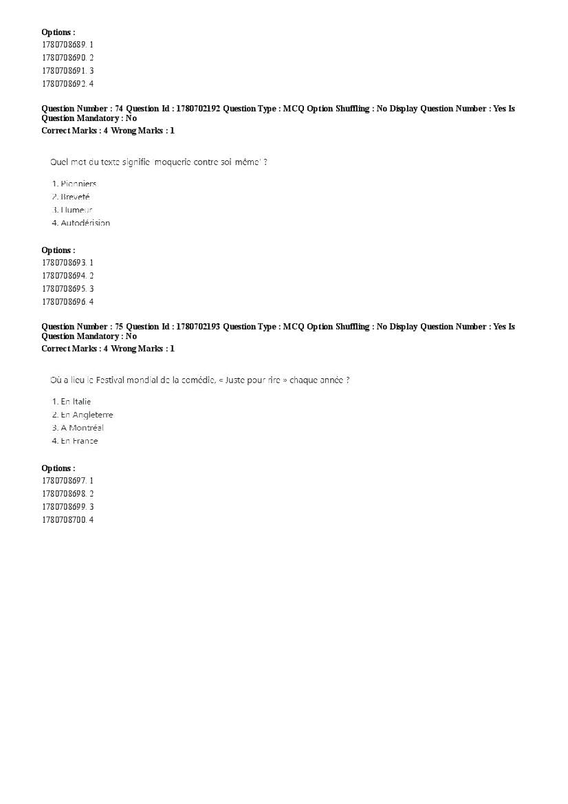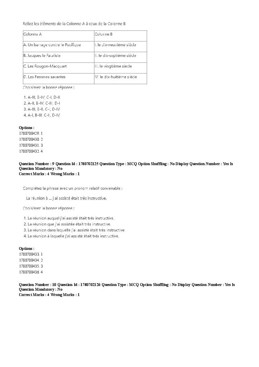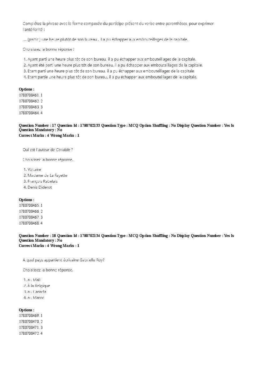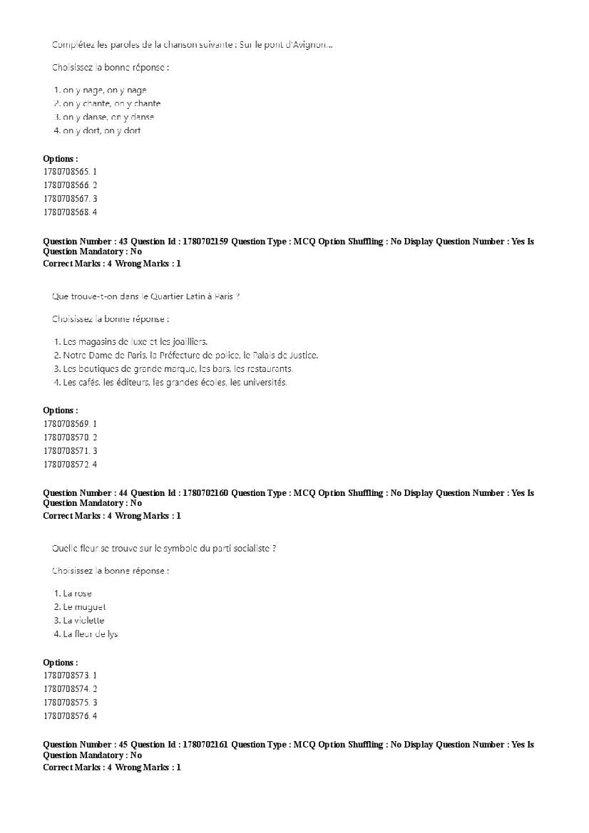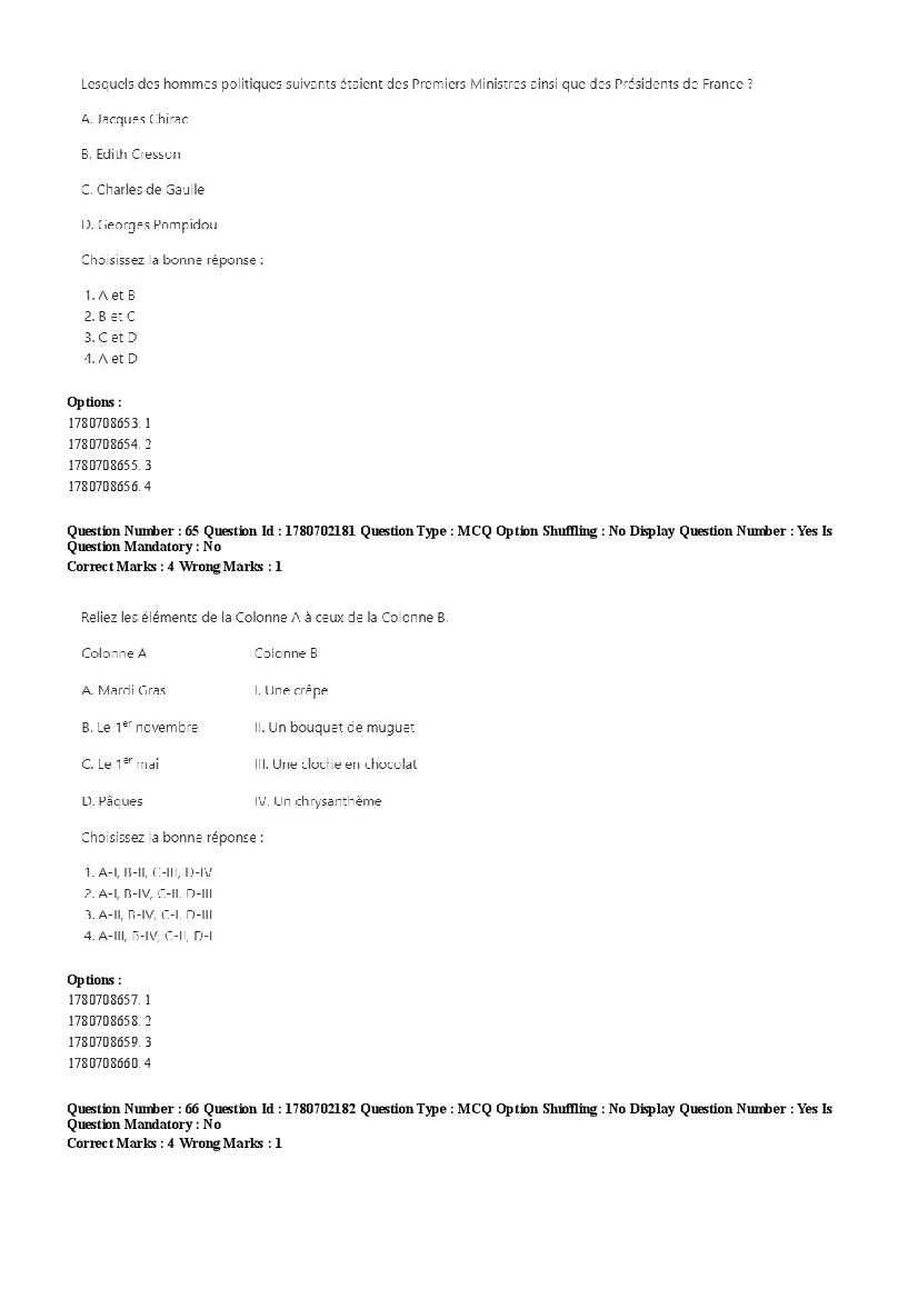 2026 Question papers will be updated soon. The latest available complete cuet pg question paper for French is given below.