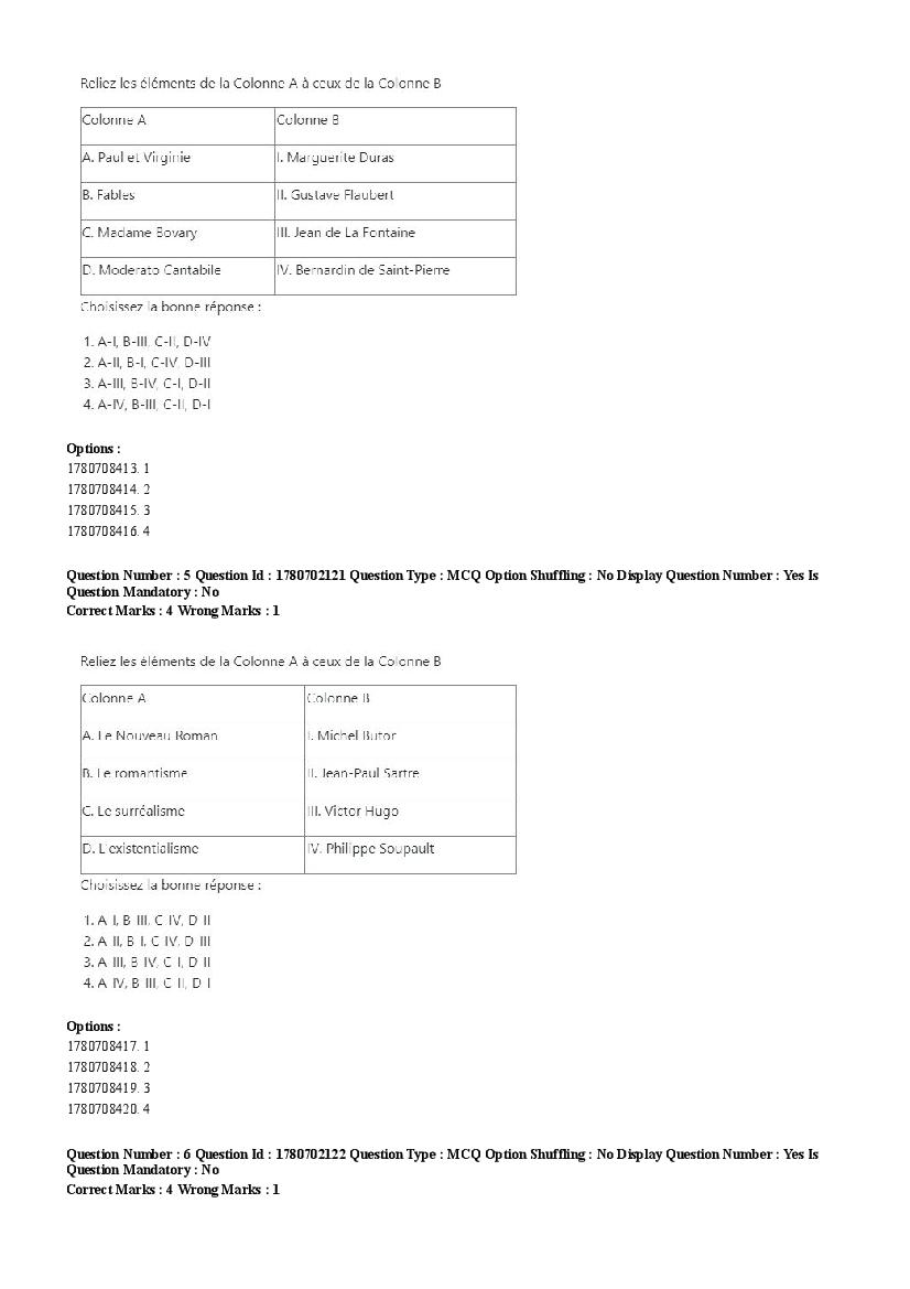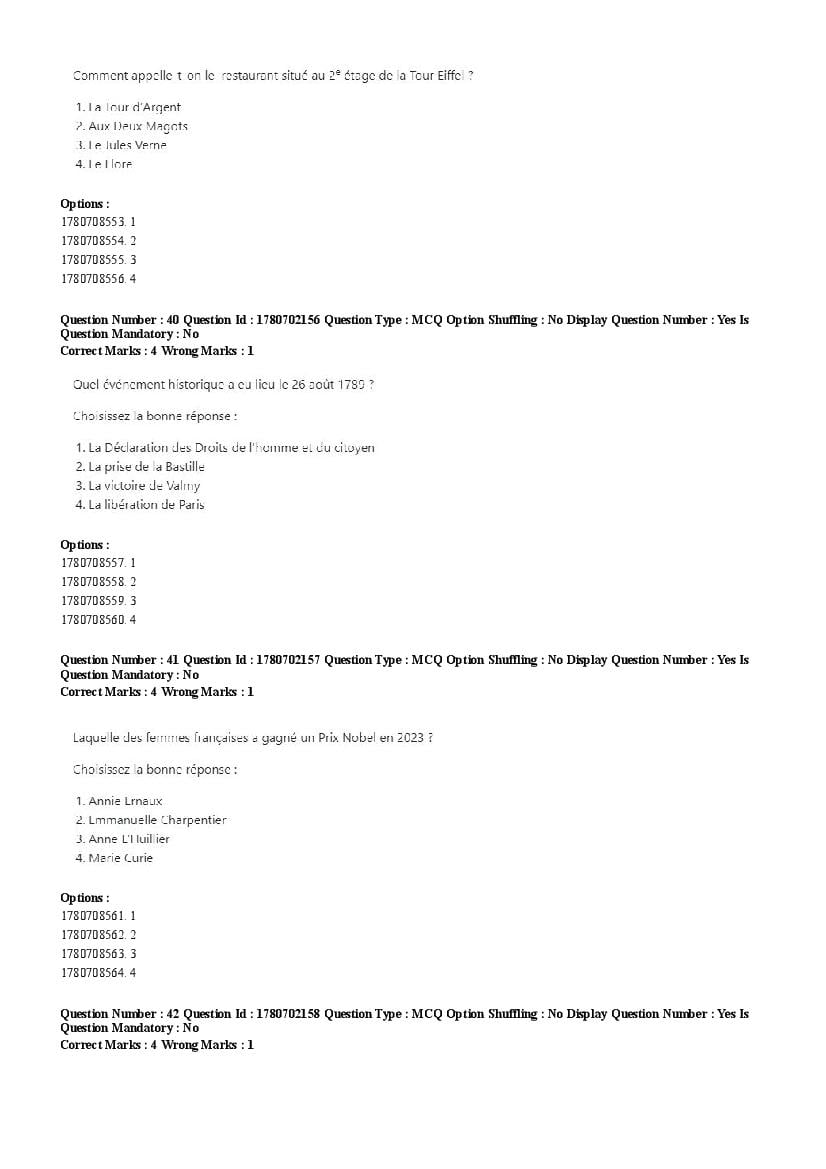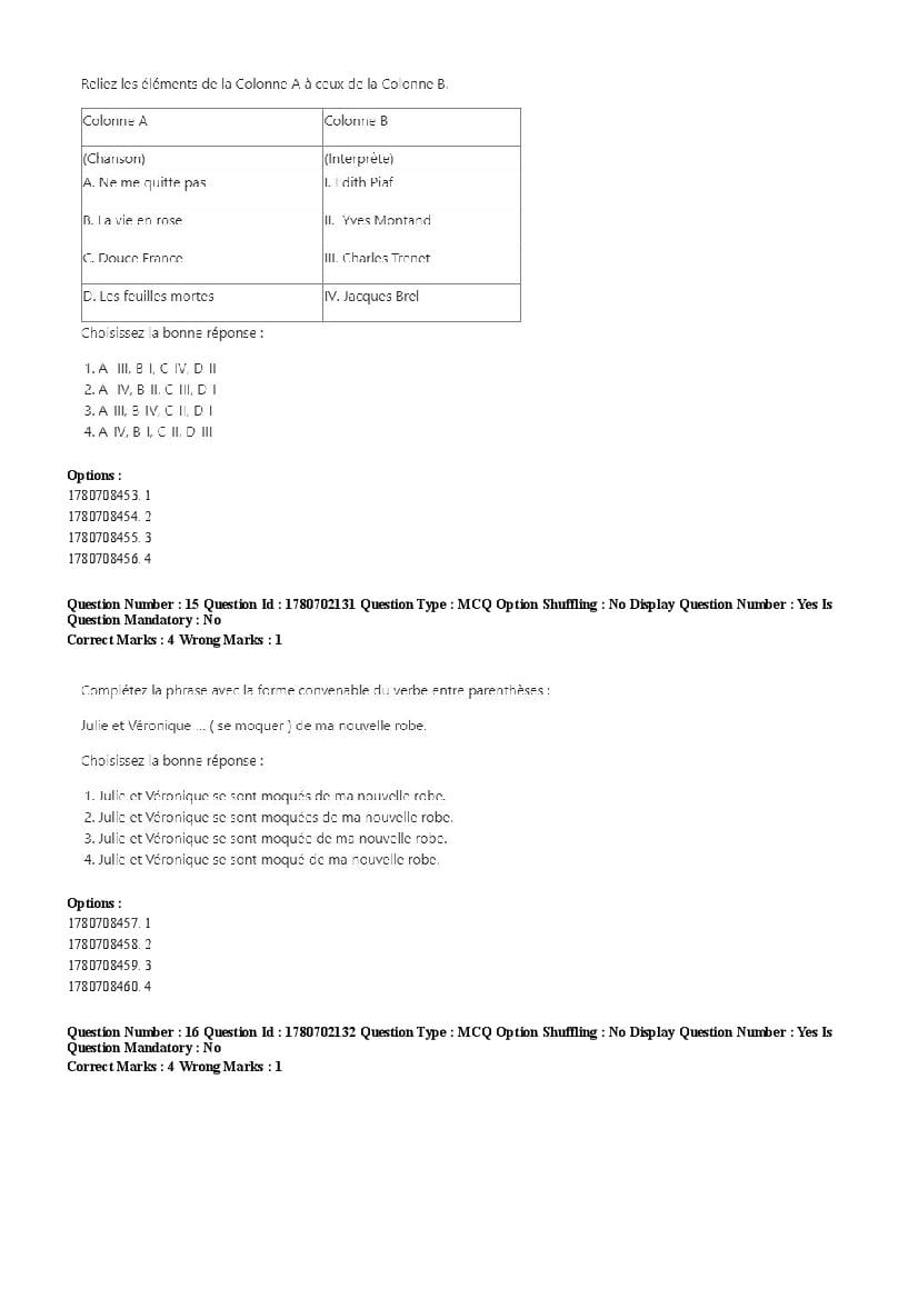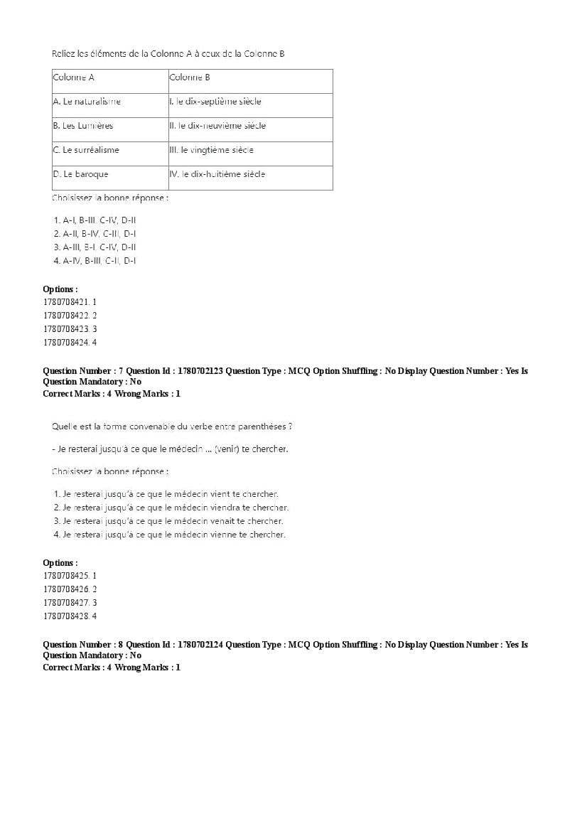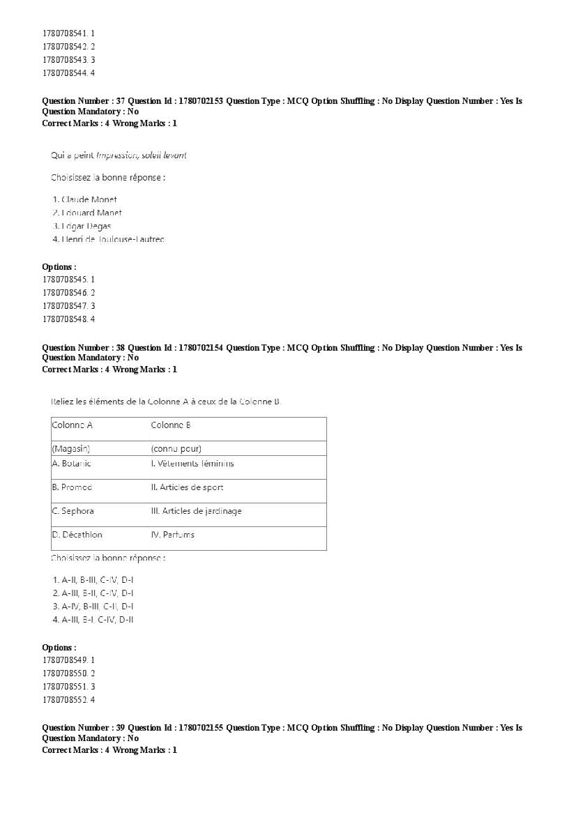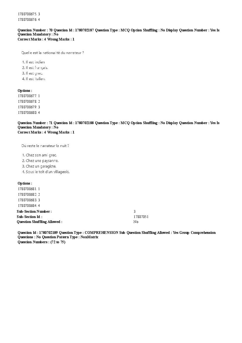 2026 Question papers will be updated soon. The latest available complete cuet pg question paper for French is given below.