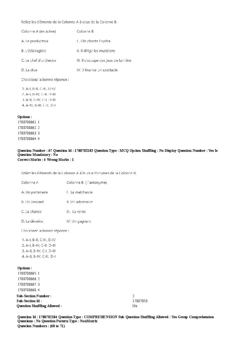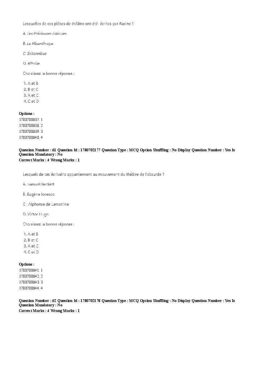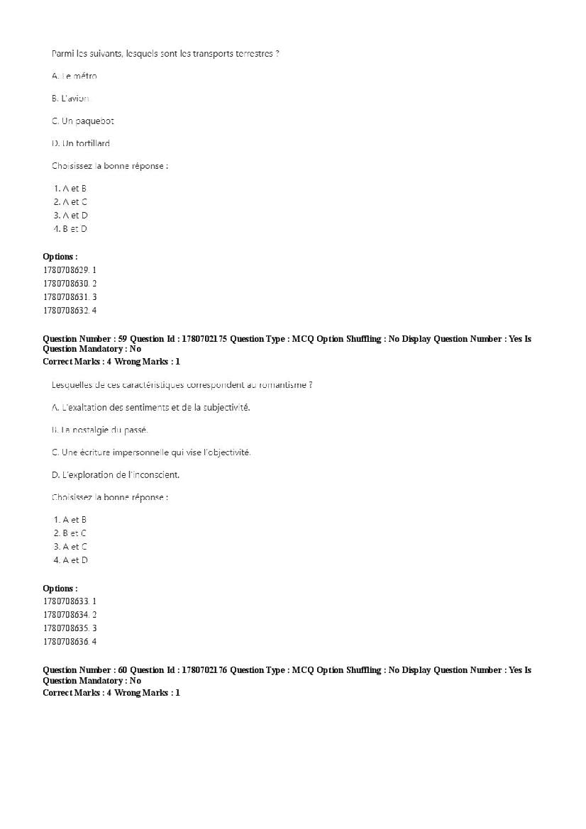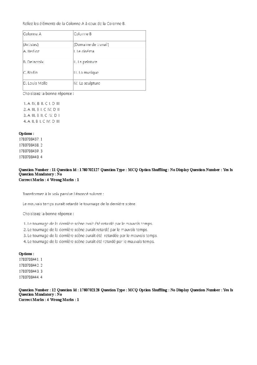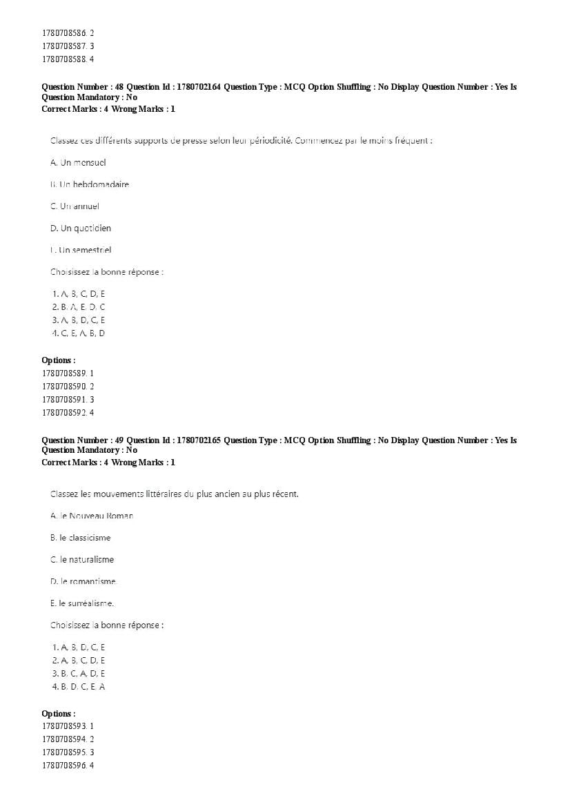 2026 Question papers will be updated soon. The latest available complete cuet pg question paper for French is given below.