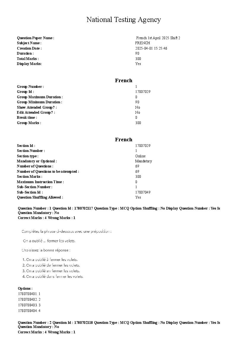 CUET PG French Question Paper 2026 has been released. You can now download the CUET PG French Previous Year Question Paper PDF here from aglasem. This CUET PG 2025 question paper is for the subject paper French and contains the exact questions asked in the test. You can use it to practice for upcoming NTA Common University Entrance Test for Post Graduate for the French test.