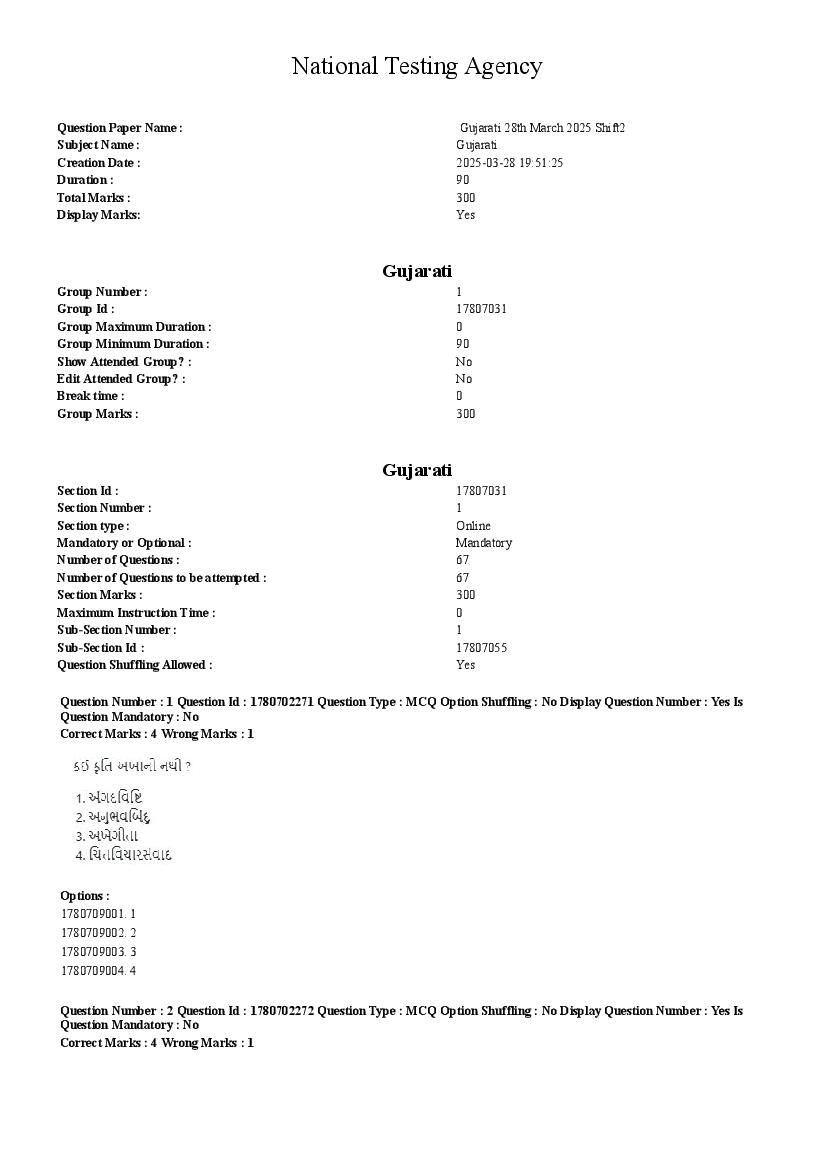2026 Question papers will be updated soon. The latest available complete cuet pg question paper for Gujarati is given below.