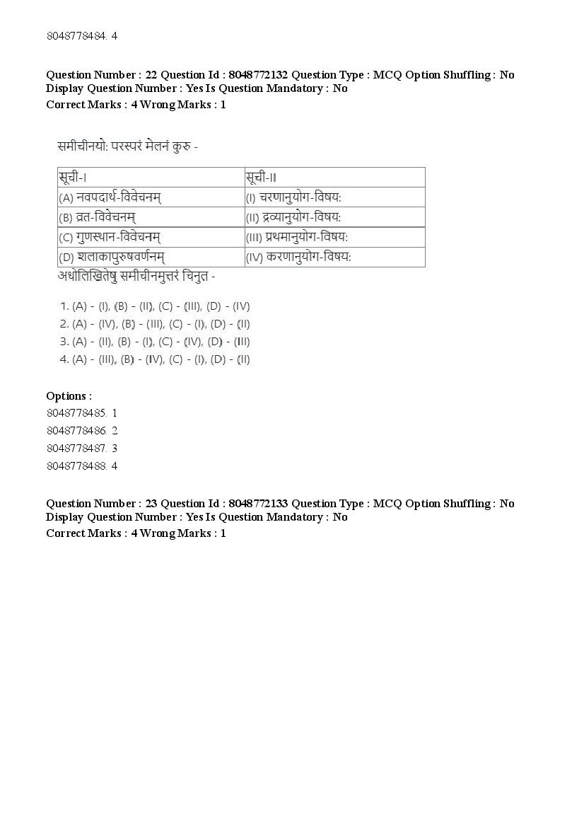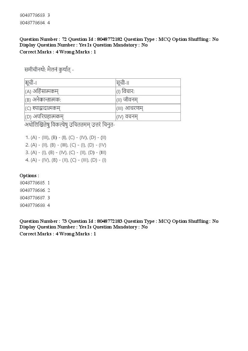 2026 Question papers will be updated soon. The latest available complete cuet pg question paper for Jain Darshan is given below.