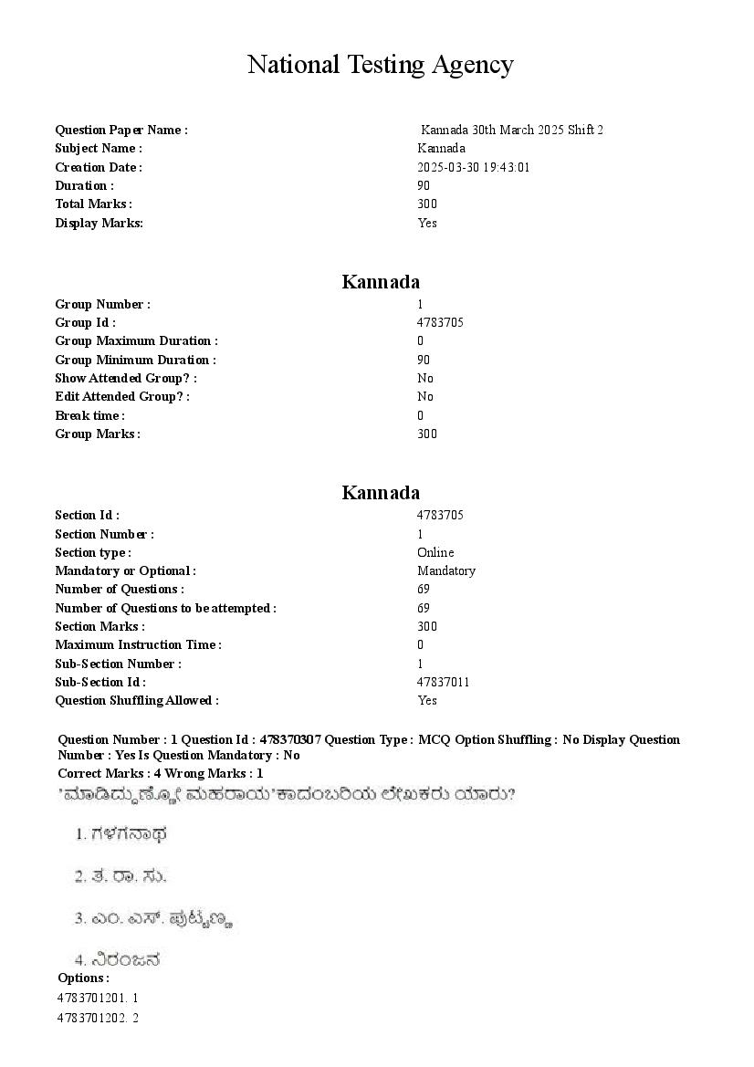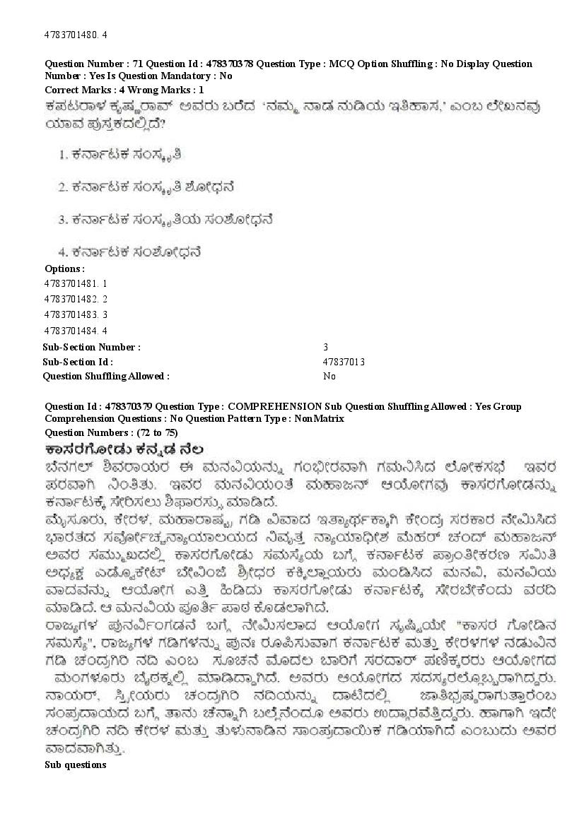 | Subject | Kannada |