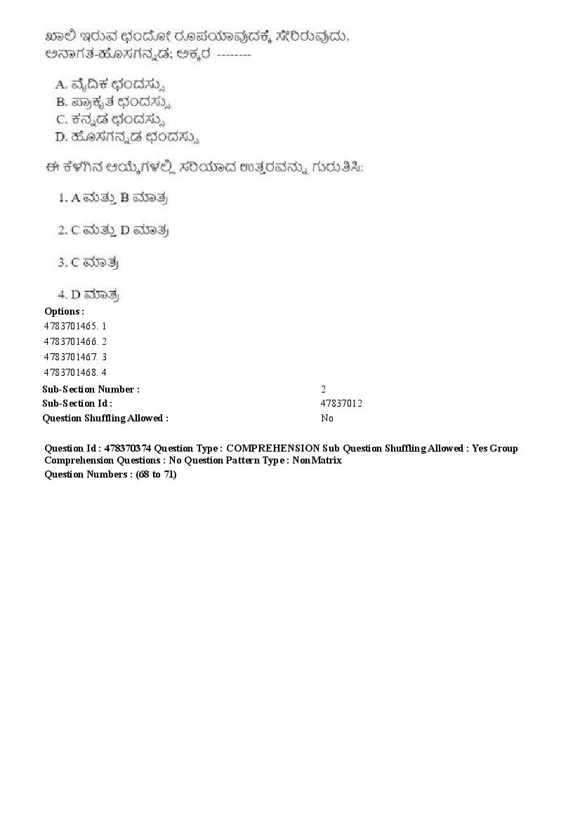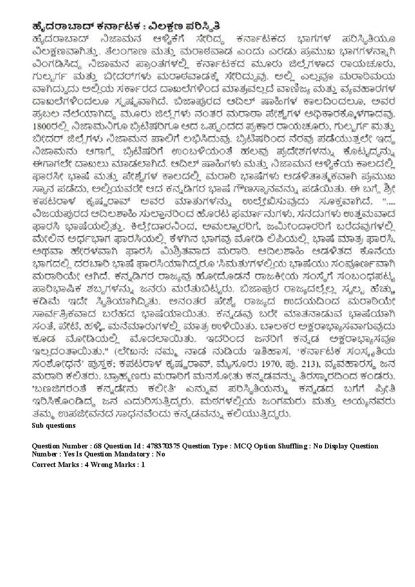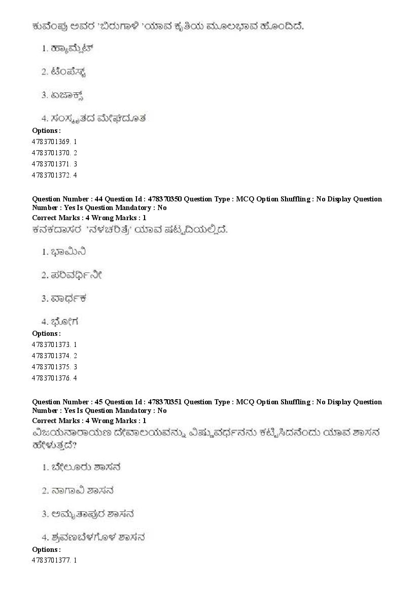 2026 Question papers will be updated soon. The latest available complete cuet pg question paper for Kannada is given below.