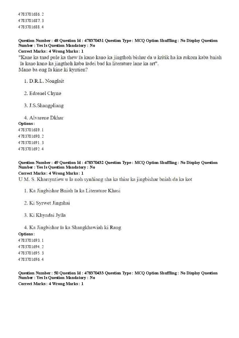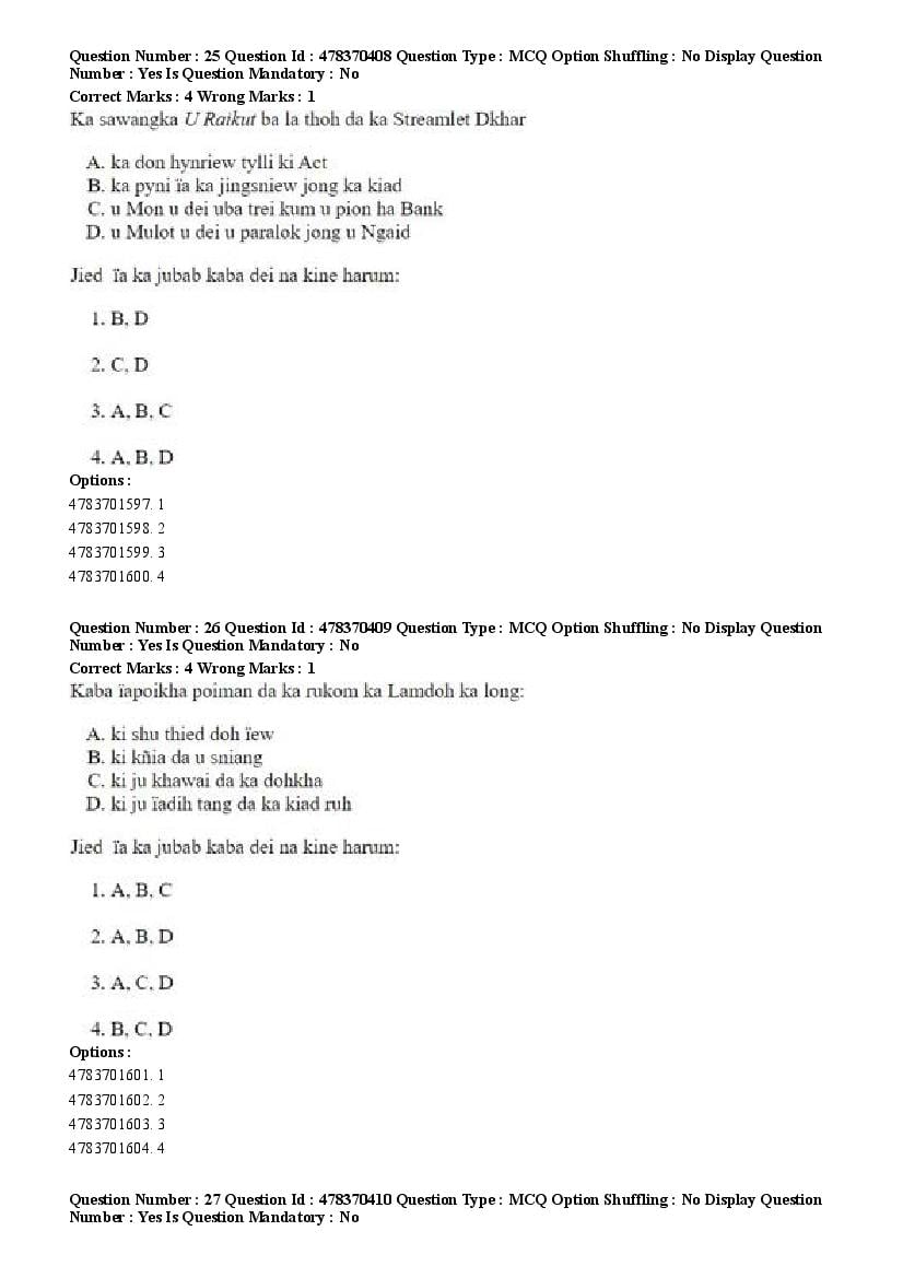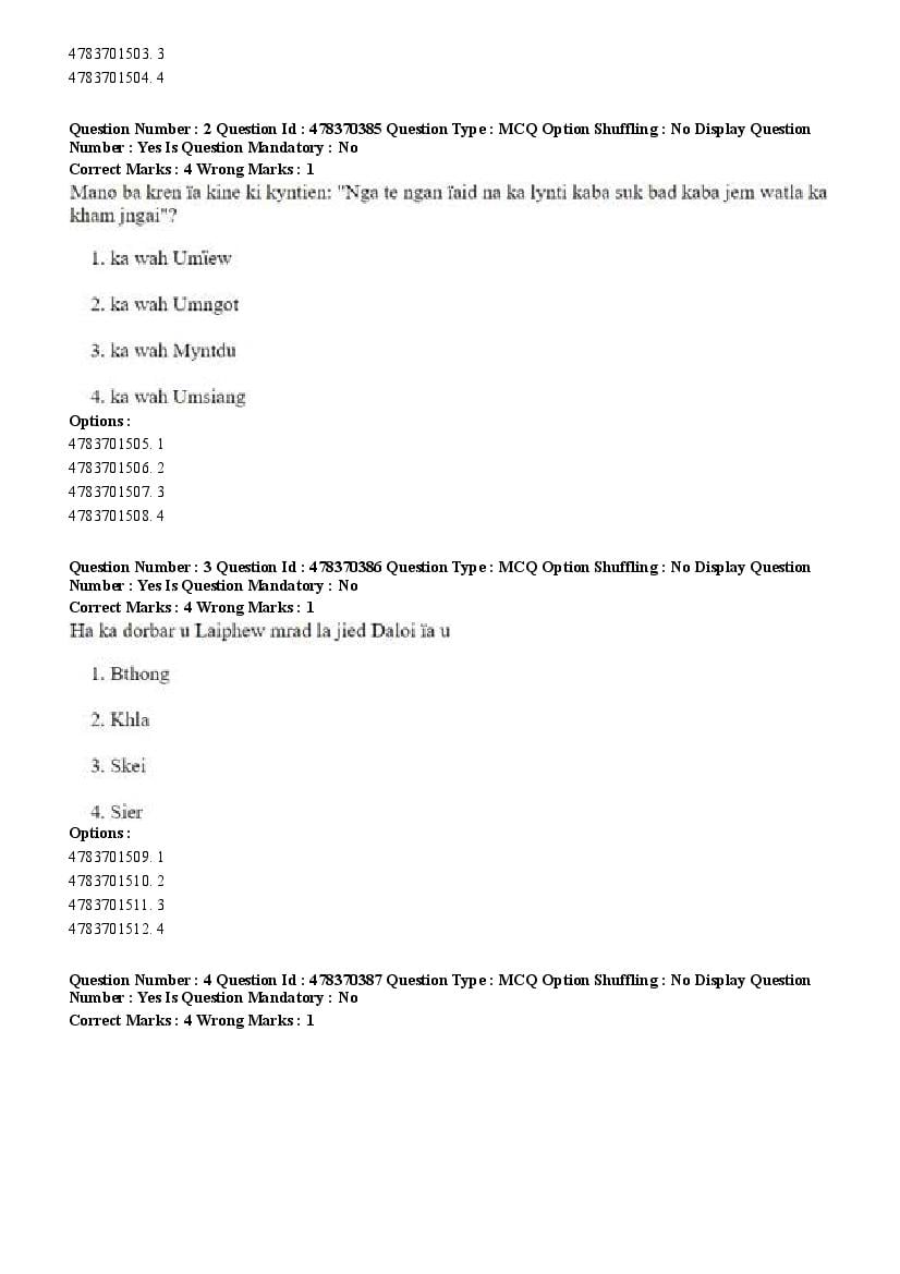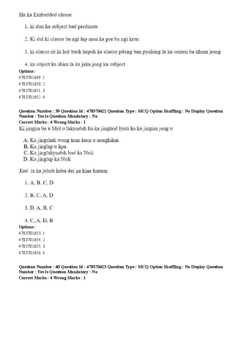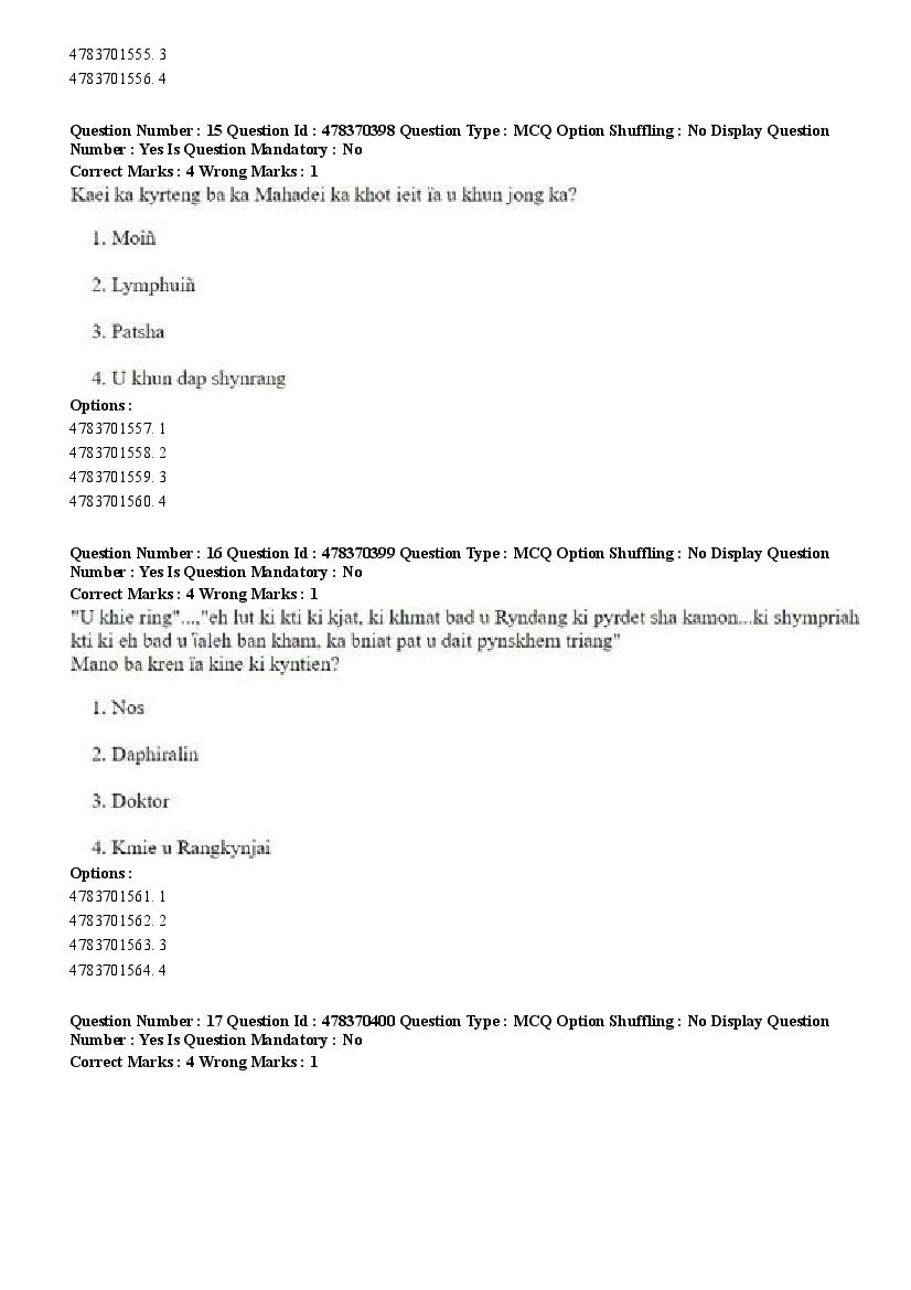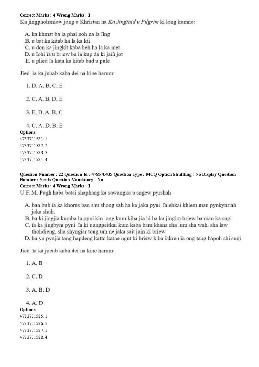 2026 Question papers will be updated soon. The latest available complete cuet pg question paper for Khasi is given below.