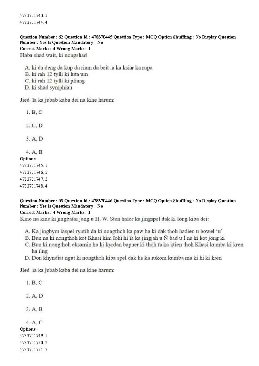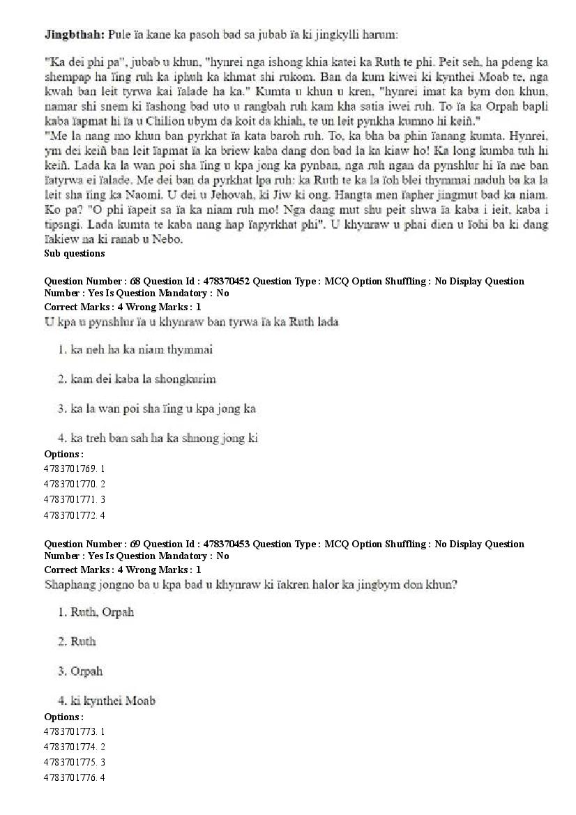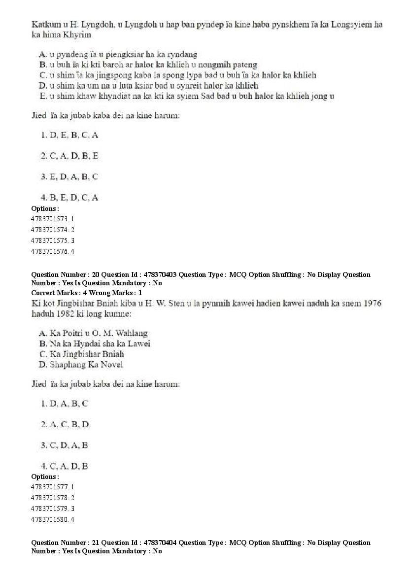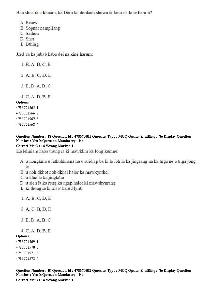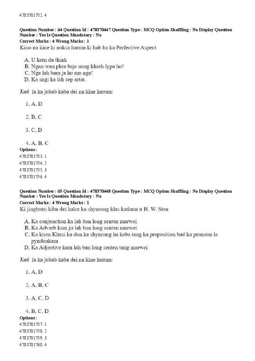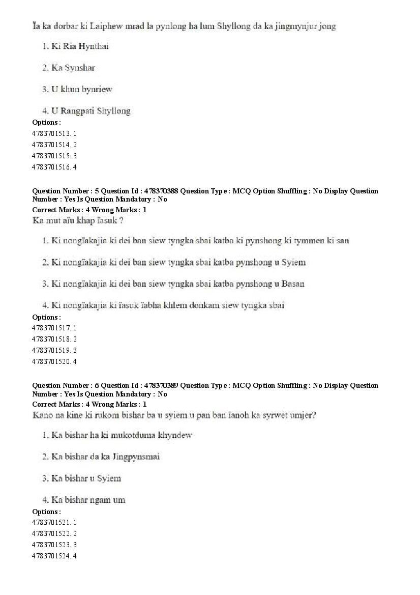 2026 Question papers will be updated soon. The latest available complete cuet pg question paper for Khasi is given below.