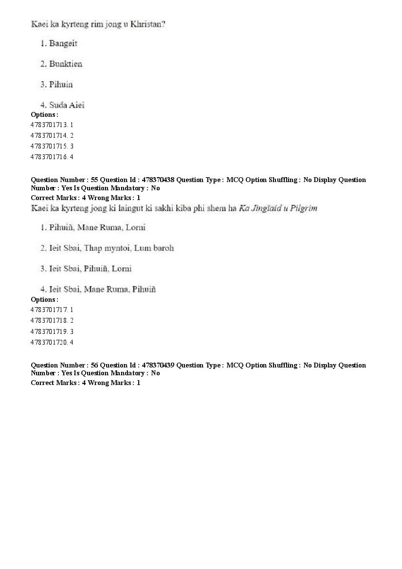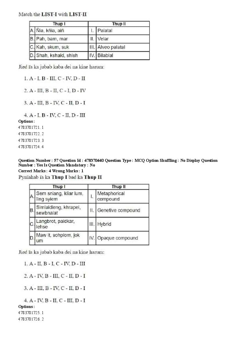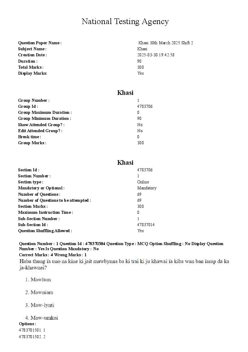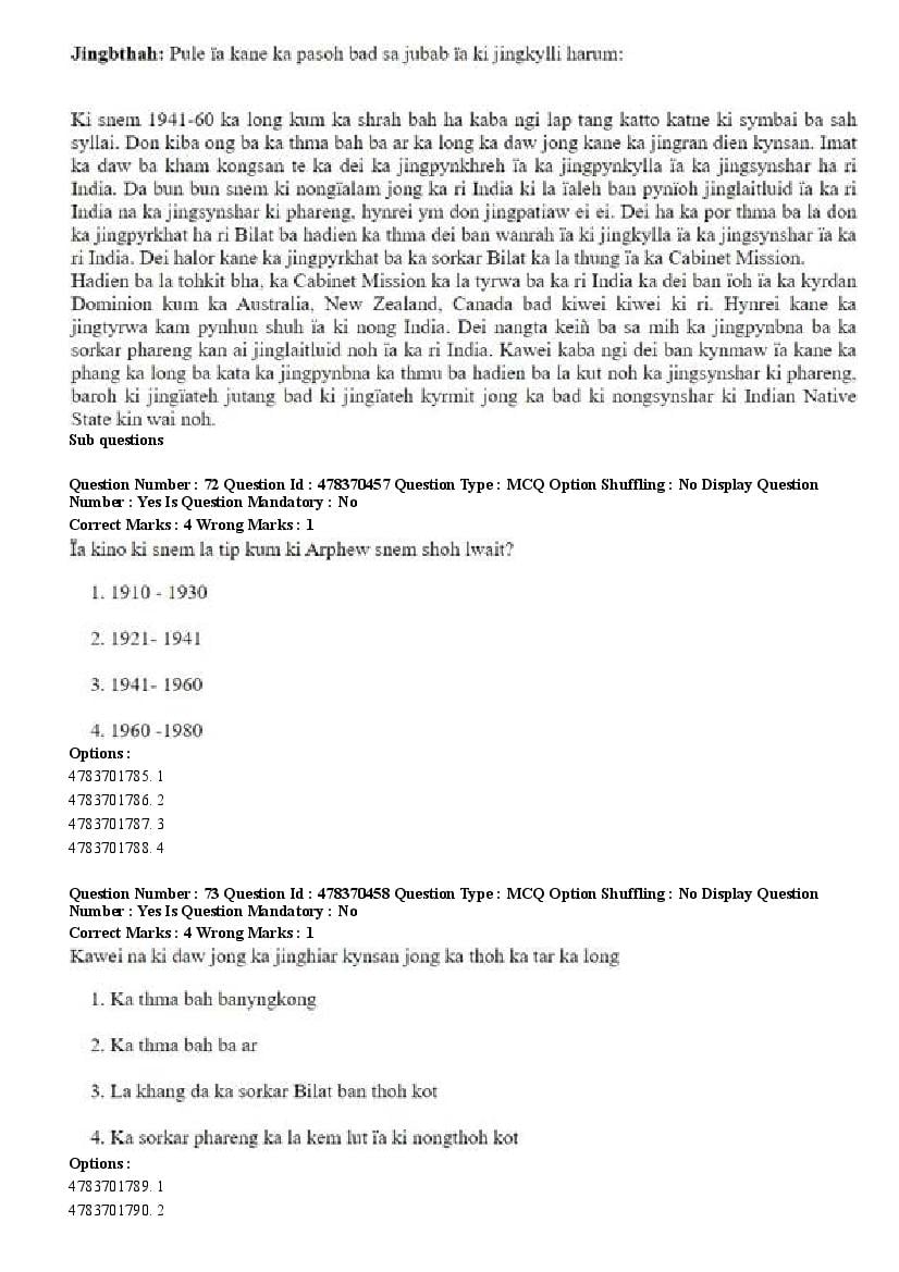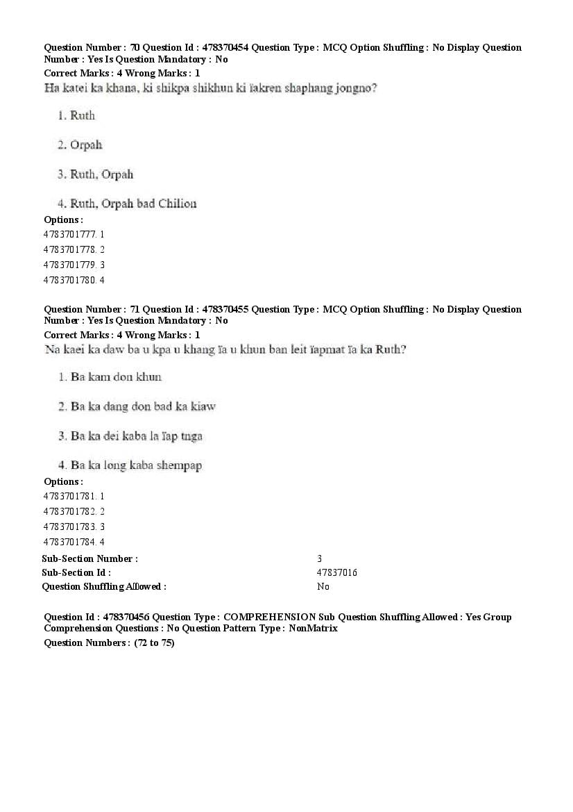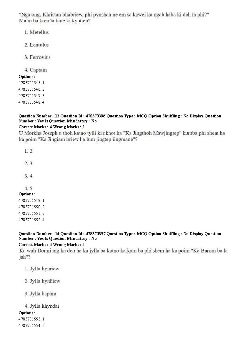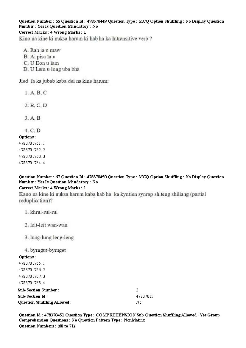 2026 Question papers will be updated soon. The latest available complete cuet pg question paper for Khasi is given below.
