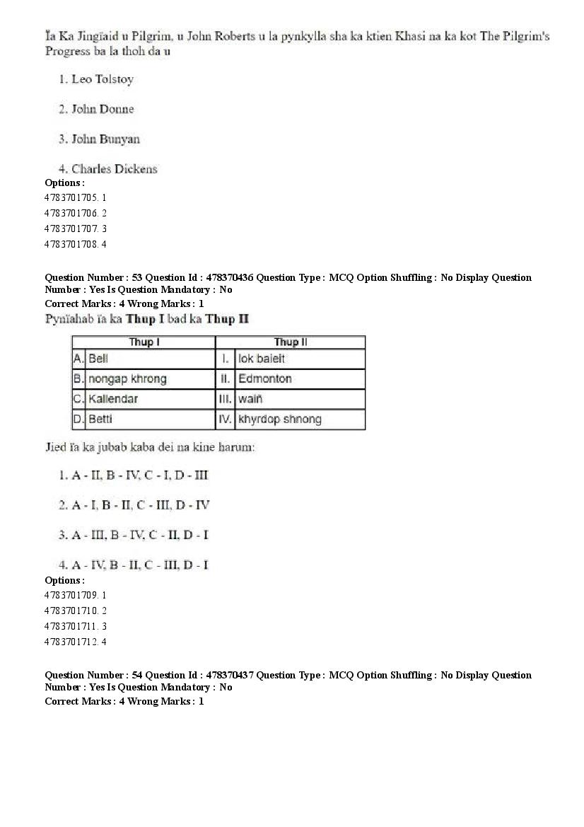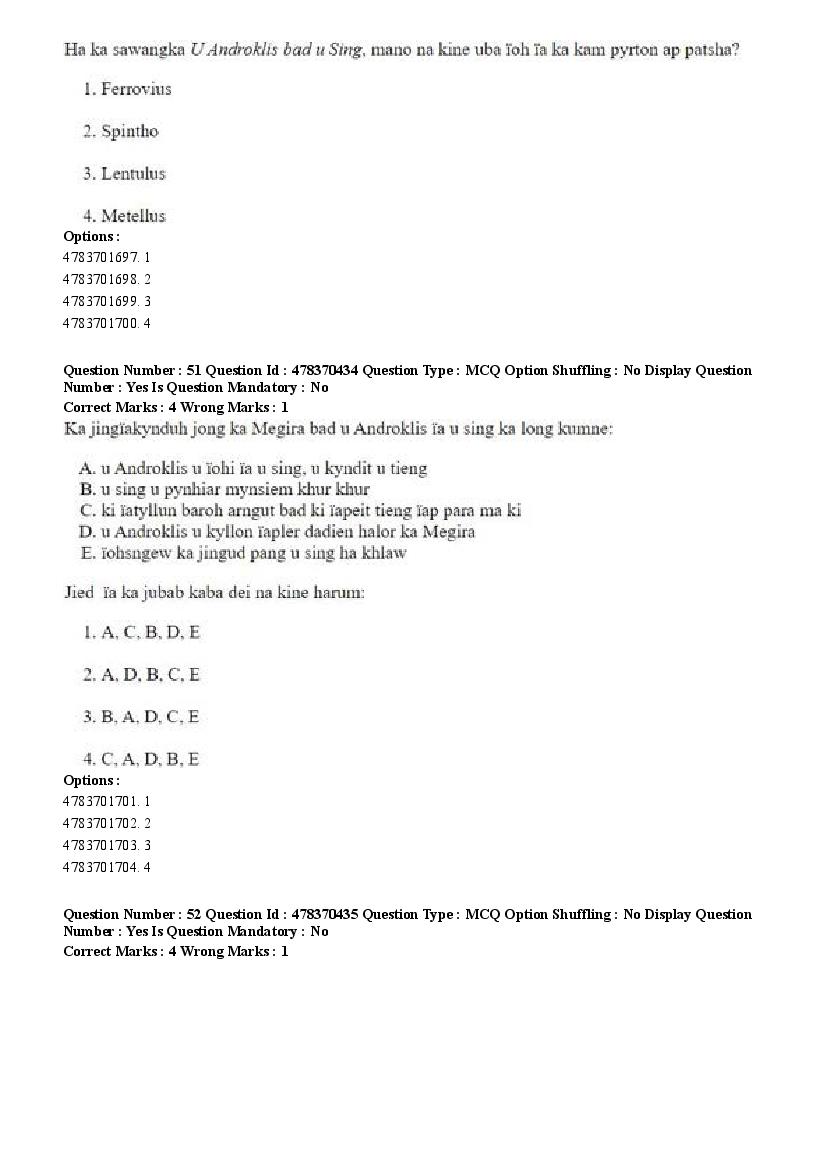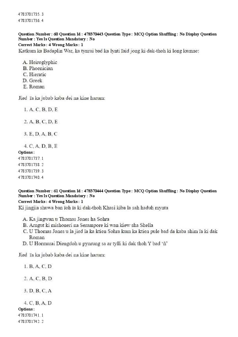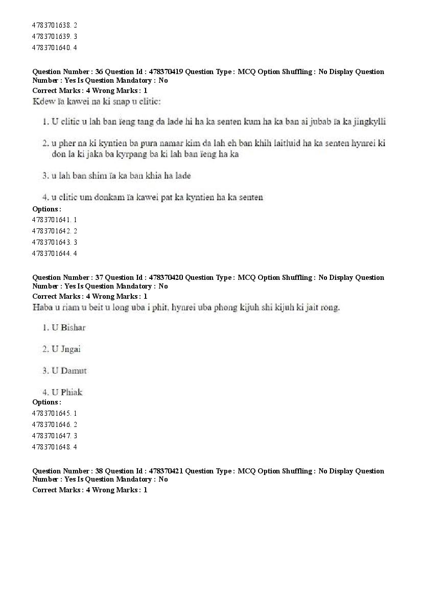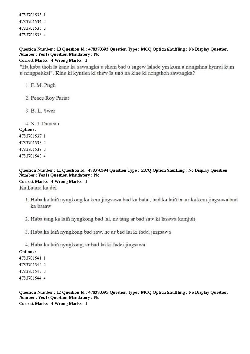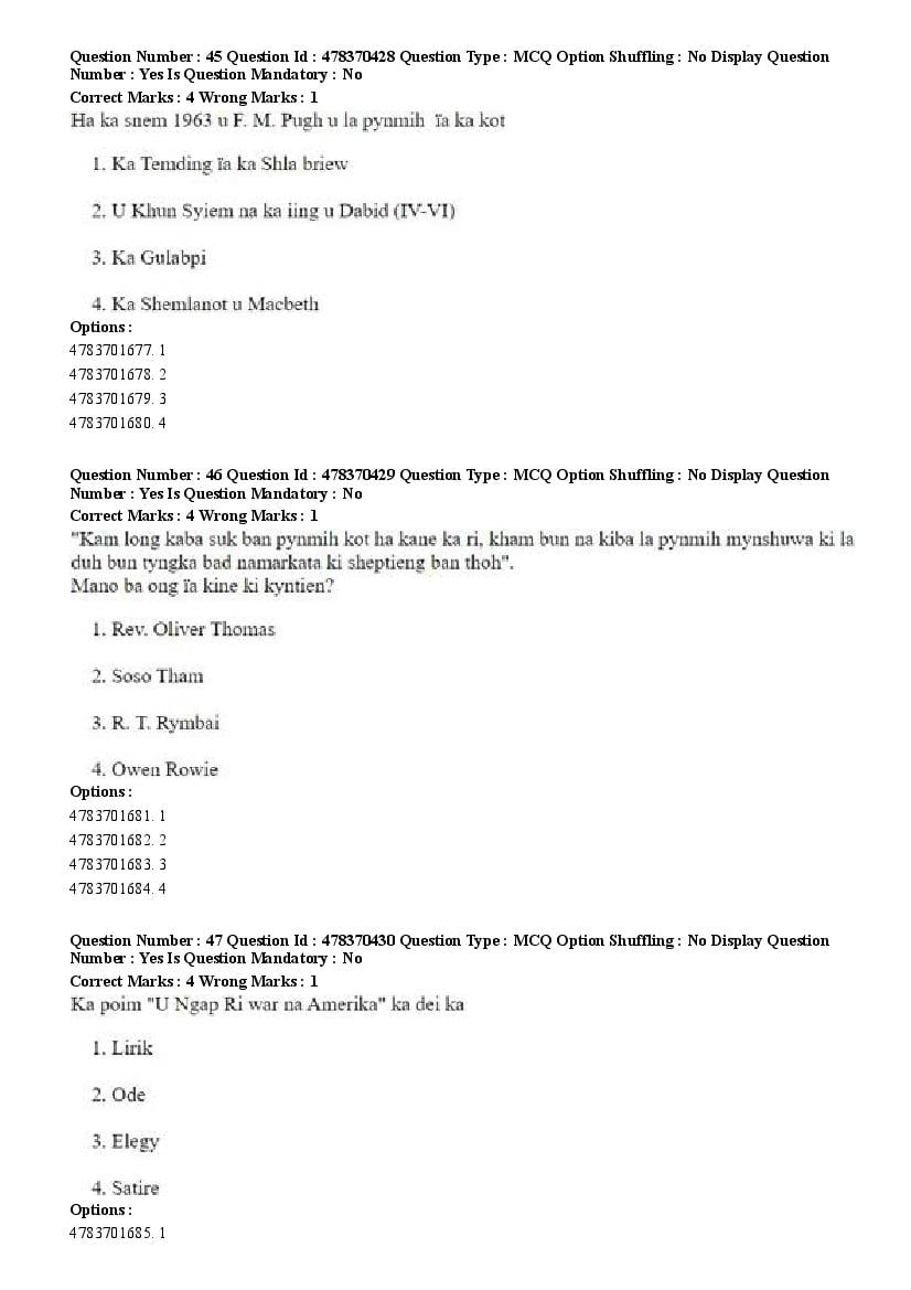 2026 Question papers will be updated soon. The latest available complete cuet pg question paper for Khasi is given below.
