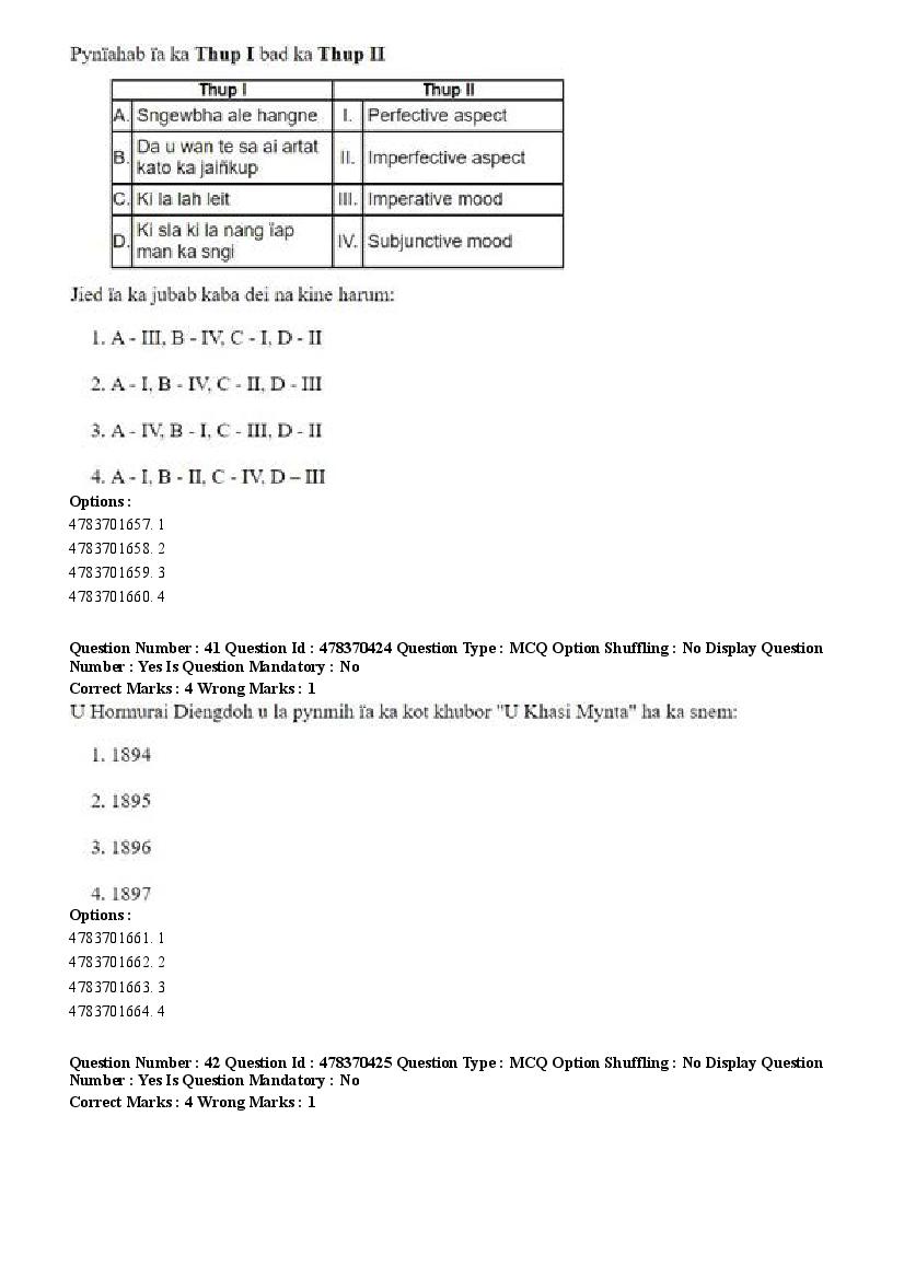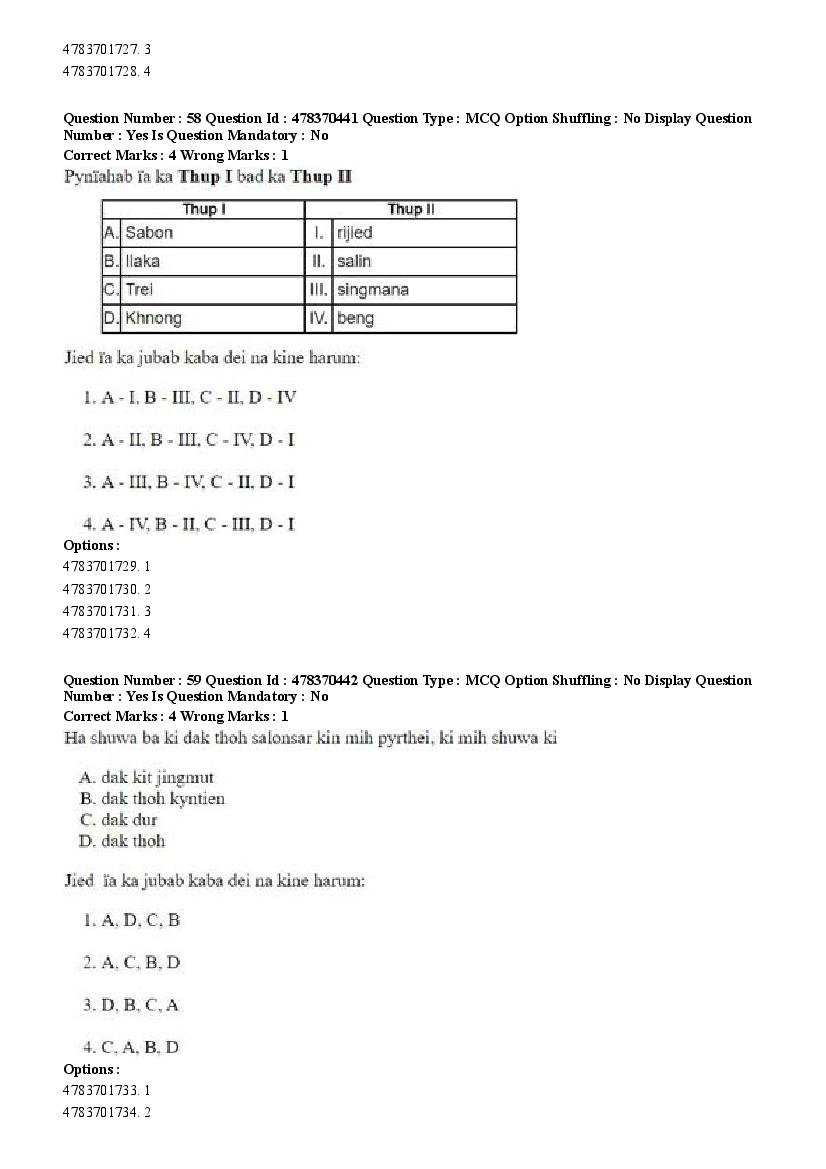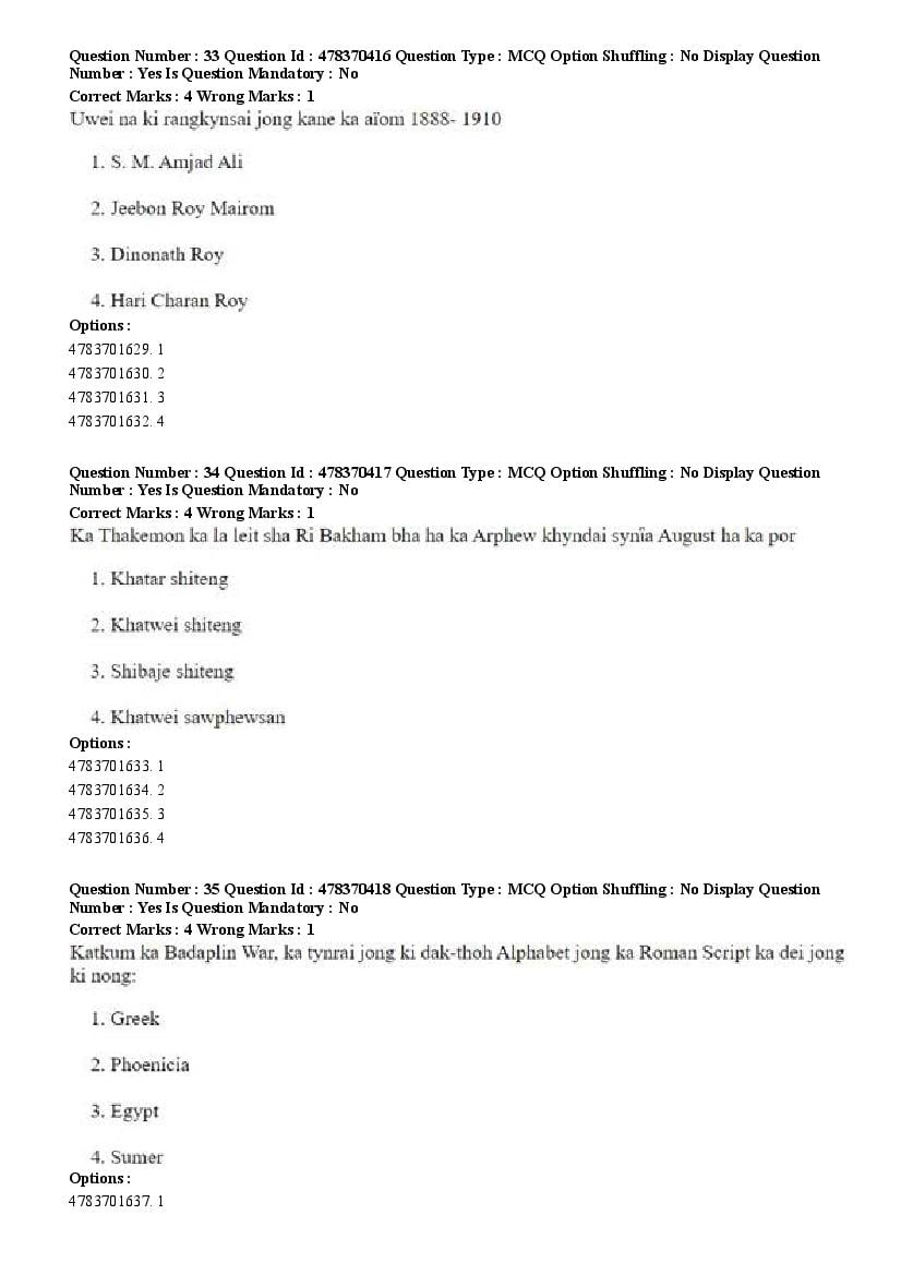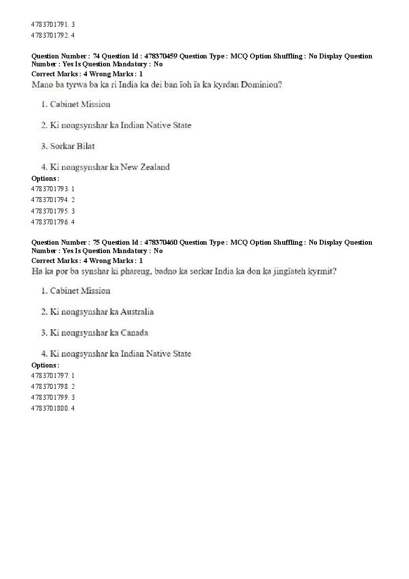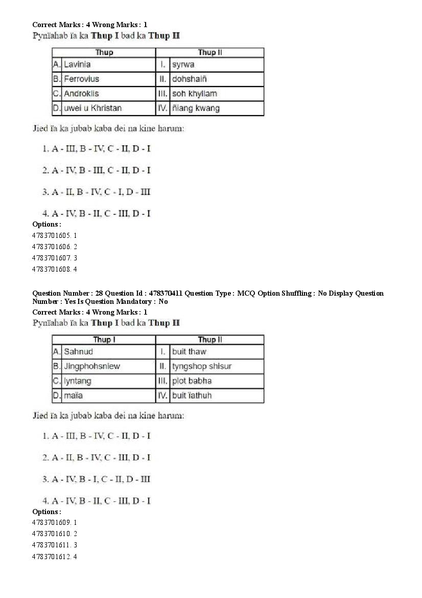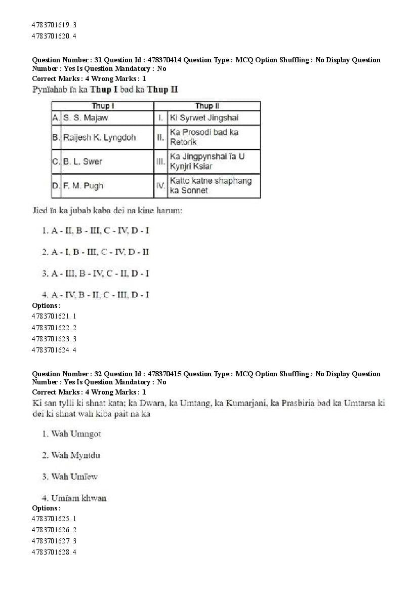 2026 Question papers will be updated soon. The latest available complete cuet pg question paper for Khasi is given below.