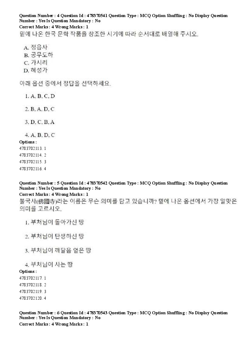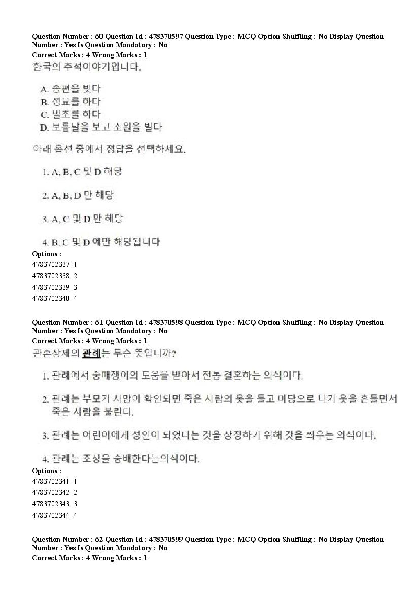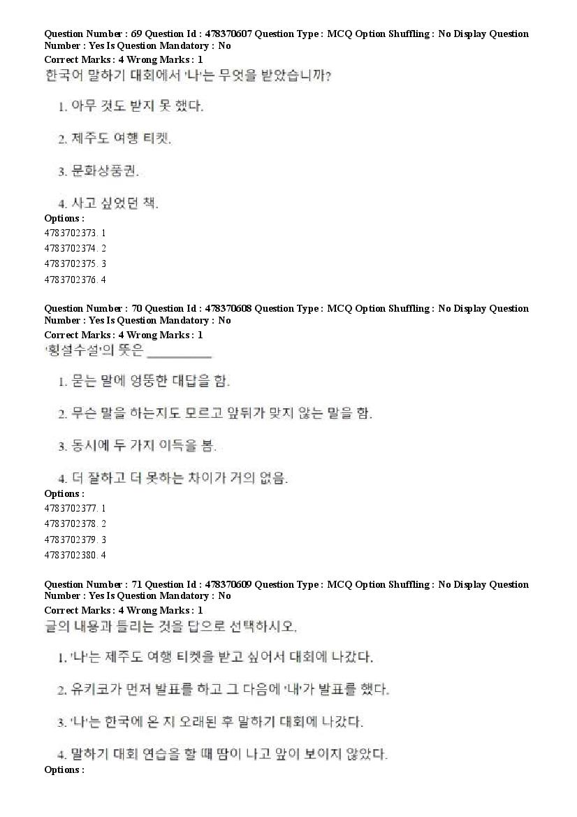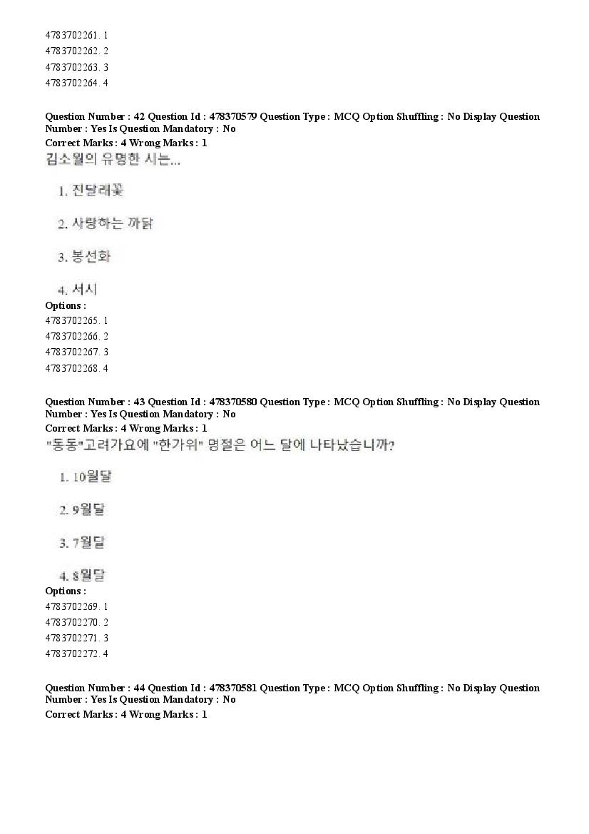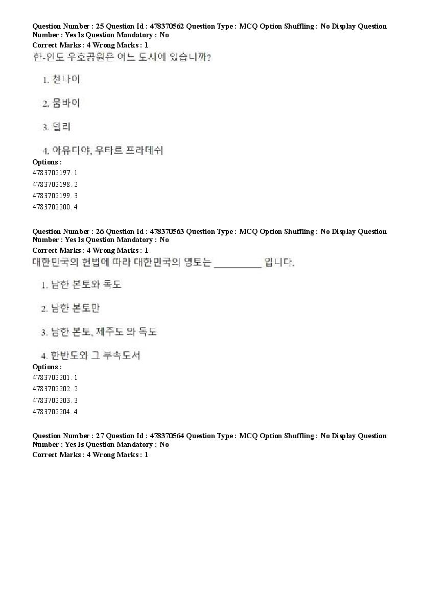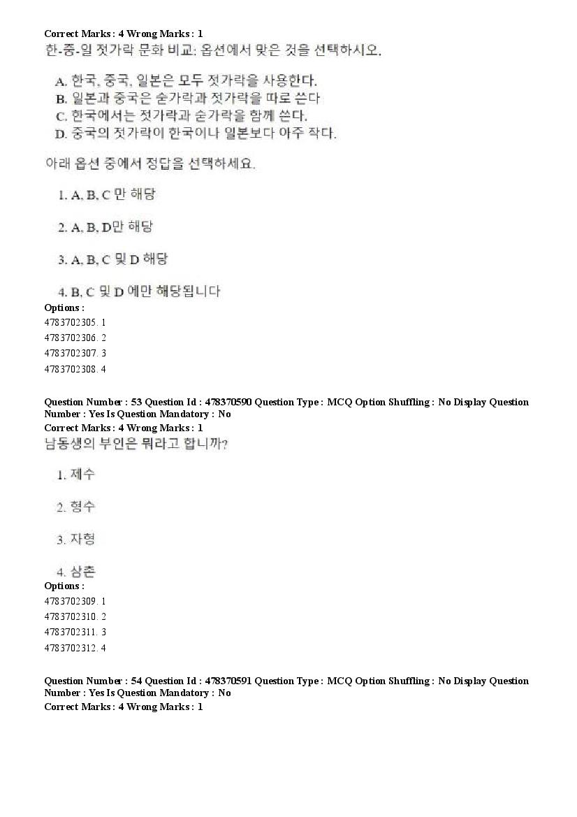 2026 Question papers will be updated soon. The latest available complete cuet pg question paper for Korean is given below.