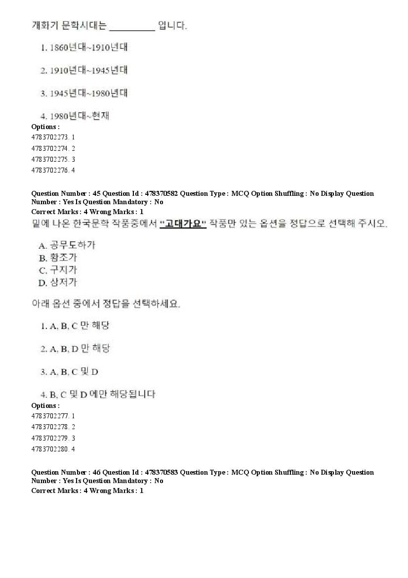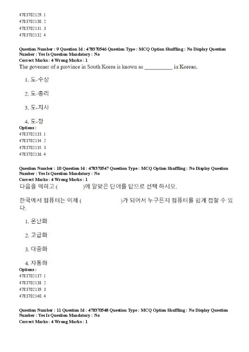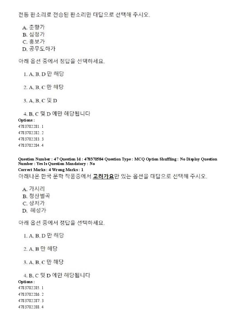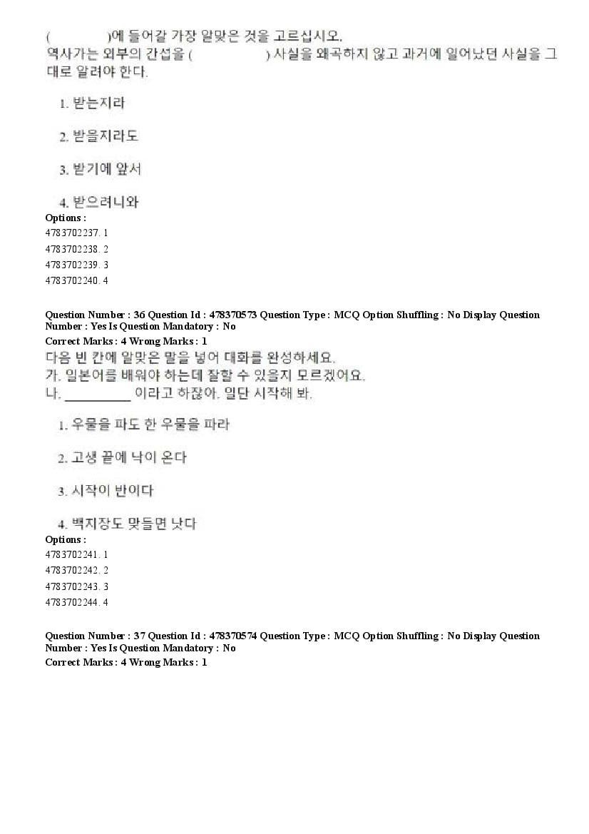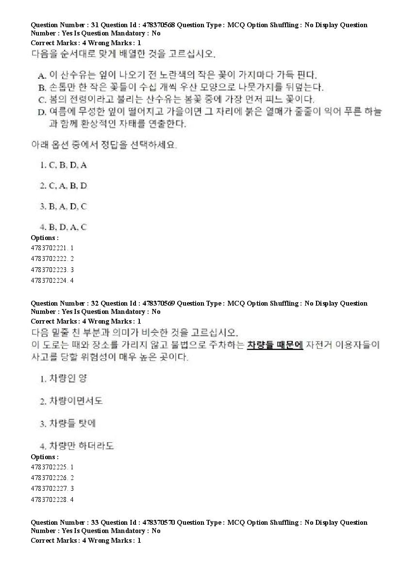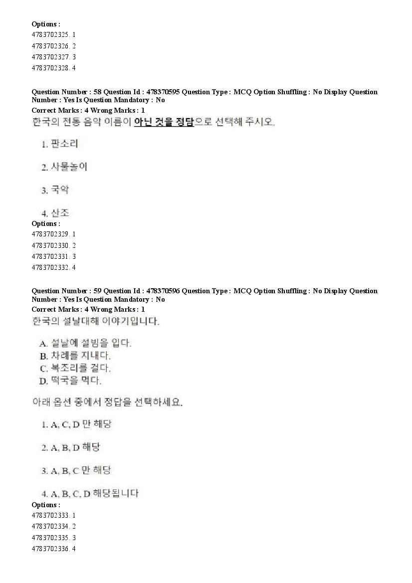2026 Question papers will be updated soon. The latest available complete cuet pg question paper for Korean is given below.