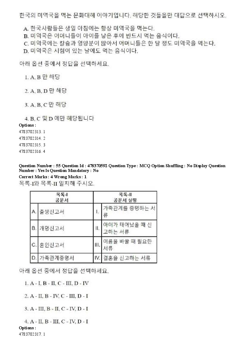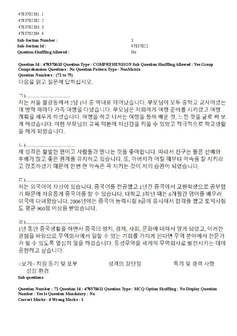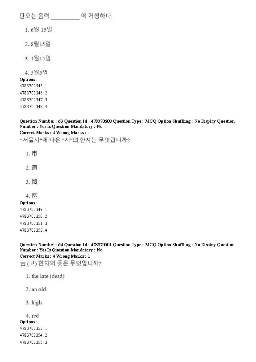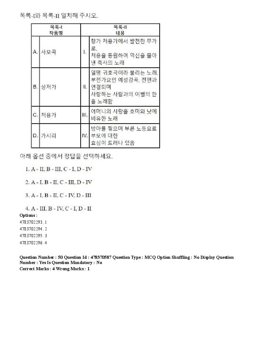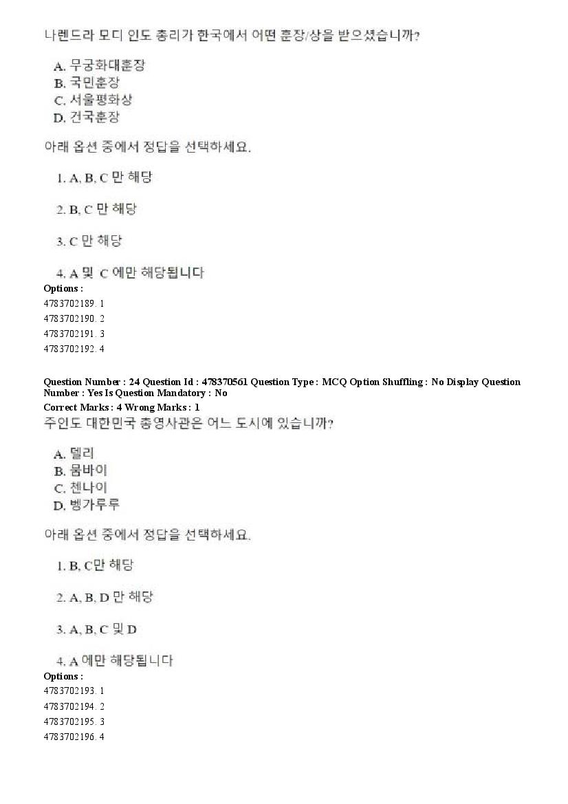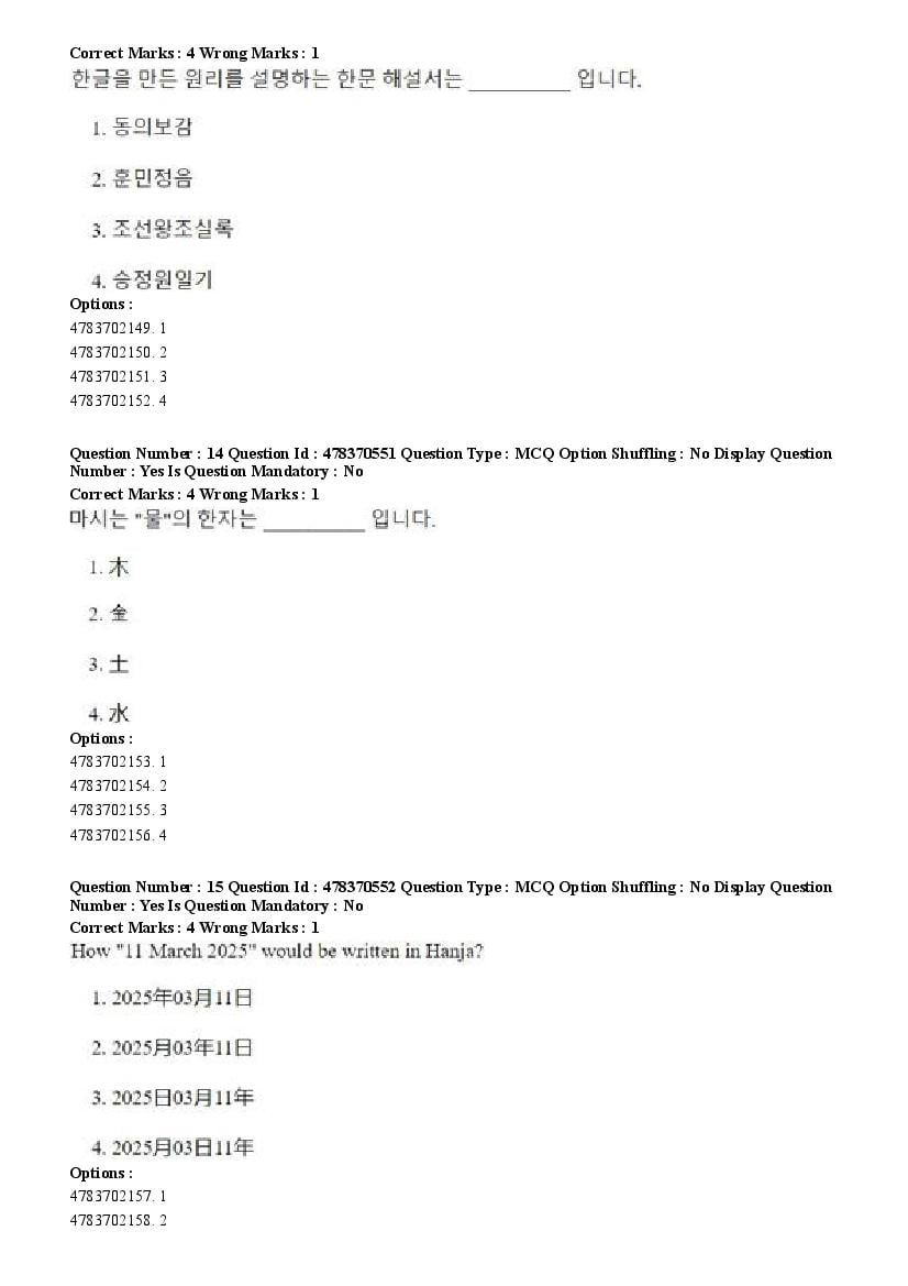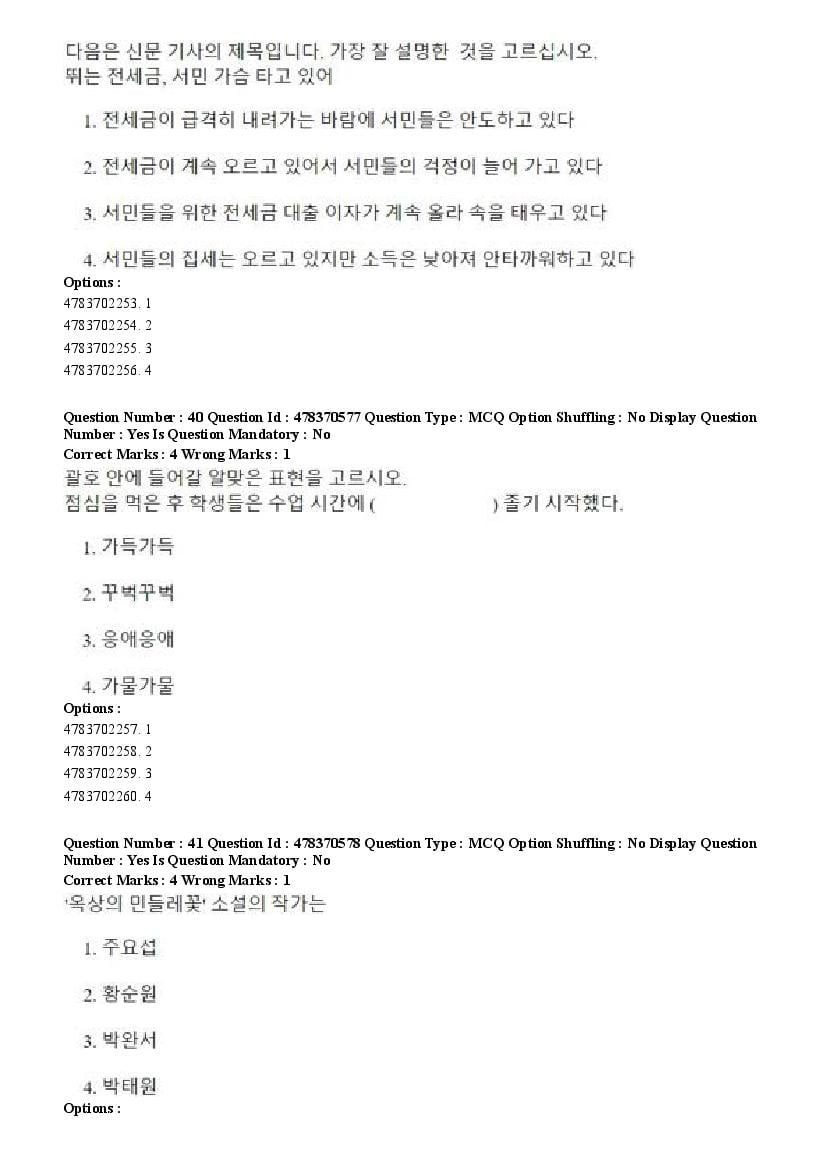 2026 Question papers will be updated soon. The latest available complete cuet pg question paper for Korean is given below.