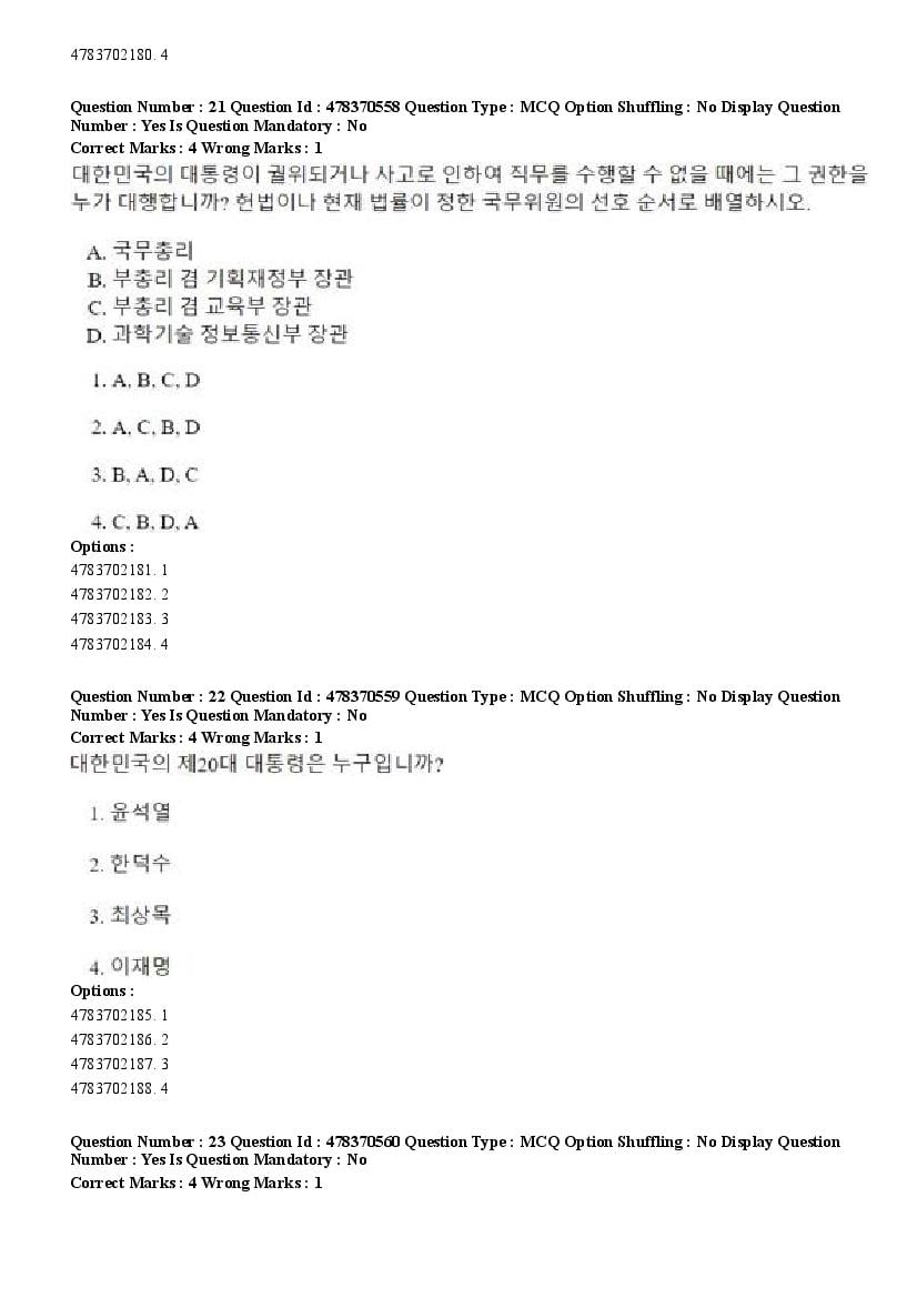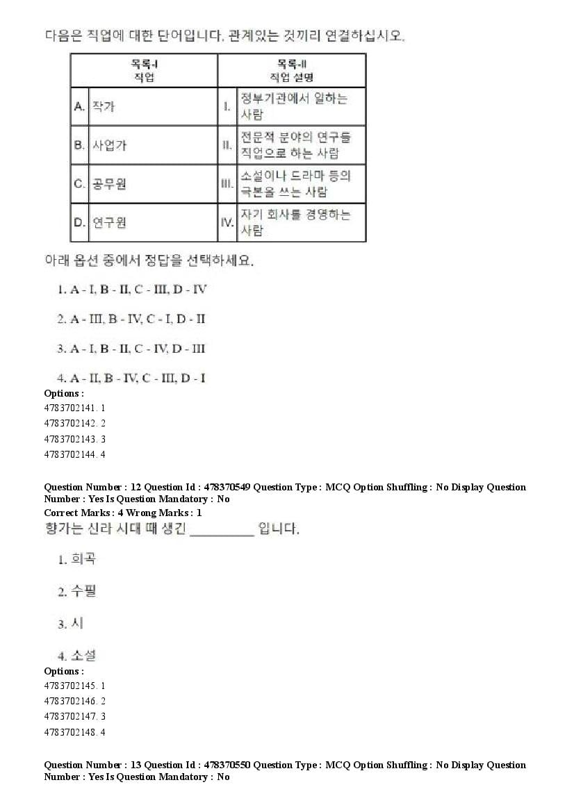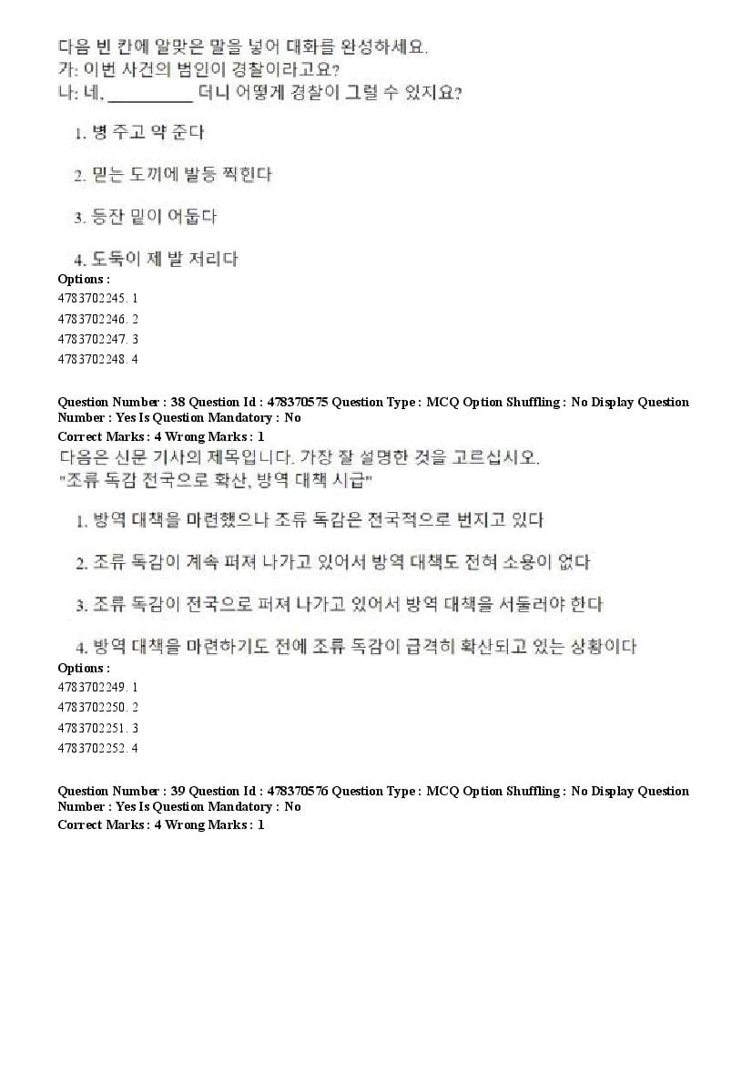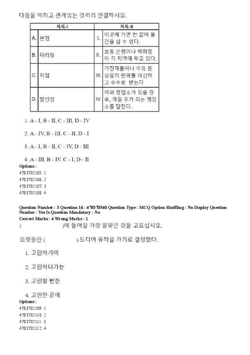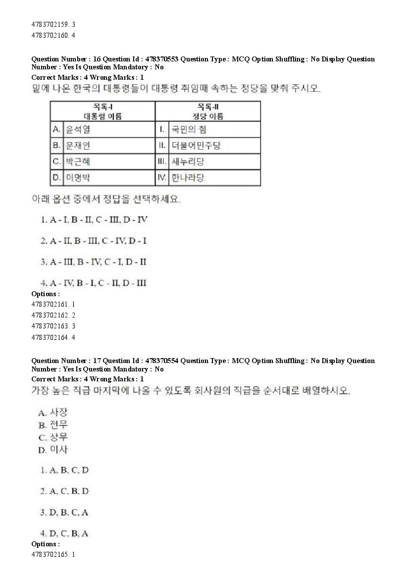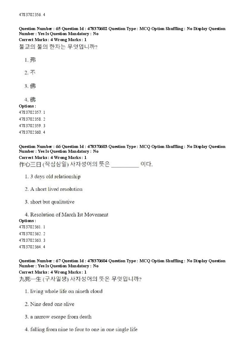 2026 Question papers will be updated soon. The latest available complete cuet pg question paper for Korean is given below.