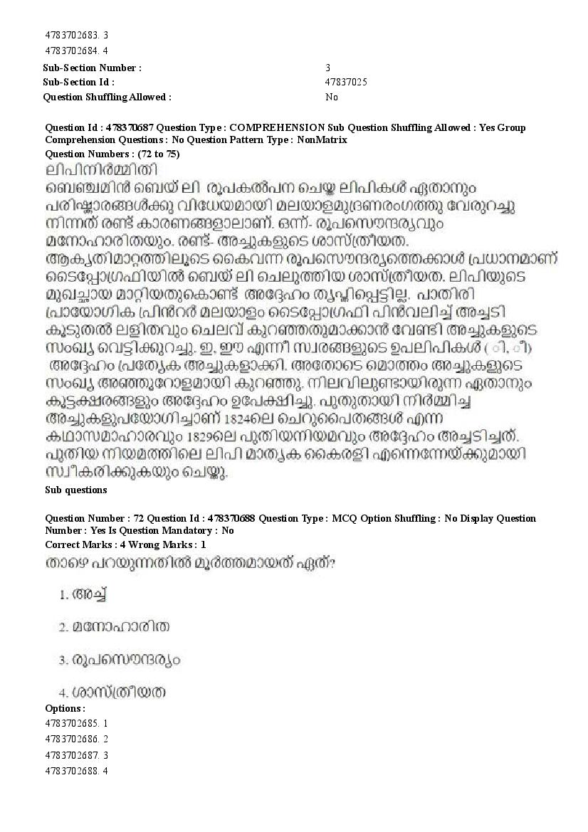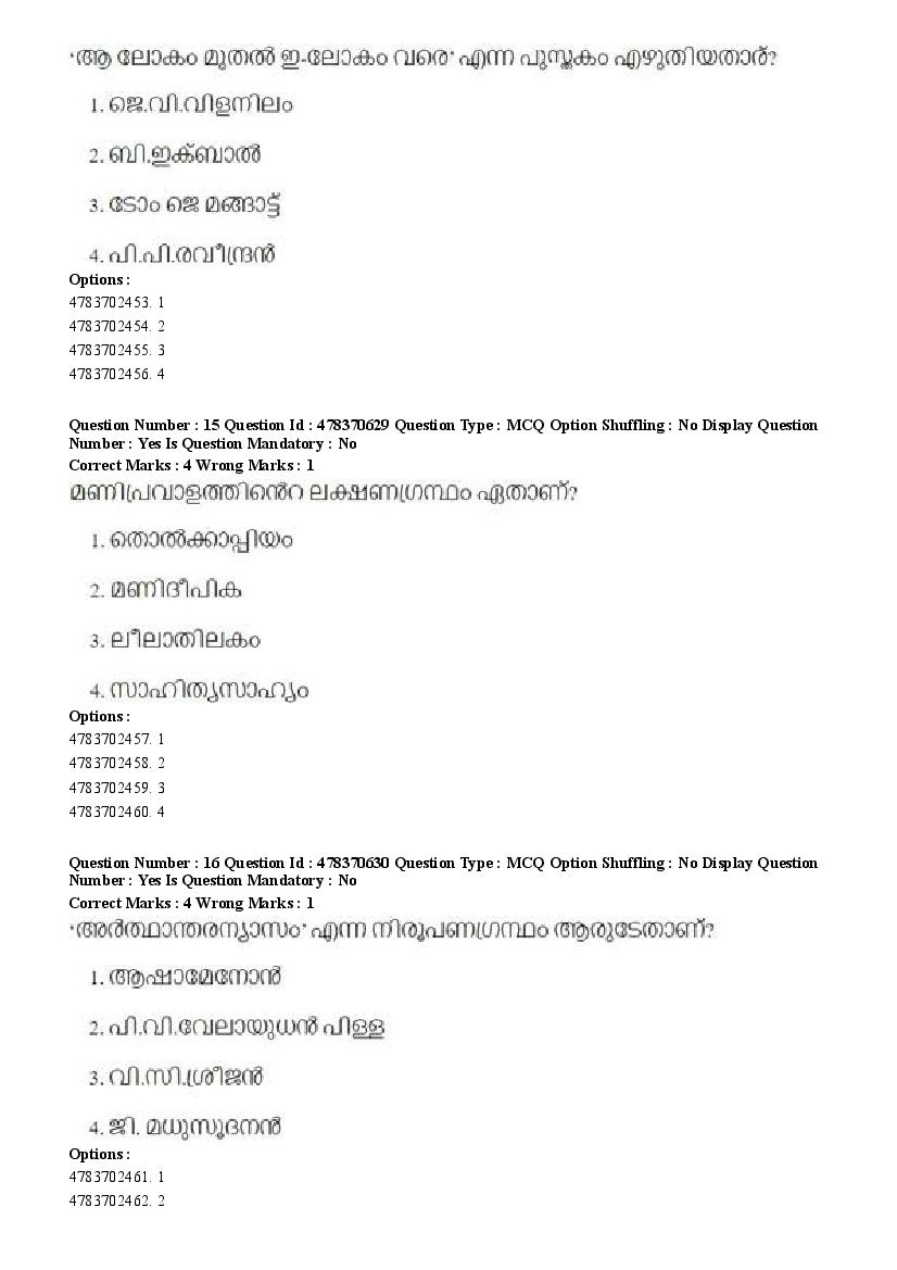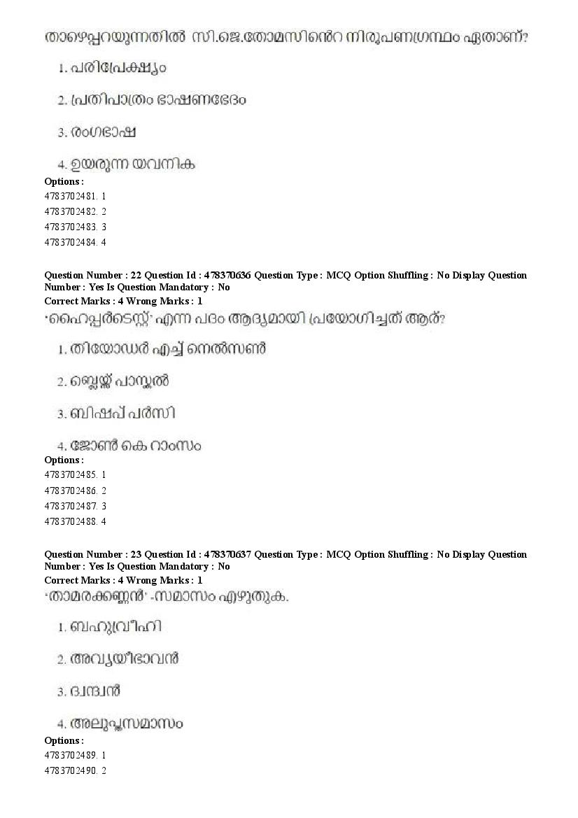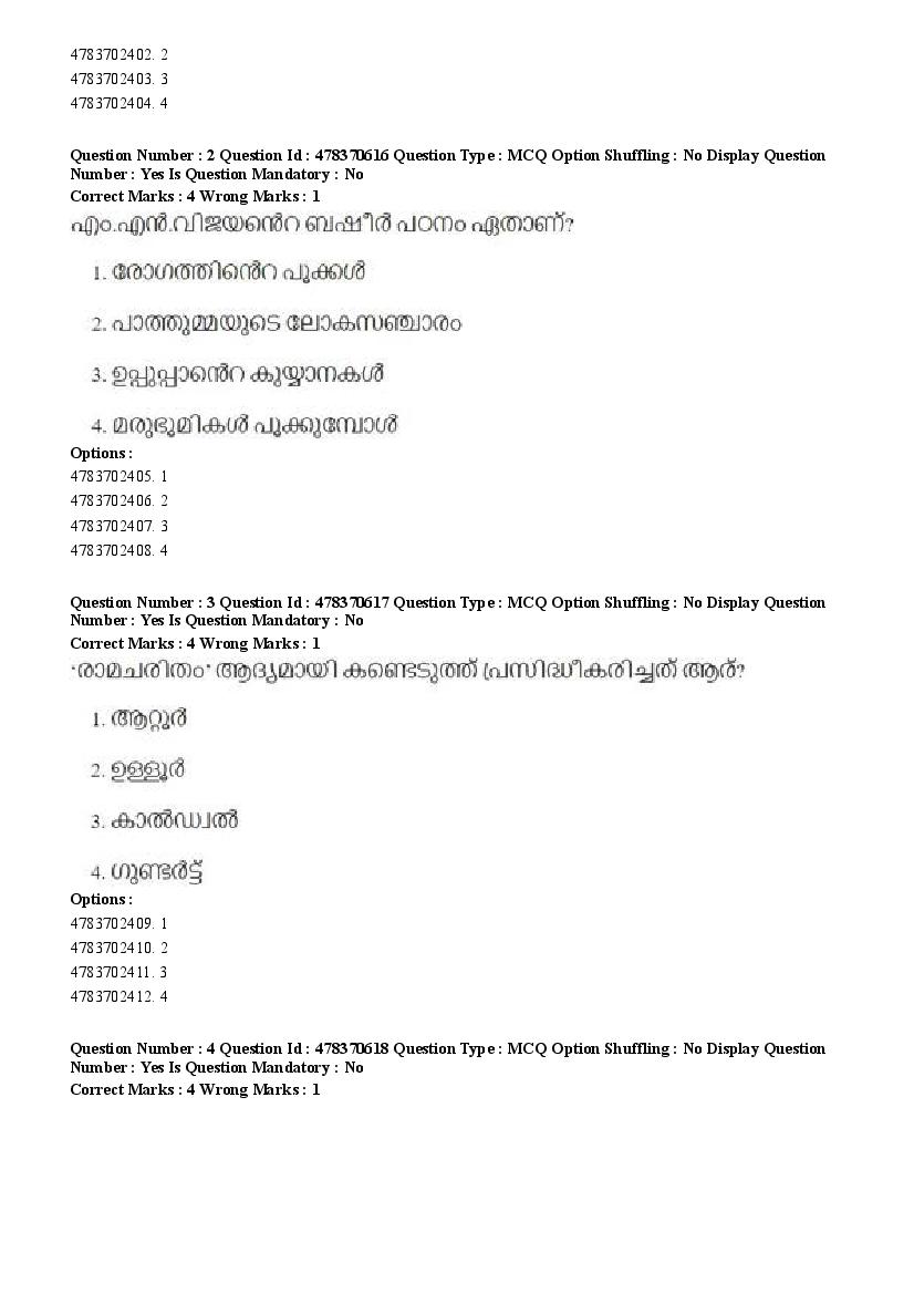2026 Question papers will be updated soon. The latest available complete cuet pg question paper for Malayalam is given below.