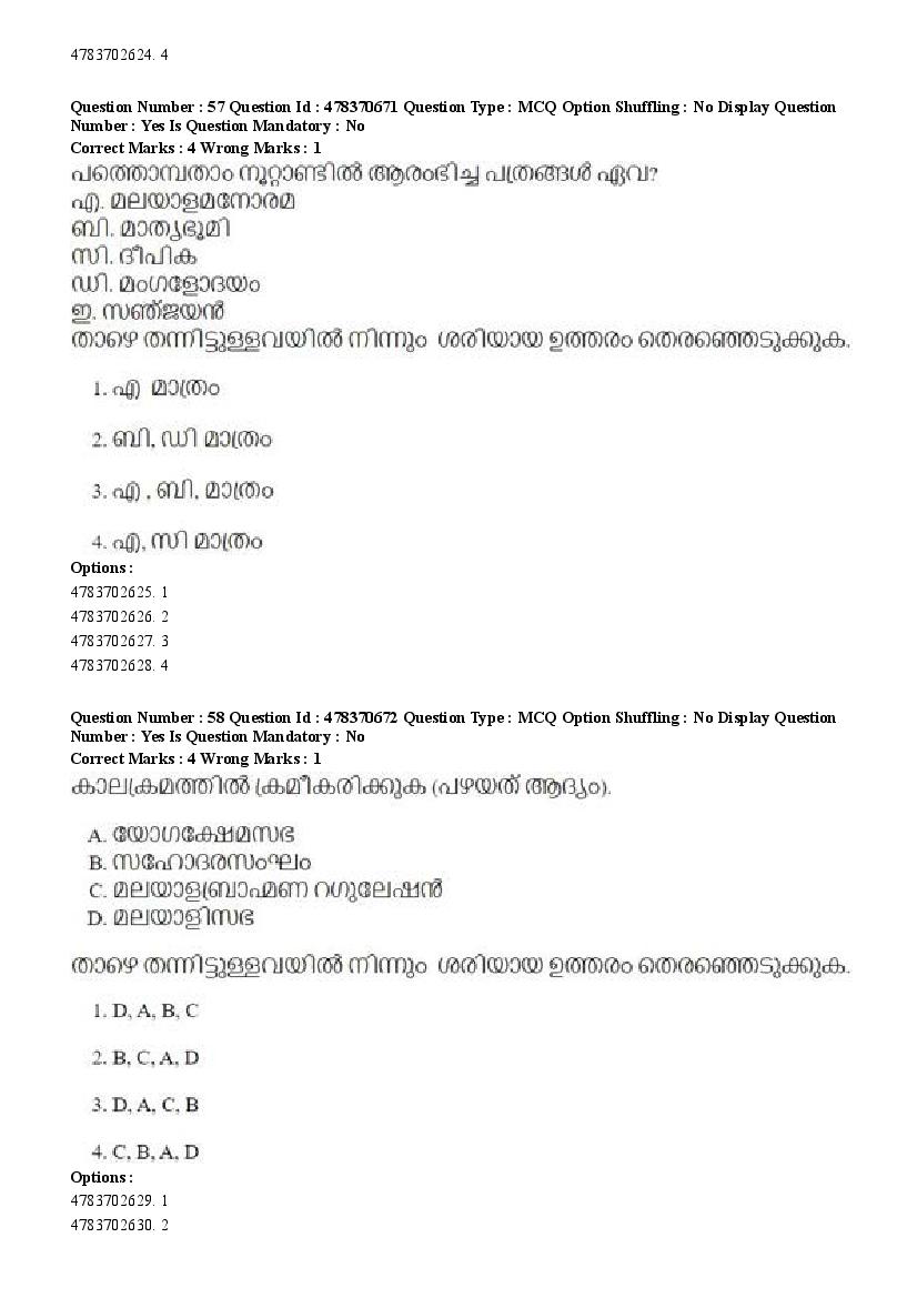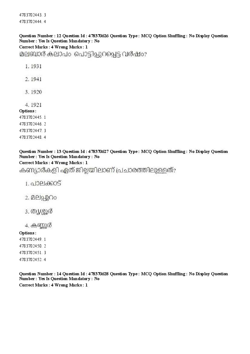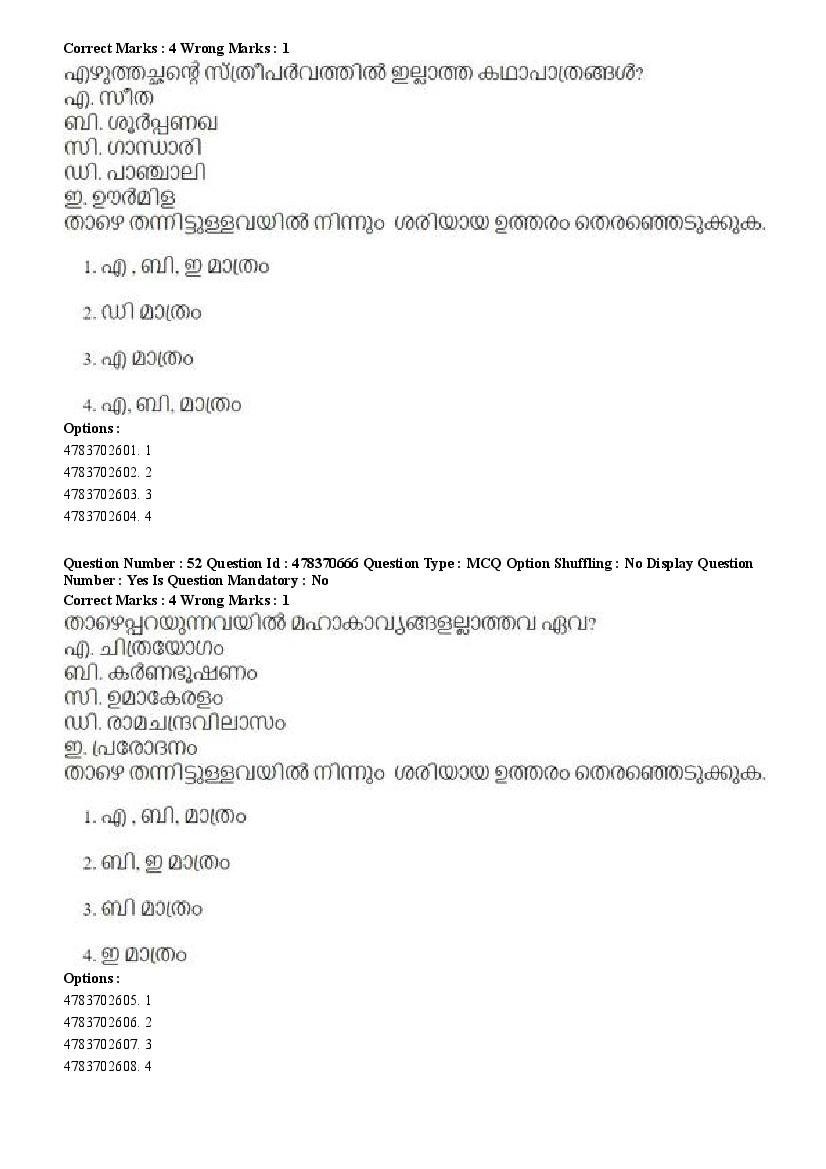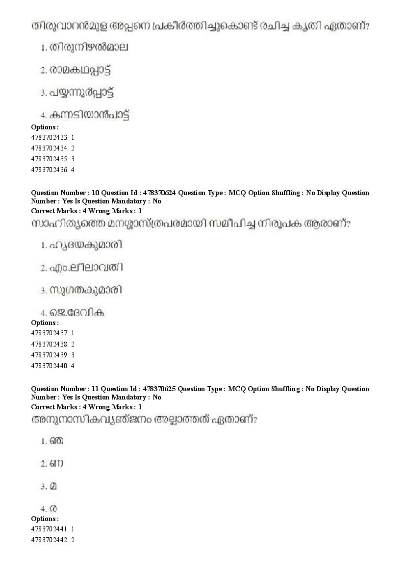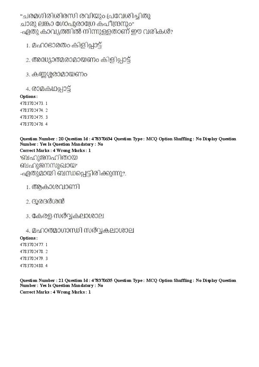 2026 Question papers will be updated soon. The latest available complete cuet pg question paper for Malayalam is given below.