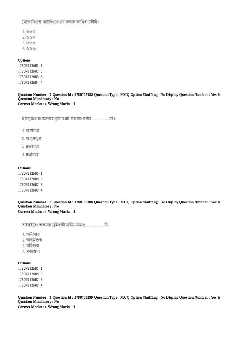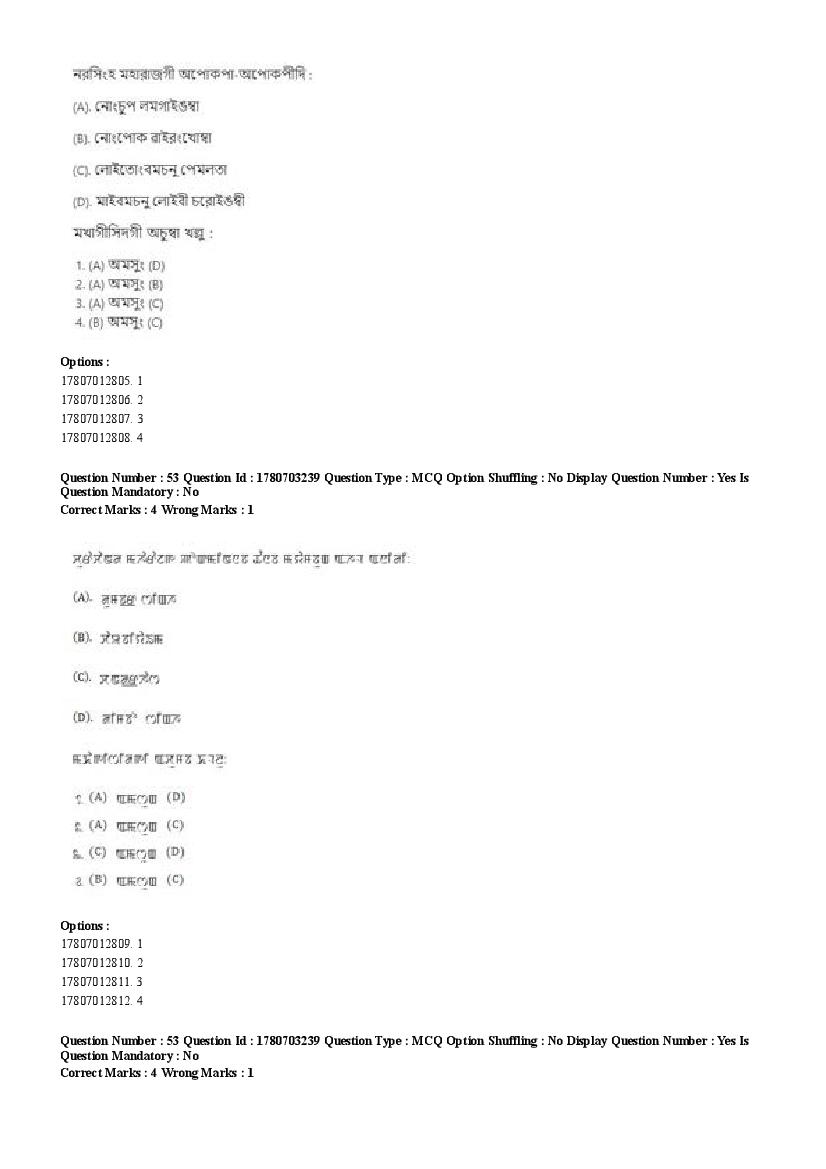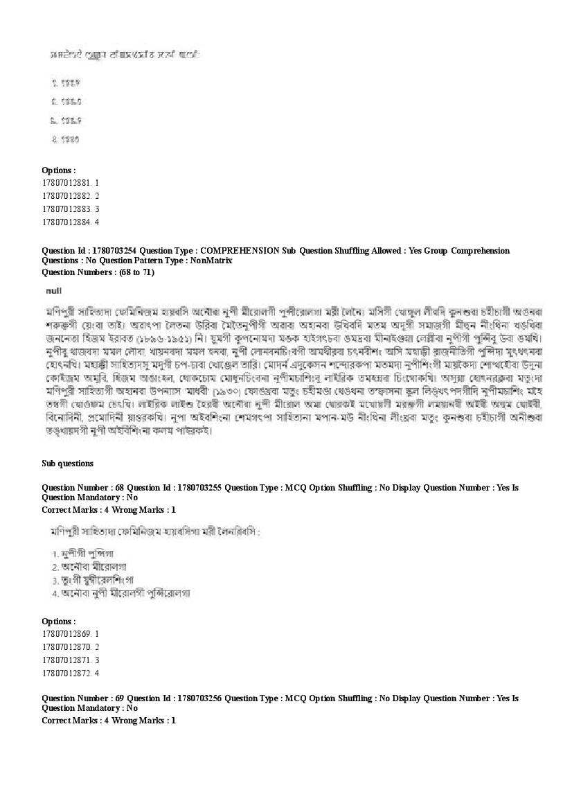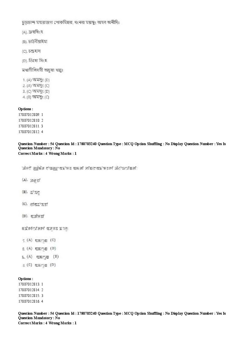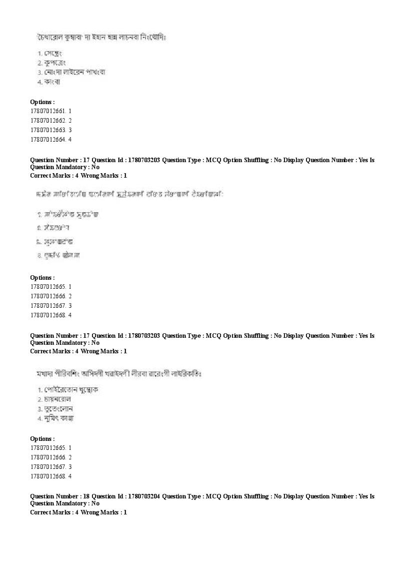 2026 Question papers will be updated soon. The latest available complete cuet pg question paper for Manipuri is given below.