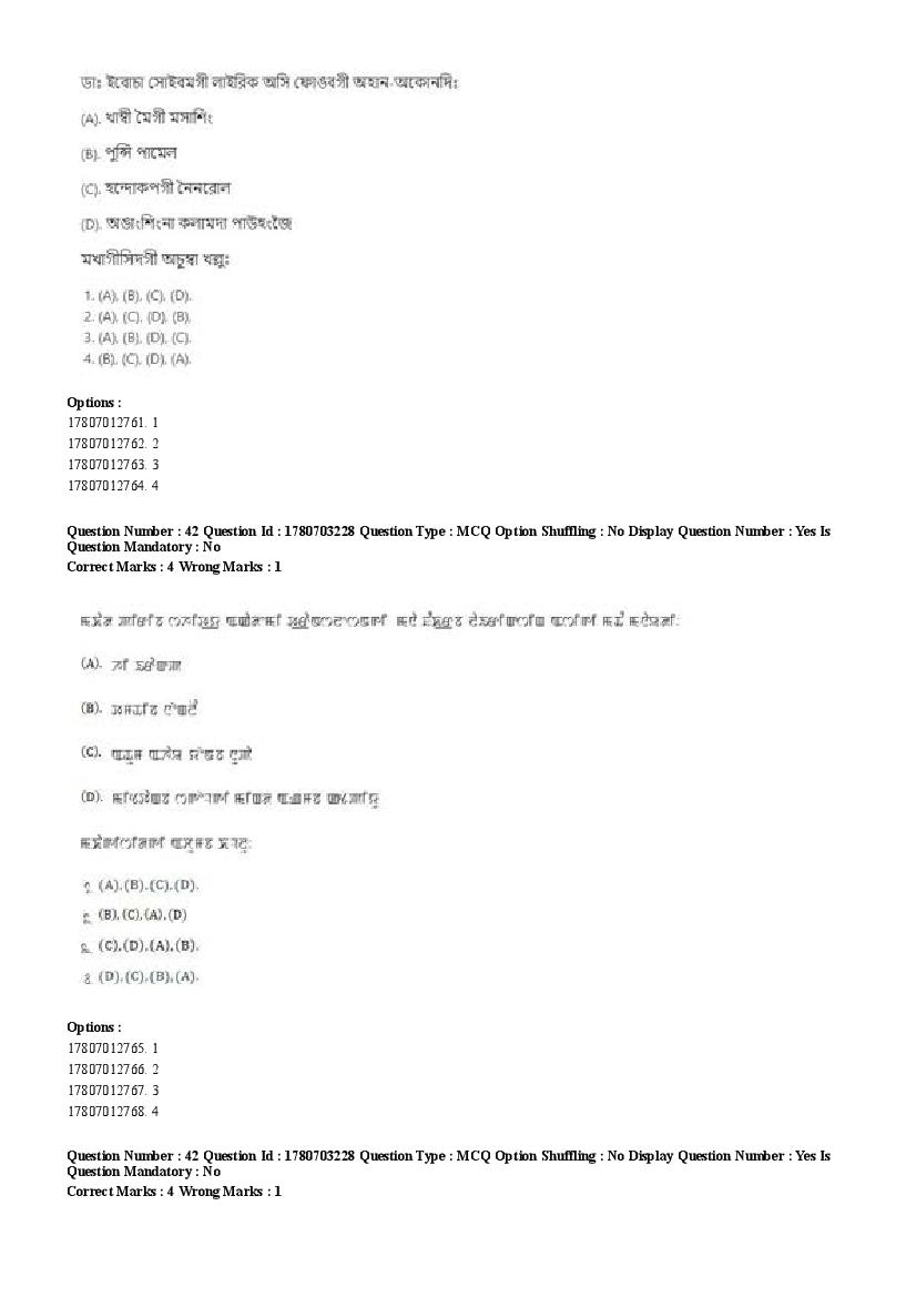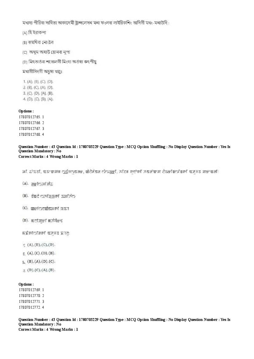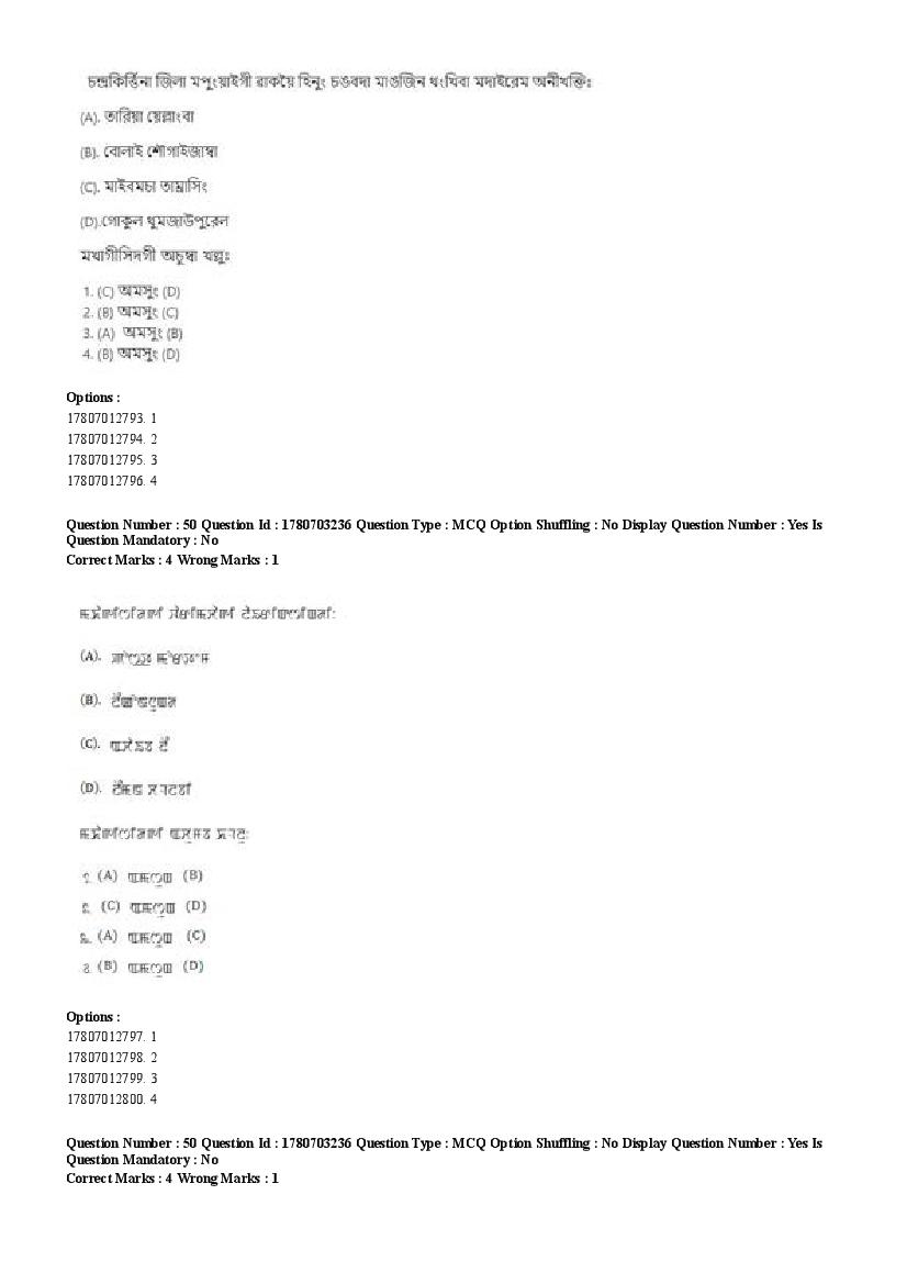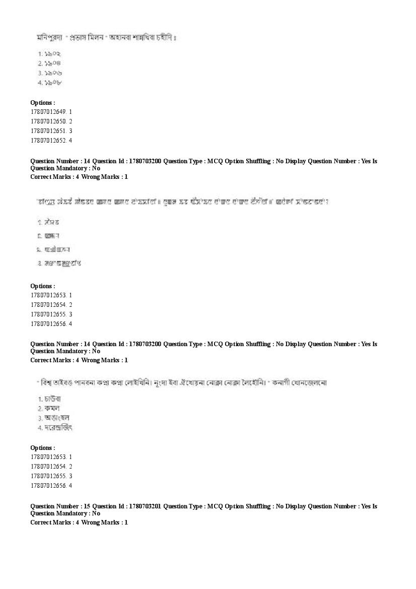 2026 Question papers will be updated soon. The latest available complete cuet pg question paper for Manipuri is given below.
